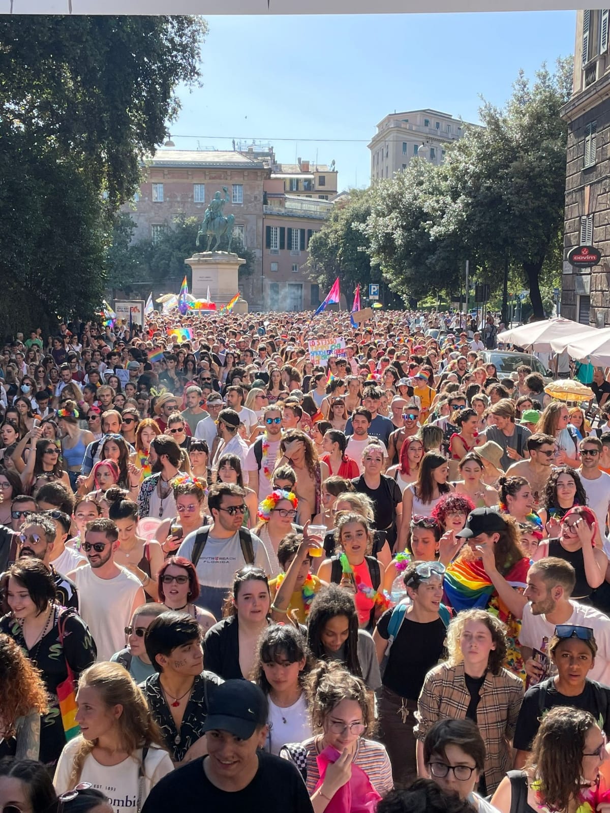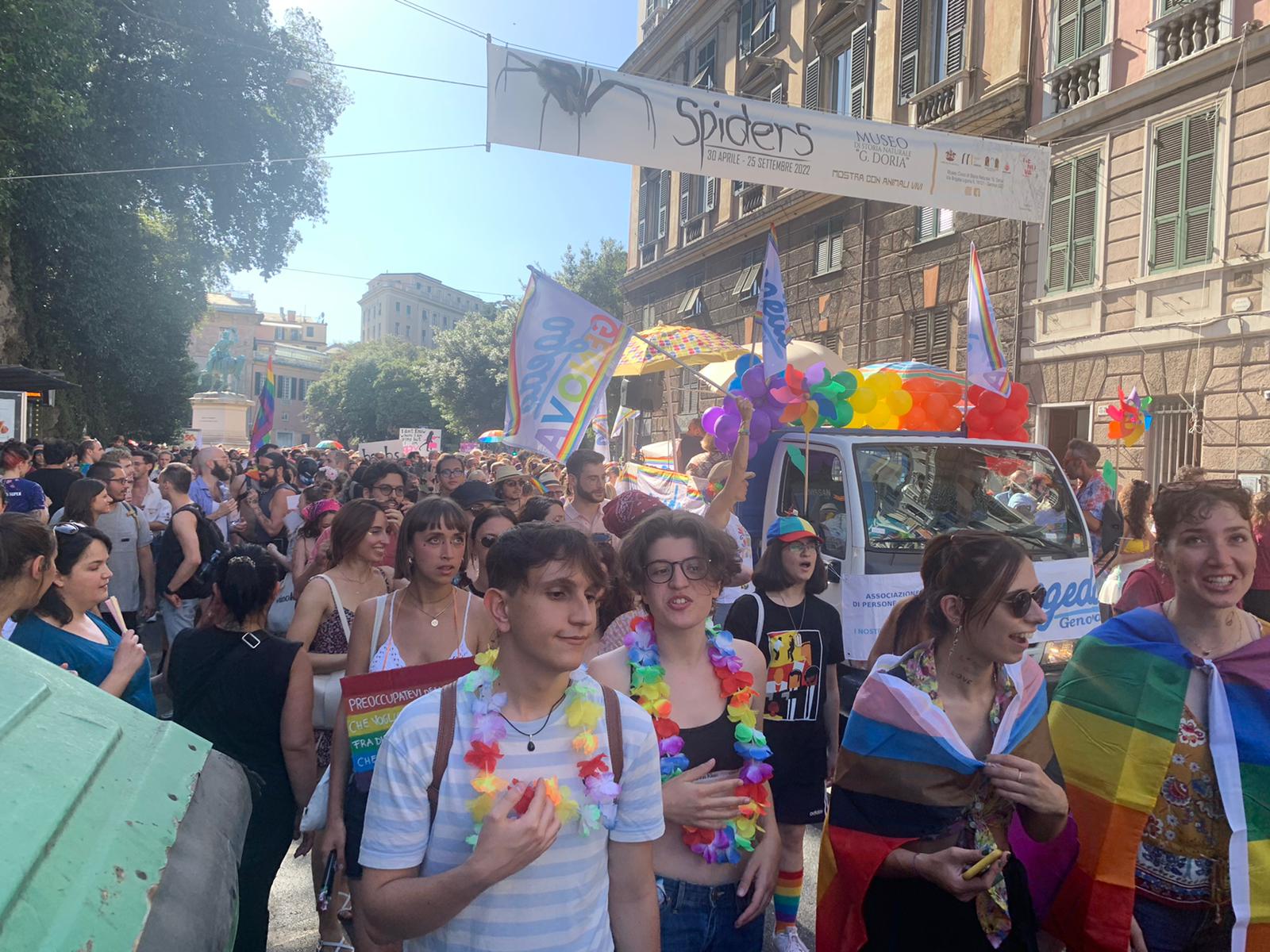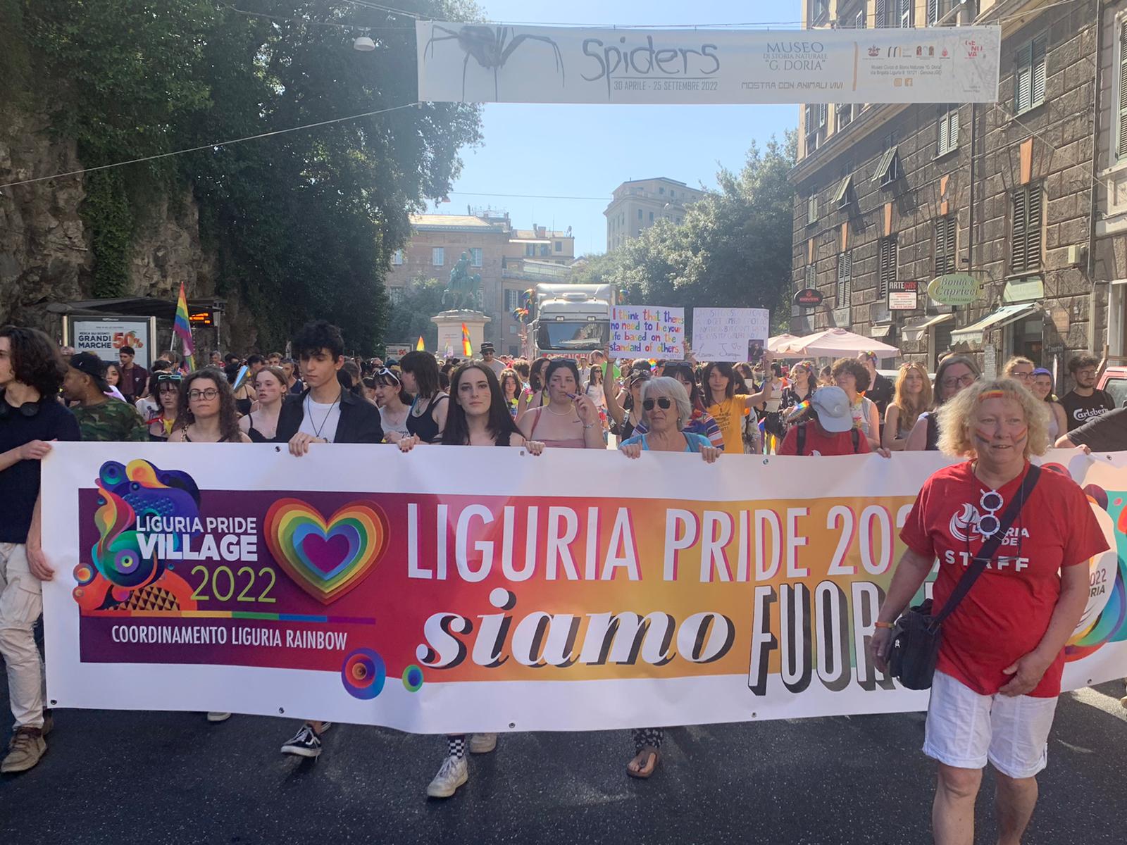 Un corteo che vuole ribadire la necessità di diritti, inclusione, accoglienza e "l'autodeterminazione sui corpi, sulla salute, sulla sessualità e sull'amore". Musica, carri, e una fiumana di manifestanti, la parata nonostante la giornata caldissima e balneare per una festa in cui sono confluite persone da ogni parte della Liguria e non solo. Tantissimi i giovani e giovanissimi che in piena allegria al ritmo di musica hanno cantato e ballato. Con loro anche tante famiglie con figli accanto a comporre il lungo serpentone lungo le vie del capoluogo.