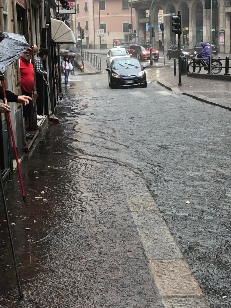 Allagamenti anche nella zona della Foce e vicino al Salone Nautico fra corso Marconi e piazza Rossetti e sulla Sopraelevata Aldo Moro.