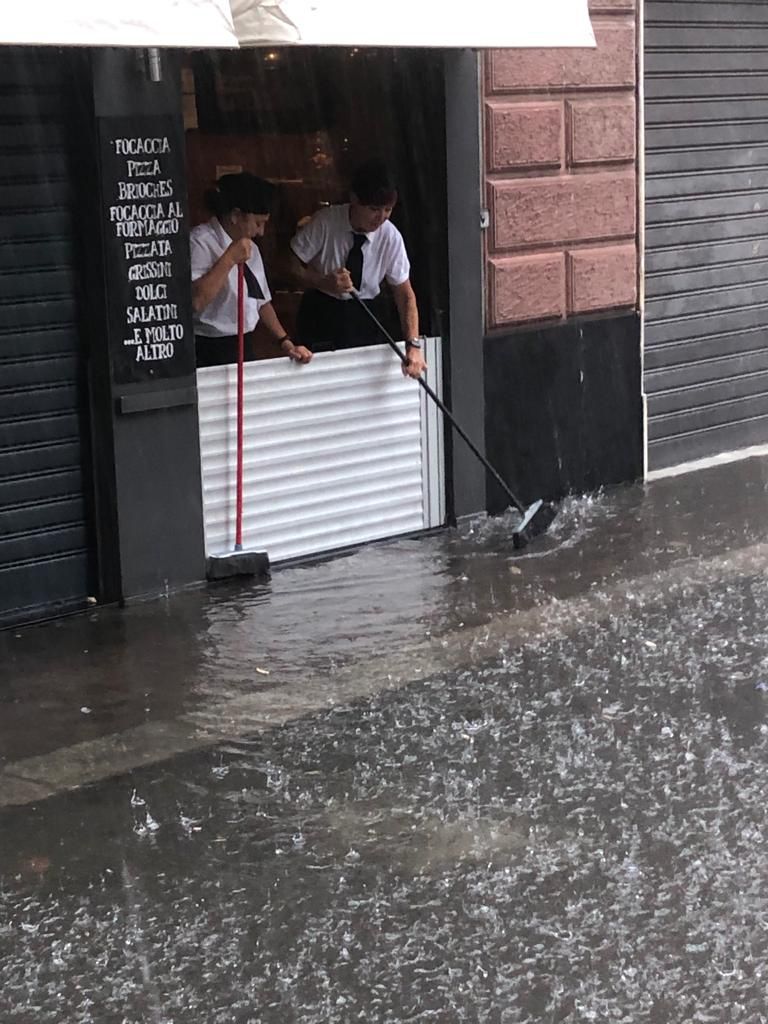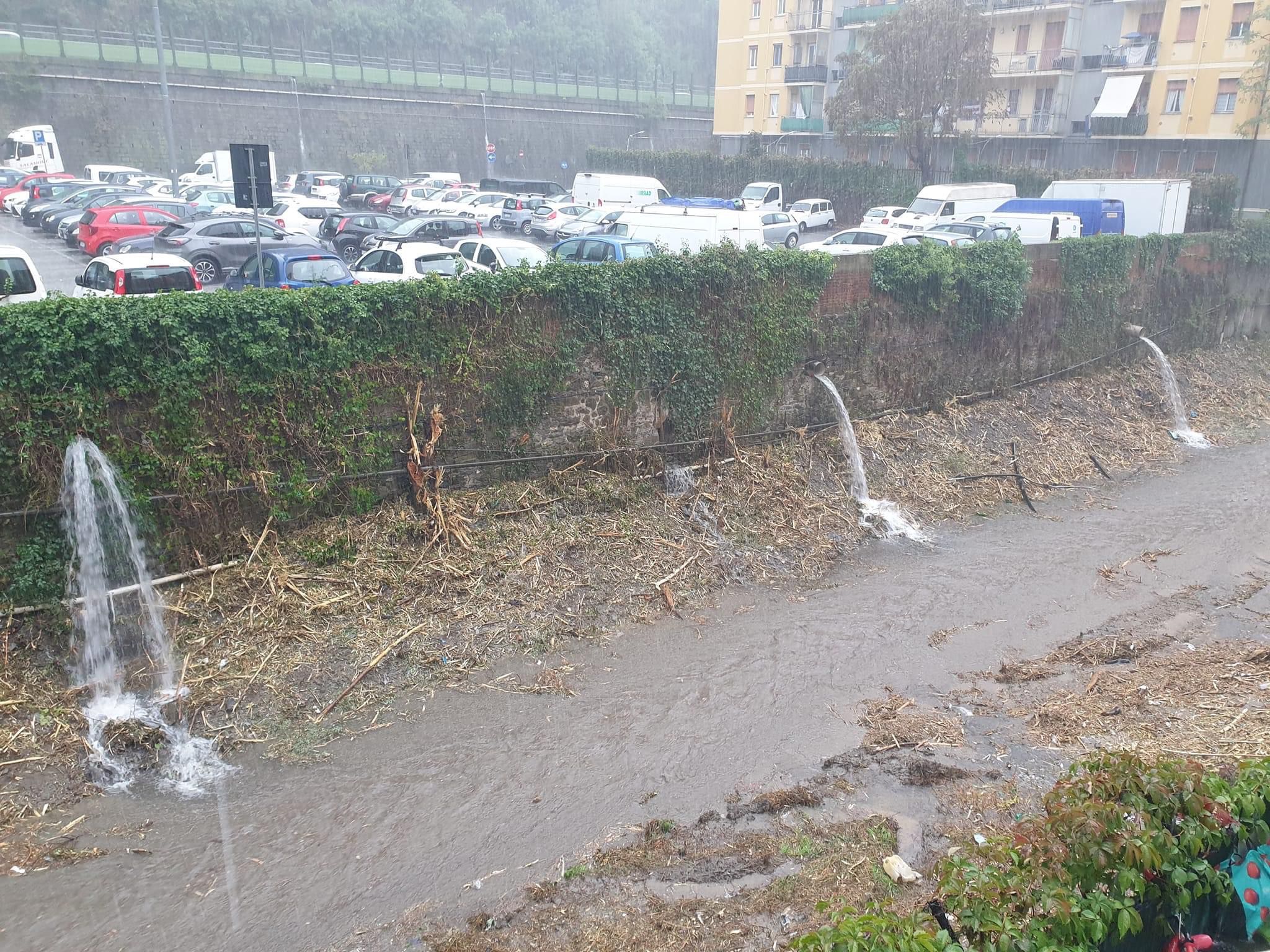 Molte le chiamate arrivate al centralino dei vigili del fuoco, una delle quali da Bolzaneto, nei pressi della caserma del reparto mobile, da un uomo che ha raccontato di non riuscire a uscire dal suo negozio a causa dell'acqua. Sul posto una squadra dei pompieri del distaccamento di Bolzaneto.