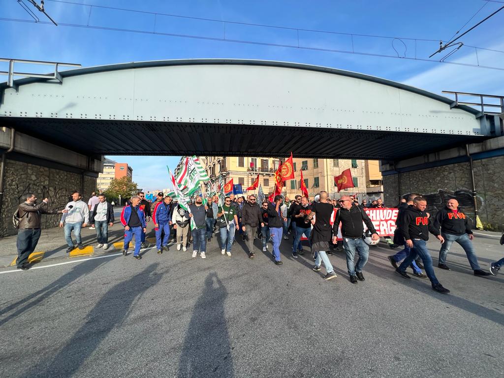 'Non vi faremo chiudere Ansaldo Energia' è il testo dello striscione che guida la testa del corteo. Insieme ad Ansaldo Energia, già in zona Campi e prima del ponte di Cornigliano, si sono uniti anche lavoratori di Acciaierie d'Italia (ex Ilva) e anche i ragazzi e le ragazze della Rete Studenti Medi.