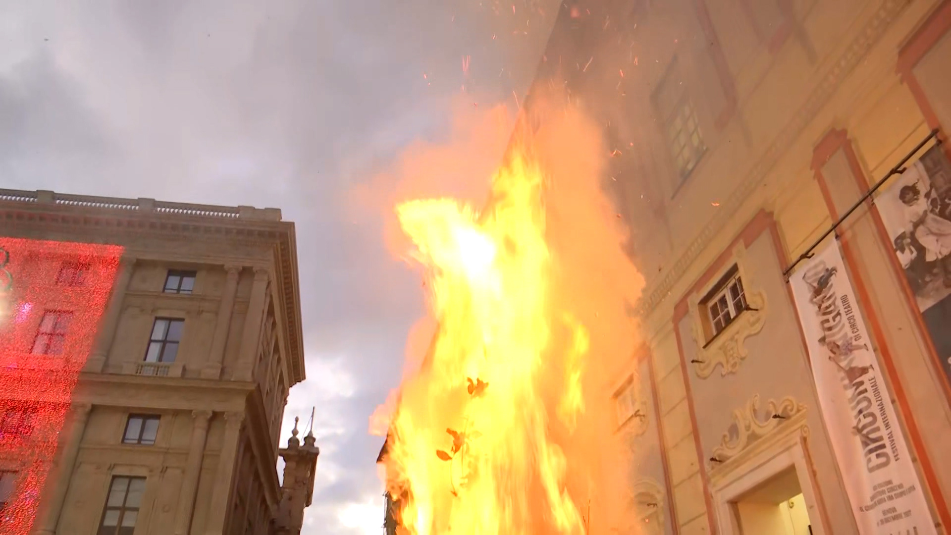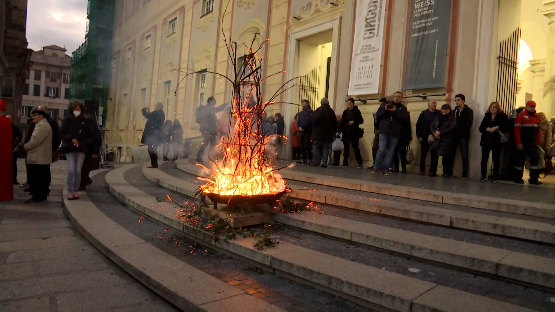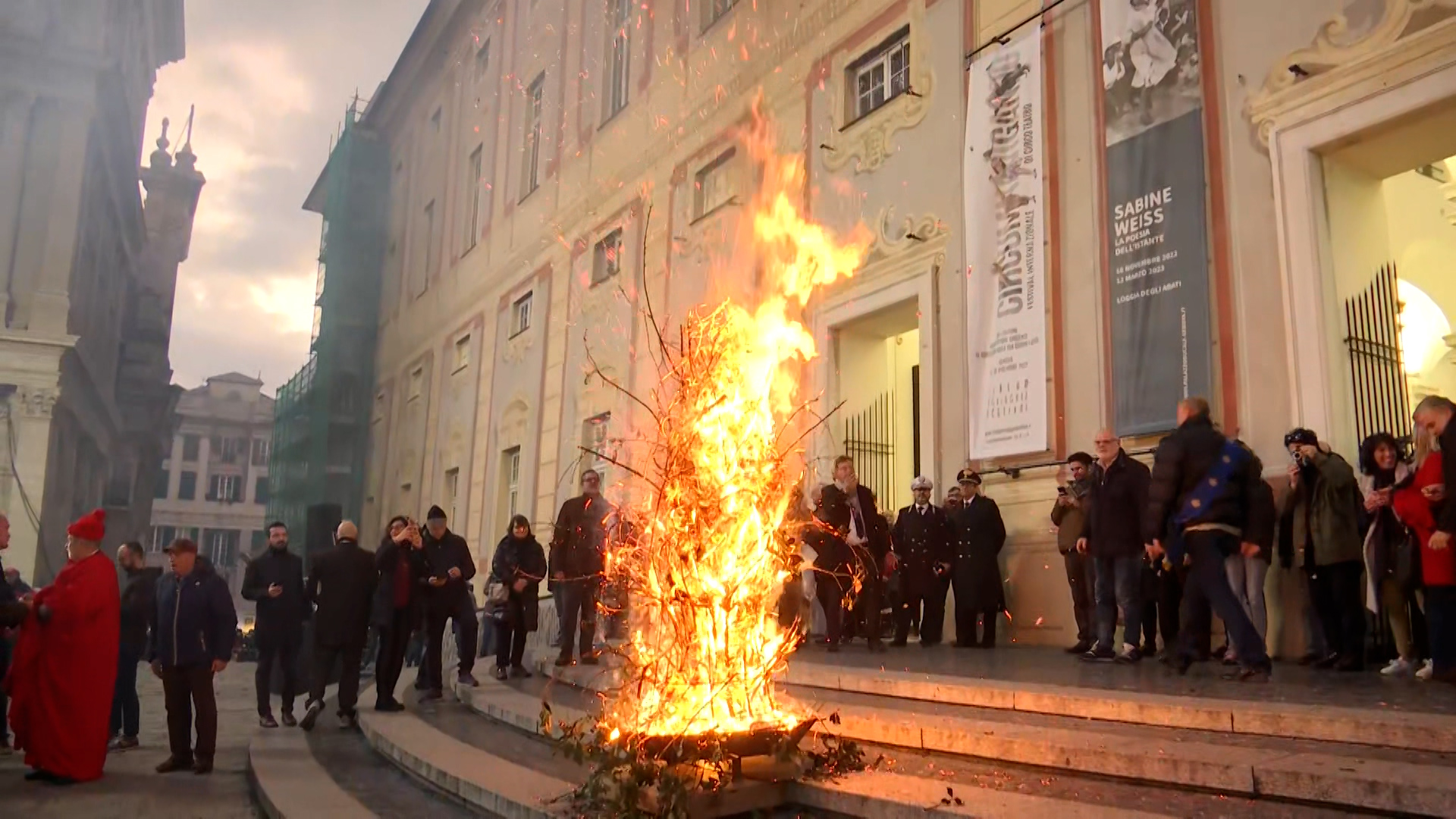 GENOVA - Fiamma dritta e buoni auspici per l'anno che verrà. Torna il Confeugo, l'antica tradizione genovese che con la sua fiamma segna l'andamento del 2023. Proprio come nel medioevo il primo cittadino di Genova, Marco Bucci vestito con gli abiti da Doge, ha appiccato il fuoco al grande fascio di rametti di alloro intrattenendo migliaia di genovesi. Fiamma ben dritta nonostante il vento con il fuoco che ha bruciato il fascio di legna. Un segno di buon auspicio secondo la tradizione che renderà l'anno in arrivo prospero e fortunato per la città.