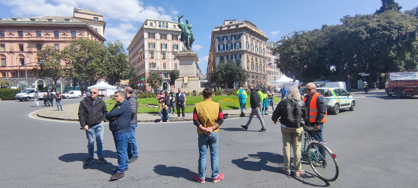 Alle 9,30 i cortei transitano per corso Europa, via Cantore e sulla sopraelevata, chiusa in direzione Levante, con centinaia di mezzi sulle principali direttrici genovesi.