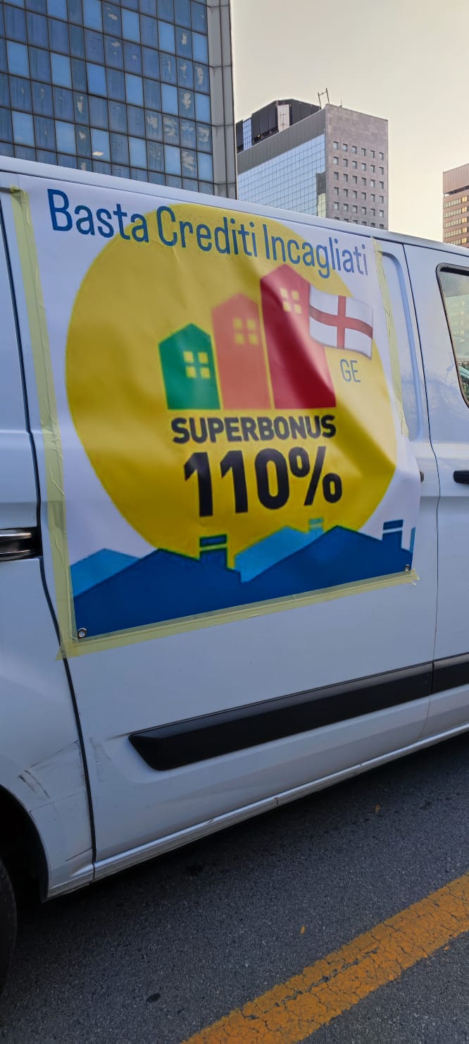Cinque le richieste dei manifestanti che attendono novità da Roma dove tra oggi e domani è atteso il voto di fiducia sul decreto Superbonus: "riapertura dell'acquisizione tramite le società partecipate come Cassa depositi e Poste". "Limitare lo sconto massimo applicabile rispetto al valore nominale dei crediti cedibili". "Lasciare alle Banche la possibilità di compensare i crediti degli importi pagabili con l'F24 della clientela in modo sia per loro possibile riprendere le acquisizioni da aziende e General Contractor". "Differimento dei tributi in F24 in scadenza di 120 giorni" e "Proroga dei cantieri avviati al 2024, ritenendo avviati solo i cantieri in cui siano davvero in corso i lavori in modo documentabili".