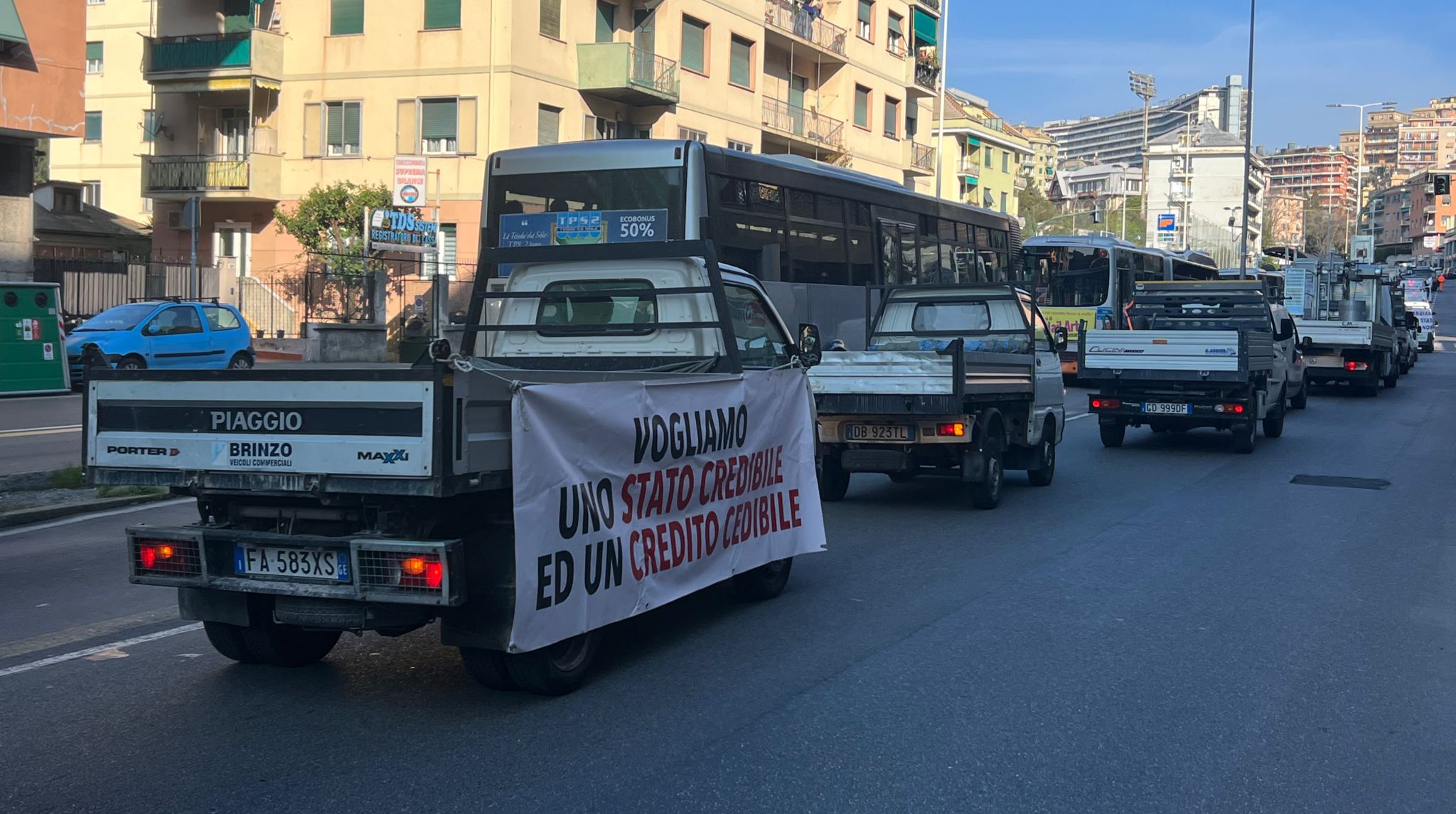 Sono più di 600 furgoni, camioncini e auto solo quelli partiti da Sestri Ponente e che per le 9 hanno raggiunto Sampierdarena. Problemi anche a Levante, dove alla stessa ora il secondo corteo è partito inondando corso Europa e bloccandola completamente. Il corteo di Levante sta creando diversi problemi anche all'altezza del casello autostradale di Genova Nervi, dove si registra 1 km di coda tra Reggo e Nervi, un chilometro tra Genova Est e Nervi e coda in generale all'uscita.