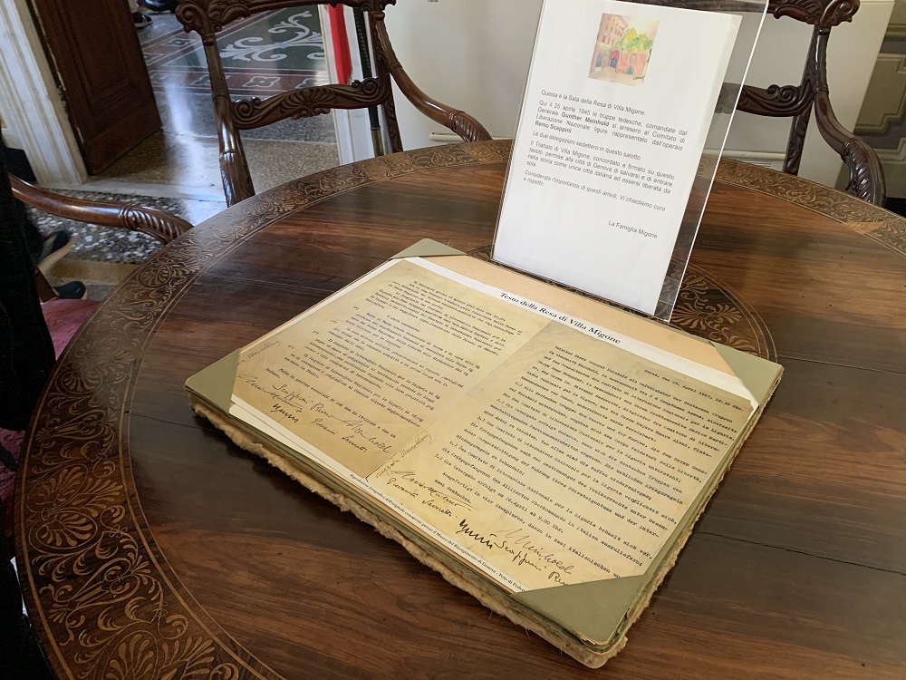 GENOVA - È nascosta nel cuore di San Fruttuoso a Genova, i proprietari sono gli eredi di chi gli ha dato il nome. A Villa Migone 78 anni fa è stato scritto un pezzo di storia. Genova è infatti stata la prima città in Europa a liberarsi da sola dall'occupazione dei tedeschi durante la seconda guerra mondiale. Riavvolgendo il mastro della storia ci ritroviamo a Villa Migone, sono le ore 19,30 del 25 aprile 1945. Il generale nazista Gunthet Meinhold firma l’atto di resa alla presenza del presidente del Comitato di Liberazione Nazionale per la Liguria, Remo Scappini, all'avvocato Enrico Martino e Giovanni Savoretti (parente del cantante Jack), membri del Comitato di Liberazione nazionale per la Liguria e dal maggior Mauro Aloni, comandante della piazza di Genova oltre al cardinale Boetto (che a Villa Migone risiedeva).
