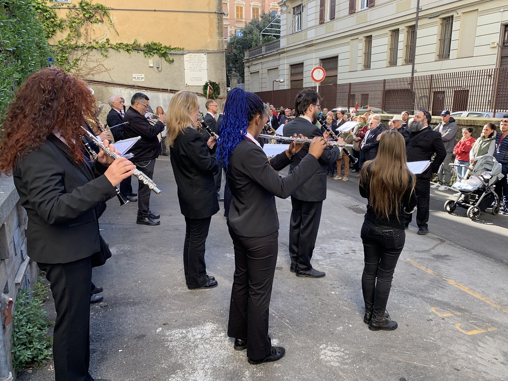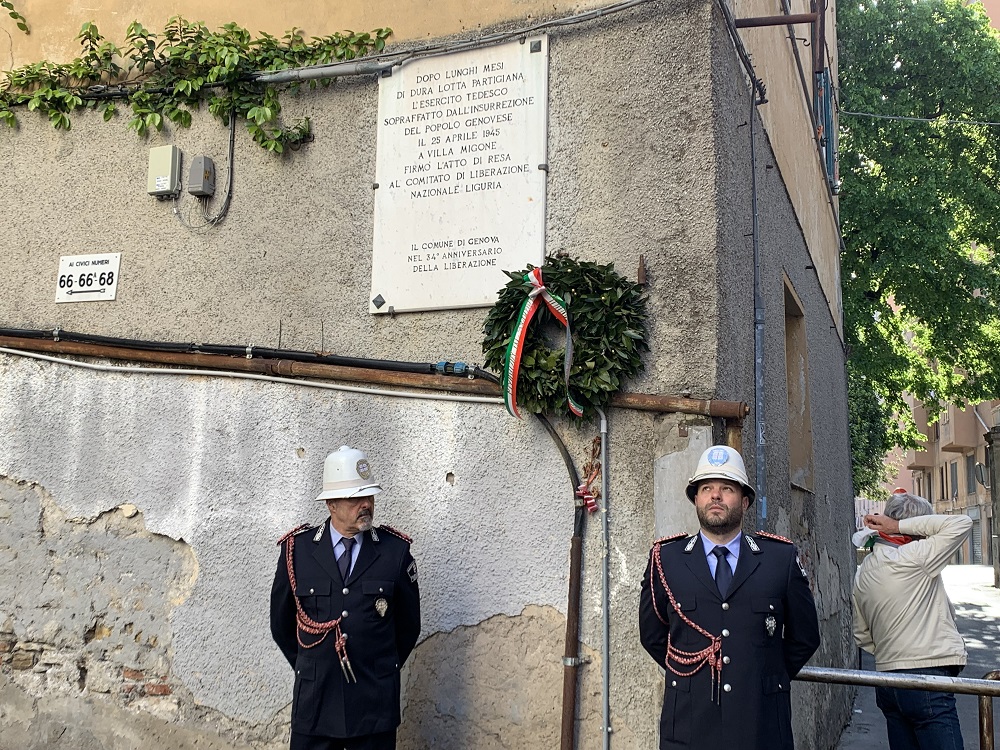 E a Villa Migone la cerimonia di è ripetuta. Prima l'arrivo della Filarmonica di San Fruttuoso sulle note di 'Bella ciao'. Poi ancora i canti partigiani scritti sulle alture di Genova durante la Resistenza ne 1944, infine l'inno d'Italia.