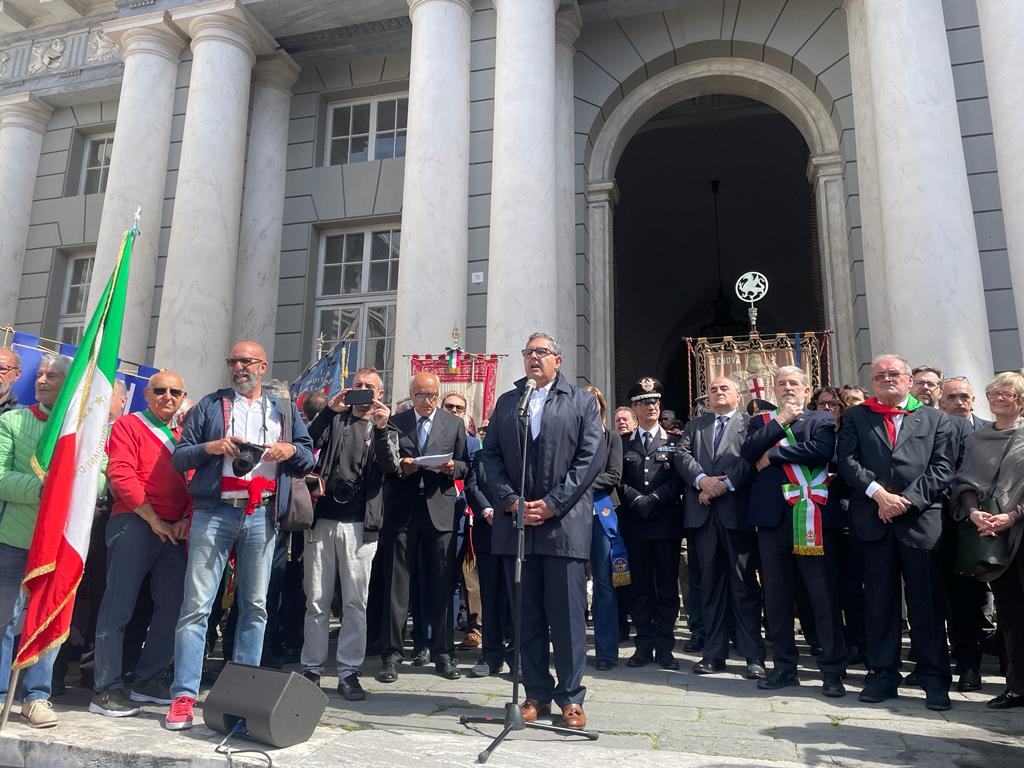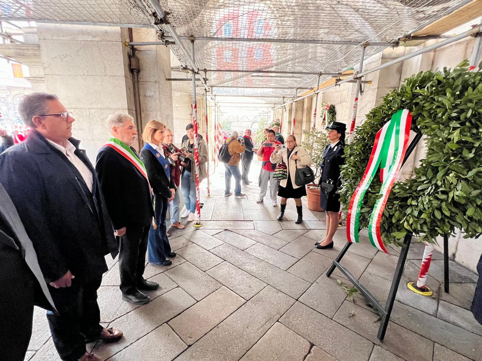 Ricordando soprattutto l'impegno delle donne "che entrarono a pieno titolo nella vita pubblica, 35mila partigiane". Ma anche i 2568 caduti durante la guerra di liberazione e l'impegno dei militari ed in particolare dei " 2000 carabinieri che il sette ottobre vennero disarmati per ordine del ministro Graziani e poi deportati dai tedeschi nei campi in Germani, Polonia e Austria e oltre 500 non tornarono".