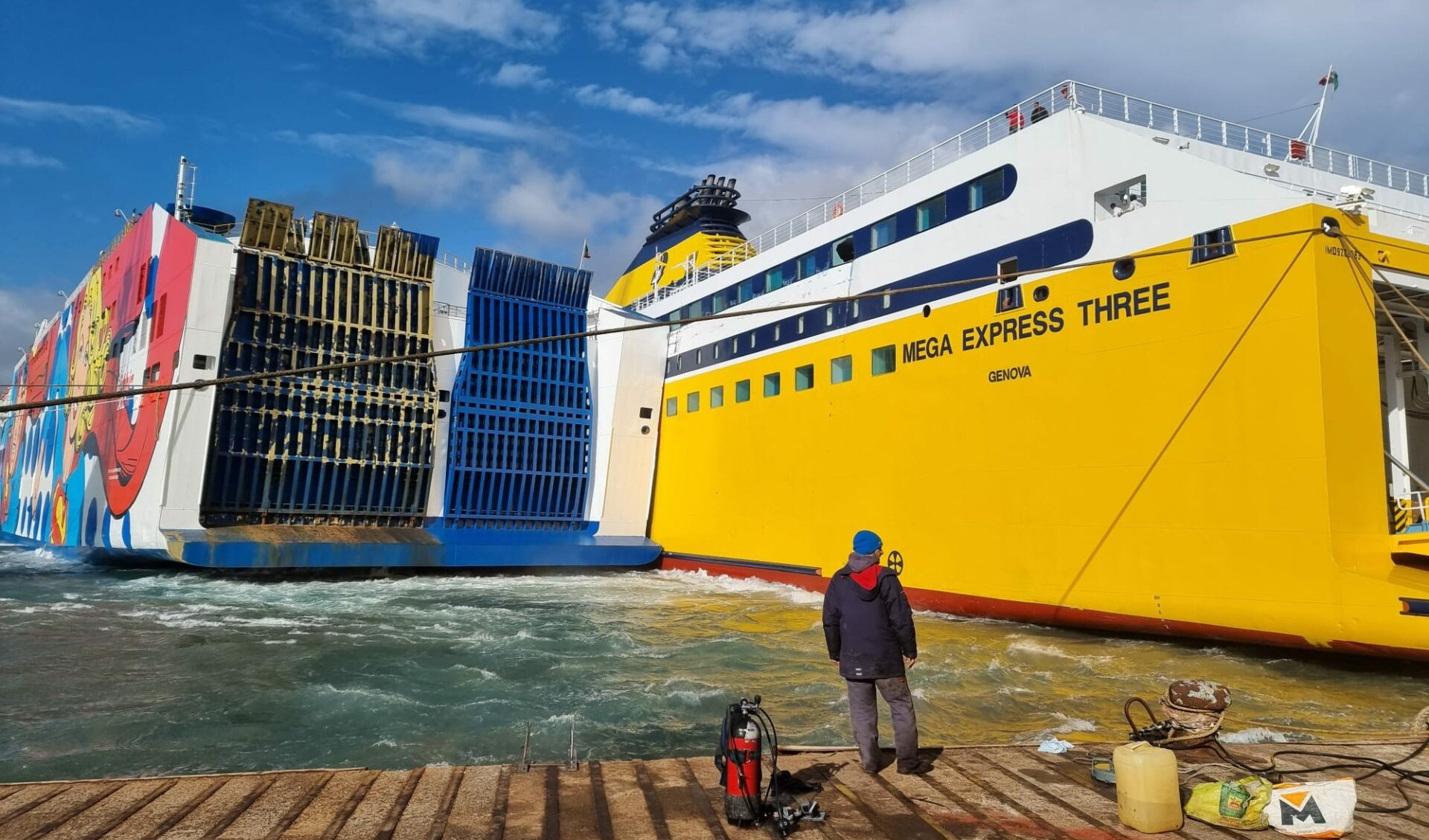 Dopo numerosi tentativi di ripartire, anche su ordine della capitaneria di Porto è stata raggiunta dal rimorchiatore Messico, uno dei più grandi in servizio a Genova, e ora sta rientrando a Genova trainata dal rimorchiatore.