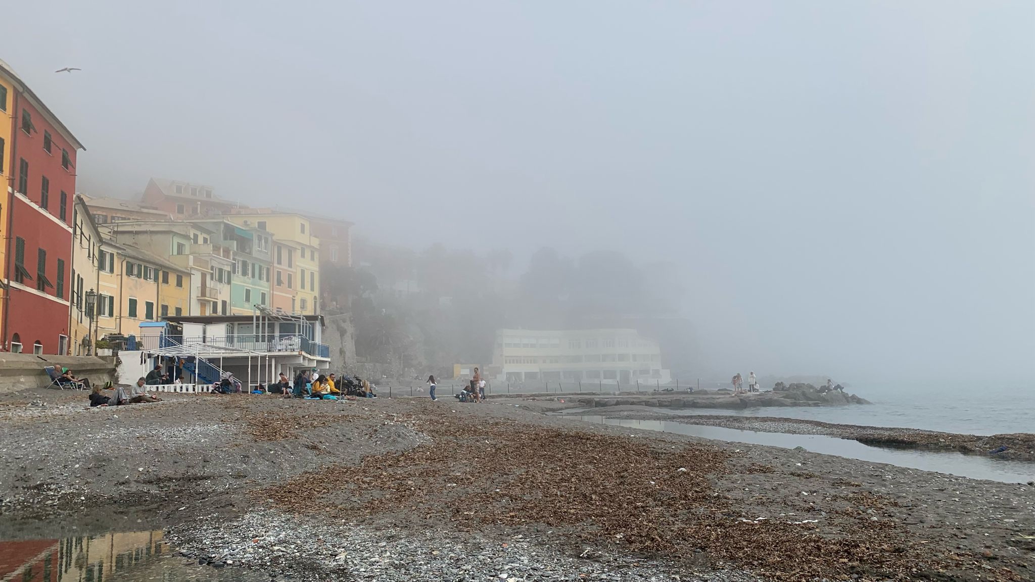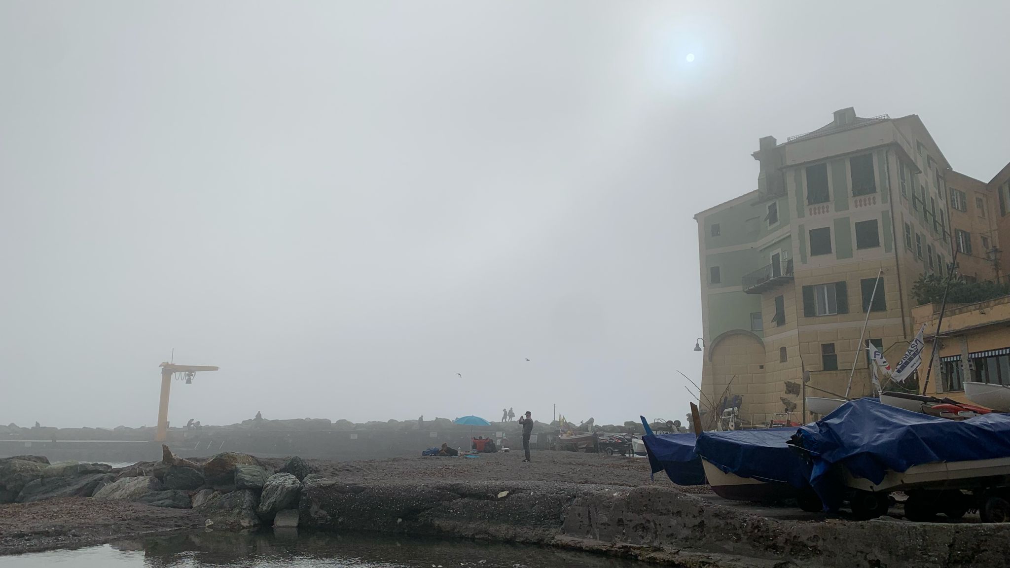 La tipica foschia che caratterizza i luoghi di mare, ha fatto la sua ricomparsa oggi in Liguria, toccando diverse località della provincia genovese tra cui Bogliasco e Camogli ma anche il ponente cittadino, tra Pegli e Voltri oltre che il centro, con la nebbia che ha avvolto il porto.
