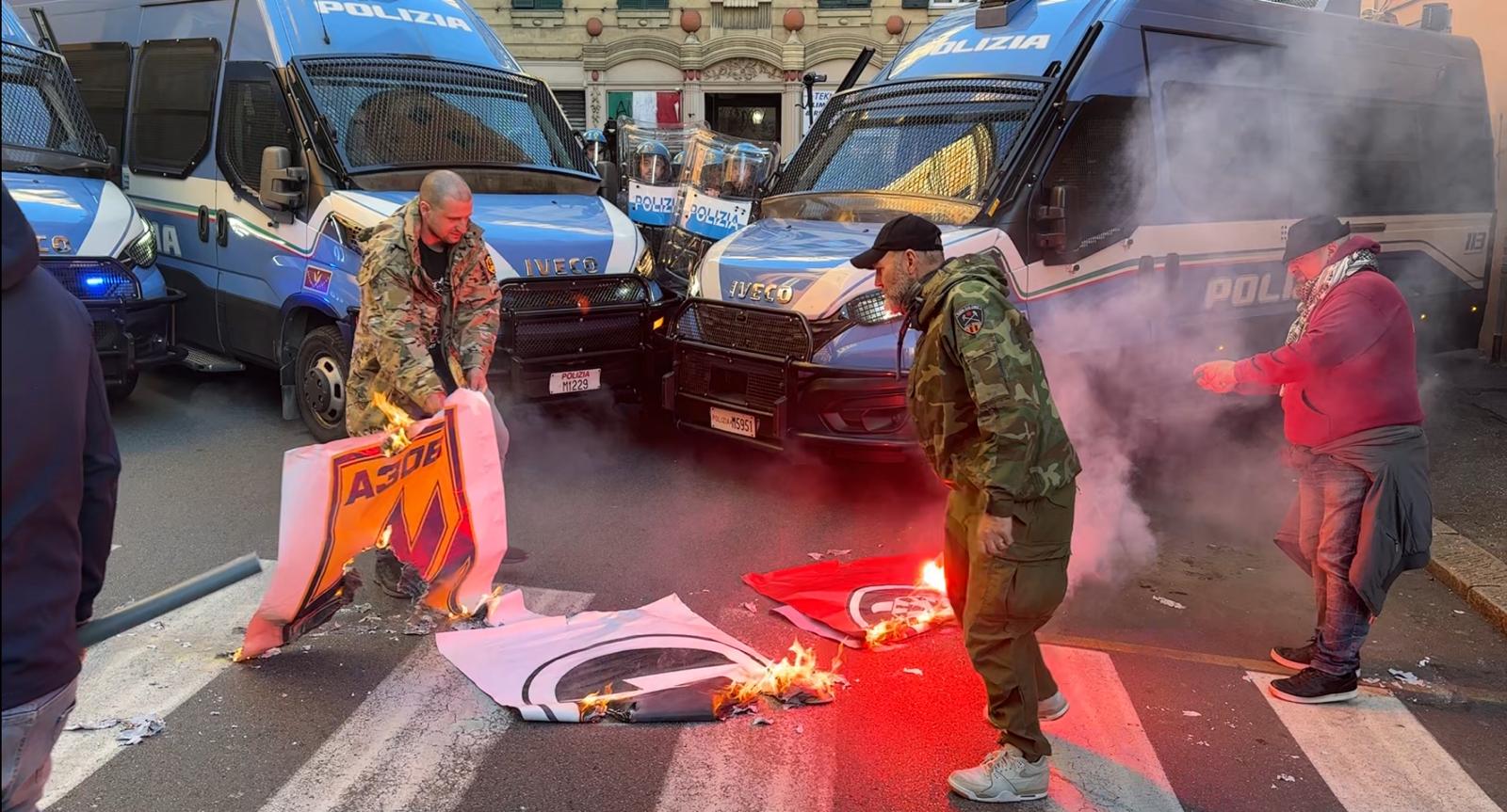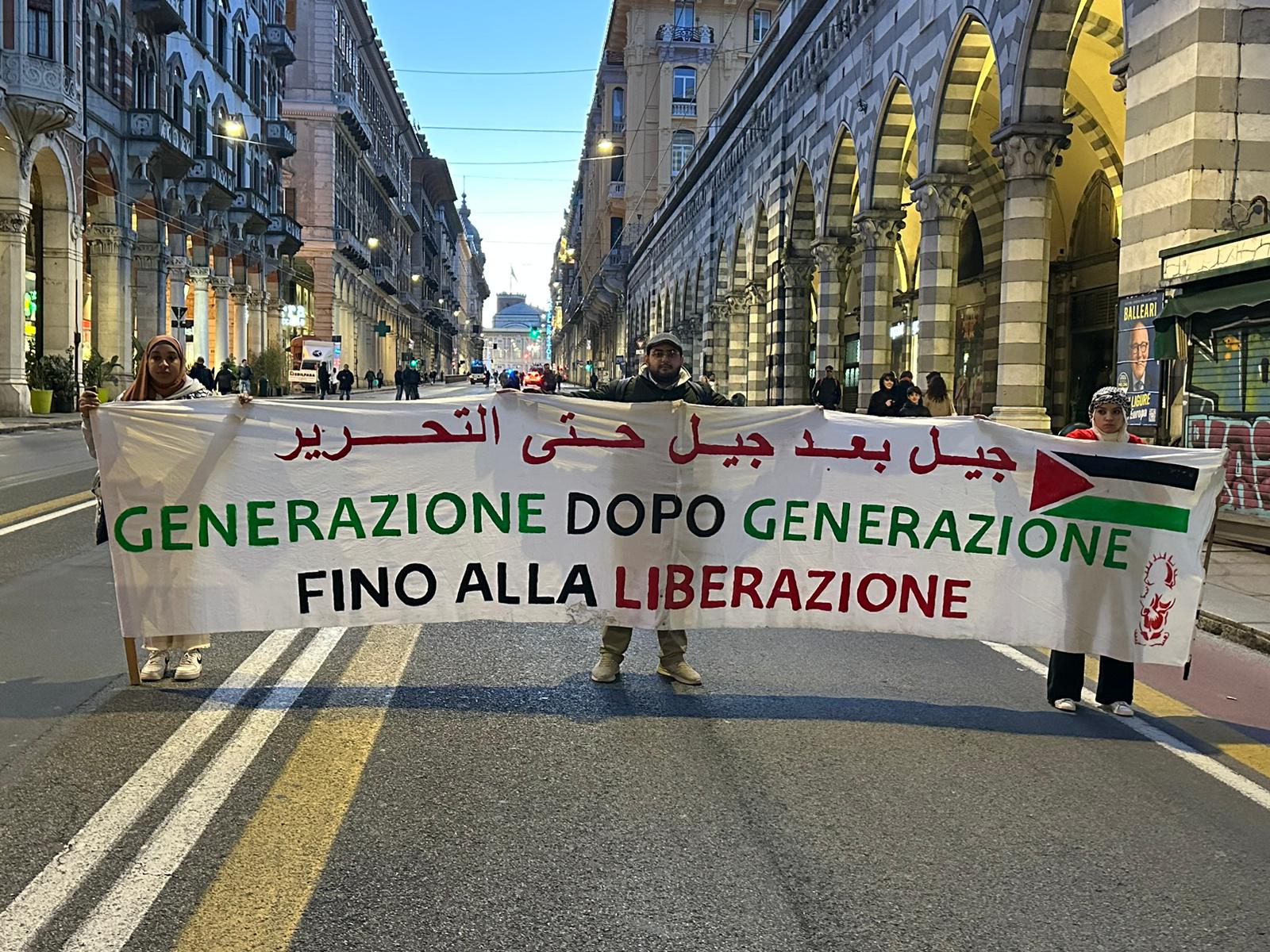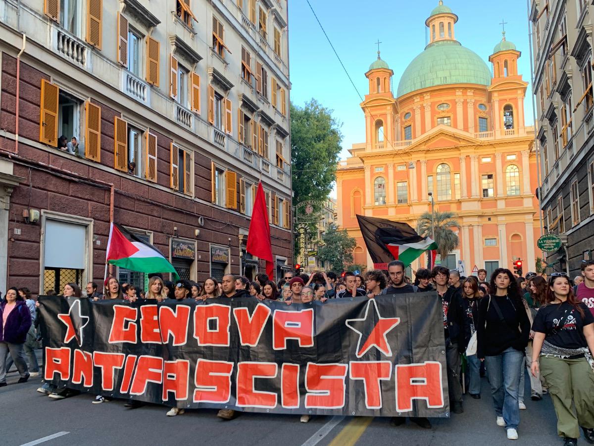 Quindi il corteo è arrivato in via XX Settembre. Sotto ponte Monumentale srotolato uno striscione a favore della Palestina. Poi il ricordo dei fatti storici dell'aprile del 1945. Infine i fumogeni e i fuochi d’artificio ad accompagnare l’arrivo dei manifestanti di Genova Antifascista in piazza De Ferrari poco dopo le 21.