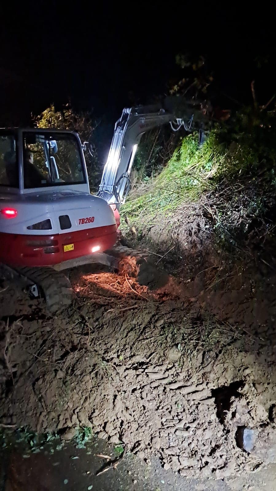 Nella notte i vigili del fuoco e i volontari della protezione civile hanno lavorato per permettere di aprire un varco per i mezzi di soccorso ai circa 30 residenti della località Bertè nel comune di Masone. Qui infatti in serata si è verificata una frana con terra e alberi finiti sulla carreggiata che impediscono il passaggio alle auto private. In giornata previsto il sopralluogo del geologo per valutare la situazione.