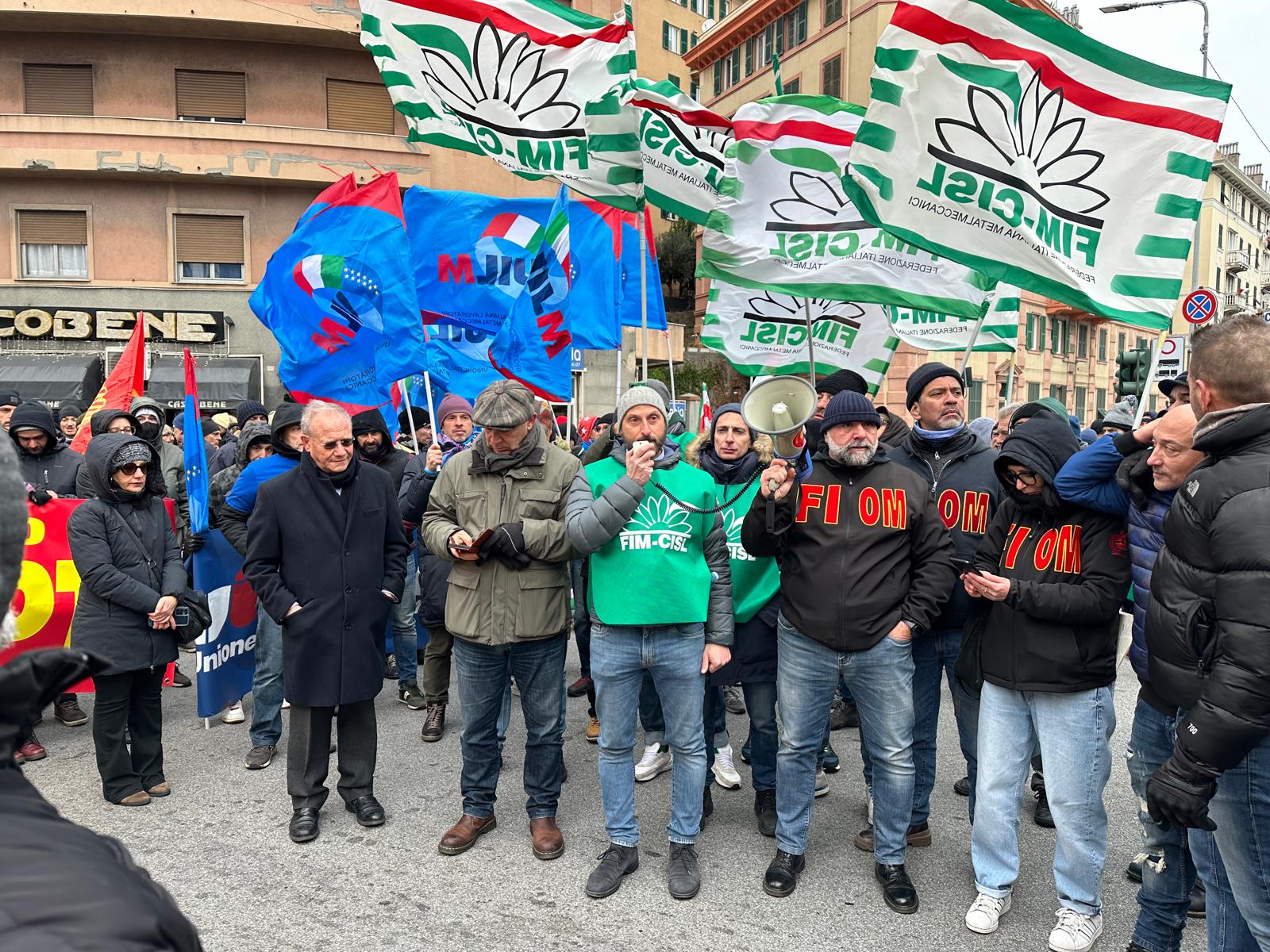 Anche il coordinatore della Uilm Liguria Antonio Apa: "Sono due le questioni che ci hanno fatto scendere in piazza oggi, prima di tutto serve una politica industriale seria. Poi c'è la questione del rinnovo del contratto, serve aumentare il salario dei lavoratori per far fronte all'aumento del costo della vita e poi serve rivedere l'orario di lavoro in modo da andare incontro alle esigenze dei lavoratori".