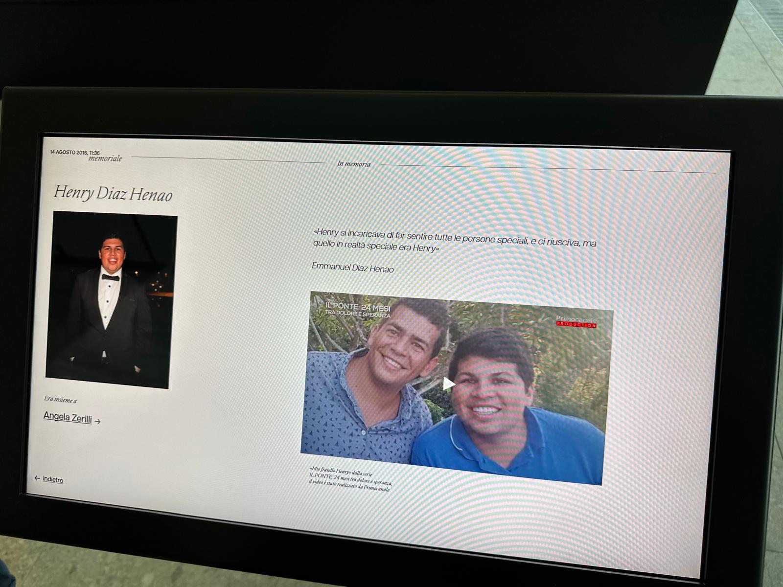 È stato il figlio di Andrea Cerulli, una delle 43 vittime del crollo di ponte Morandi, a tagliare il nastro del Memoriale delle vittime inaugurato oggi, domenica 15 dicembre. 14 agosto 2018, 11.36. Una data e un'ora precisa che nessuno potrà mai dimenticare. Da domenica 15 dicembre anche chi non ha vissuto in prima persona quella tragedia, chi era ancora un bambino, chi viveva in un'altra città o Regione potrà rivivere quello che è successo nel Memoriale dedicato alle vittime del crollo che sorge nei pressi dell'ex pila 9 del Ponte Morandi. Un memoriale al cui interno sono stati scelti anche alcuni dei docufilm che Primocanale Production ha realizzato 24 mesi dopo per ricordare quel giorno e le storie di alcune vittime attraverso la voce dei famigliari che avevano accettato la nostra proposta.
