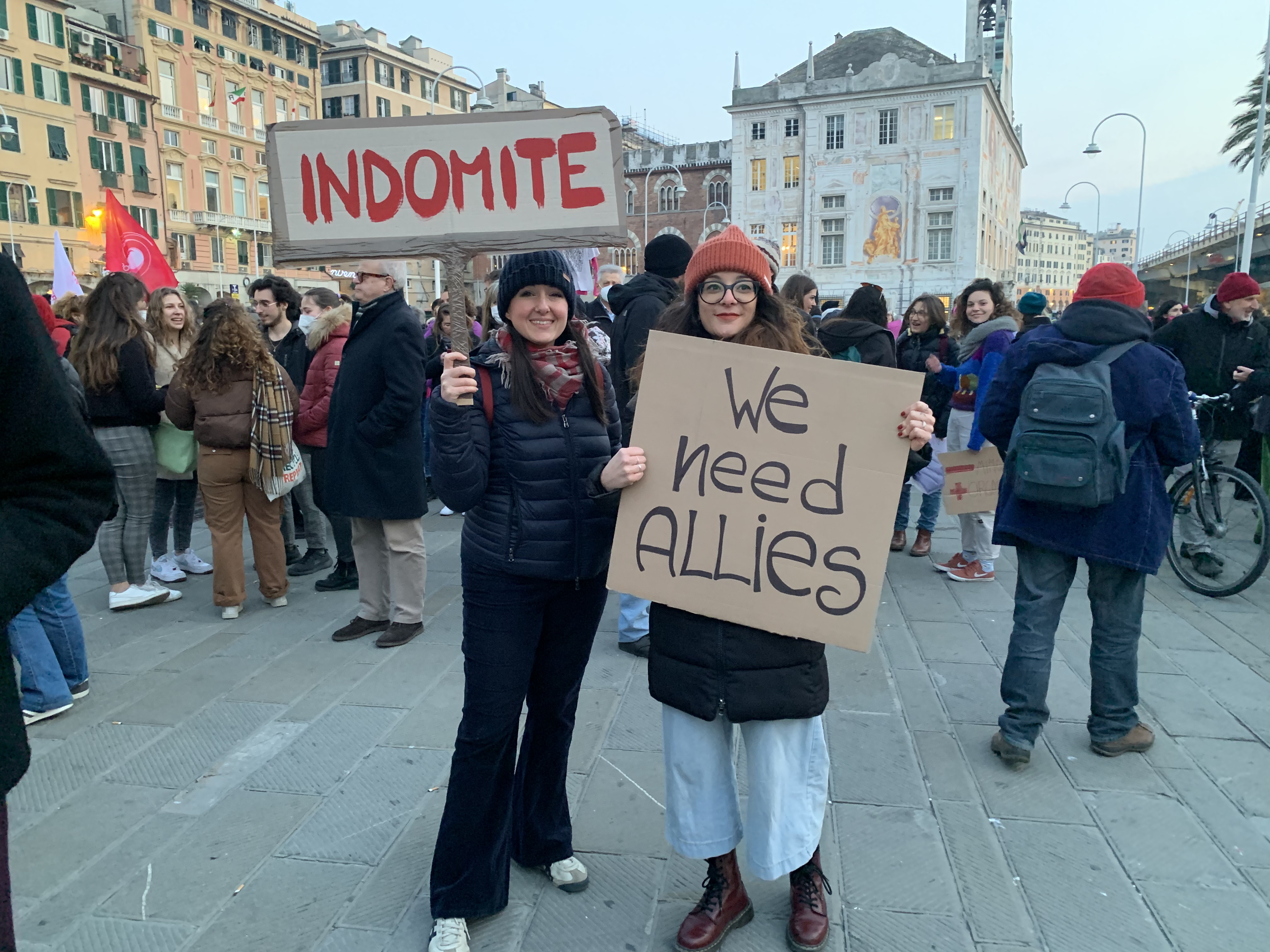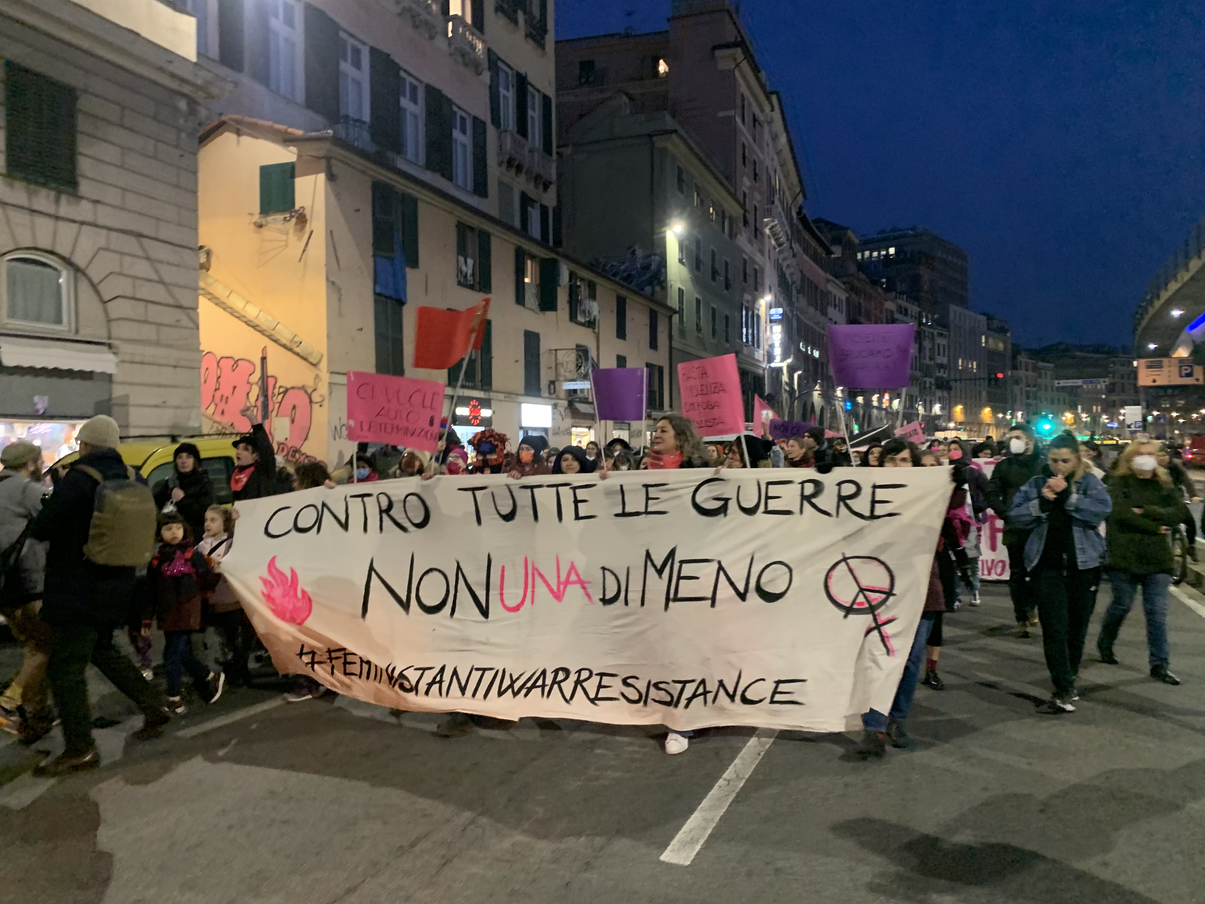 GENOVA - "Siamo il grido altissimo e feroce di tutte quelle donne che non hanno più voce". Più di 500 persone a Genova per manifestare contro la guerra e il patriarcato. Donne, uomini, giovani, anziani e bambini armati di cartelli e slogan si sono riuniti in occasione della Festa della donna per dire basta alla violenza sul genere femminile e la violenza di genere. Anche Genova diventa così una delle trenta città mobilitate dal movimento transnazionale "Non una di meno". Le attiviste genovesi hanno deciso di portare la protesta in strada, con un corteo per le vie della città che è partito da piazza Caricamento ed è arrivato nel cuore di Genova, in piazza Matteotti.