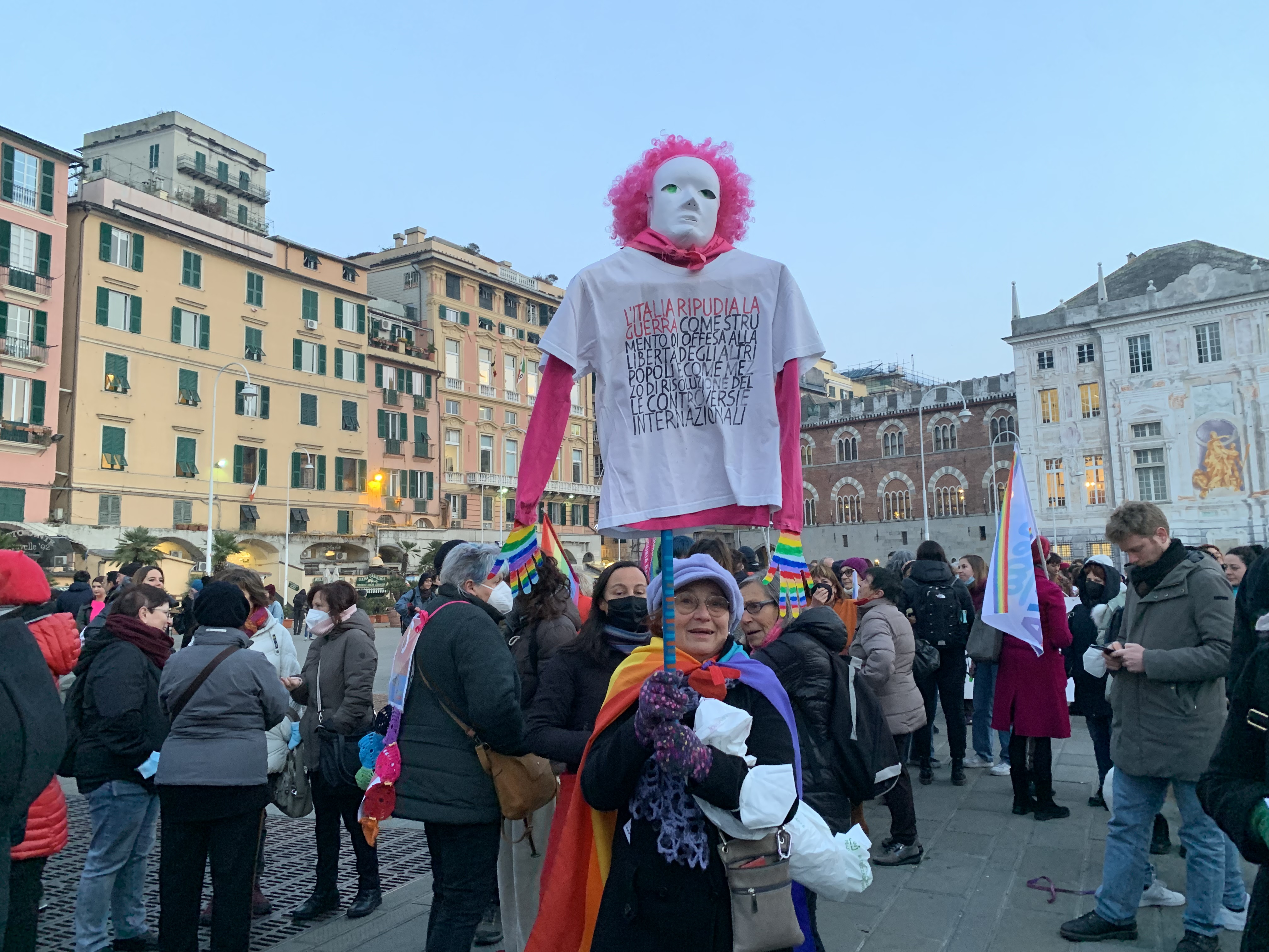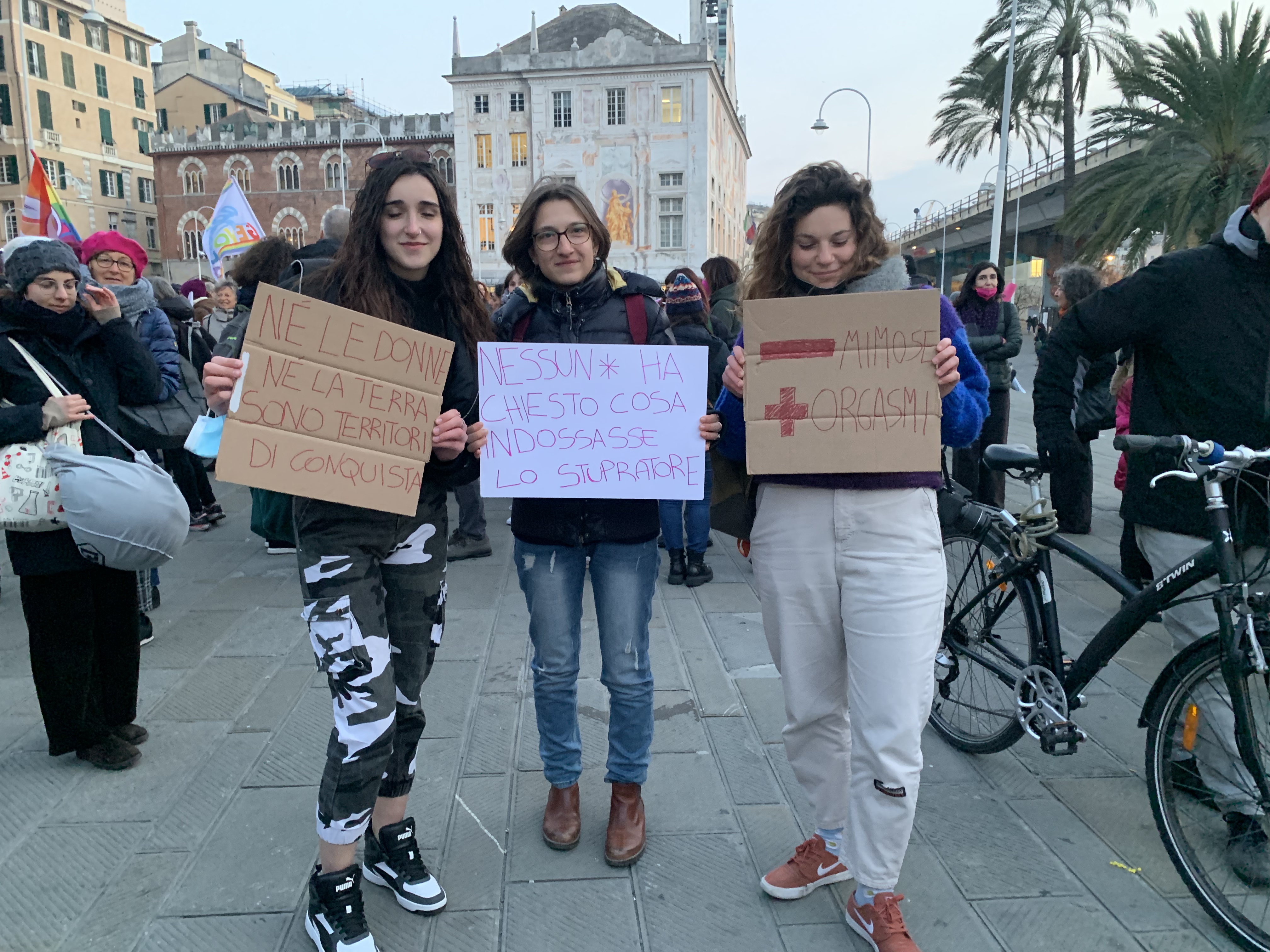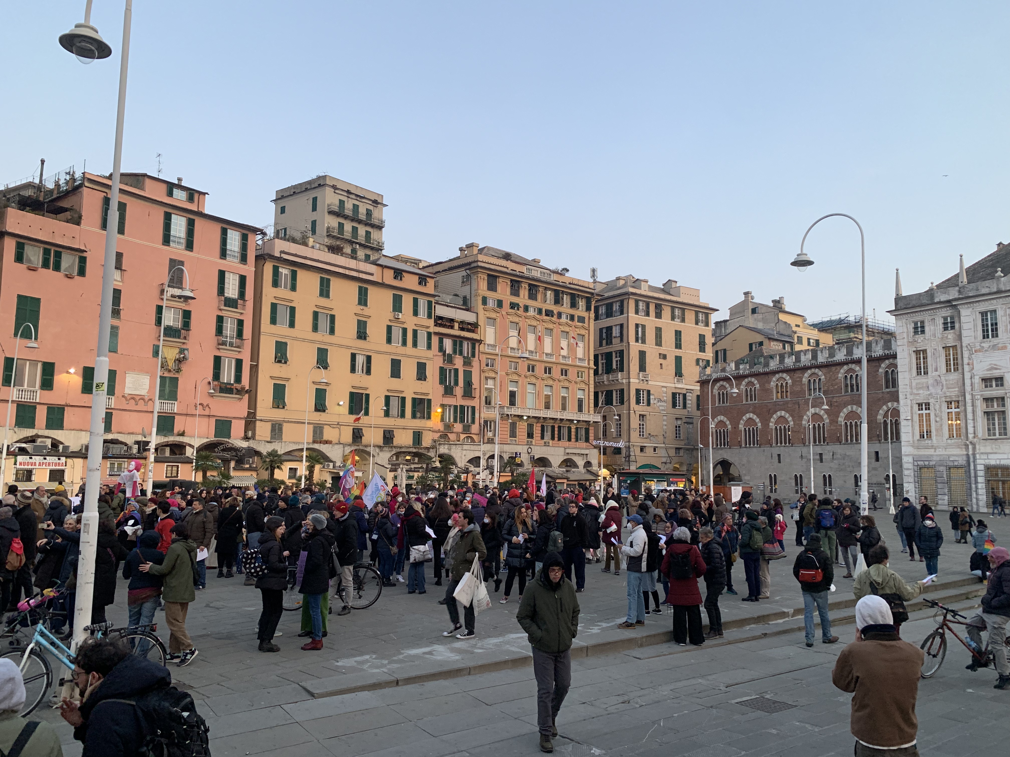 Arrivato in piazza Matteotti, sotto a Palazzo Ducale, le attiviste hanno deciso di rendere propria un'azione che le "sorelle cilene" nelle piazze praticano da anni, sedute a terra in silenzio per poi esplodere in un grido potente di "rabbia e sorellanza". Non solo urla, centinaia di persone hanno agitato in aria i loro mazzi di chiavi per simboleggiare la lotta quotidiana alla violenza di ogni donna.