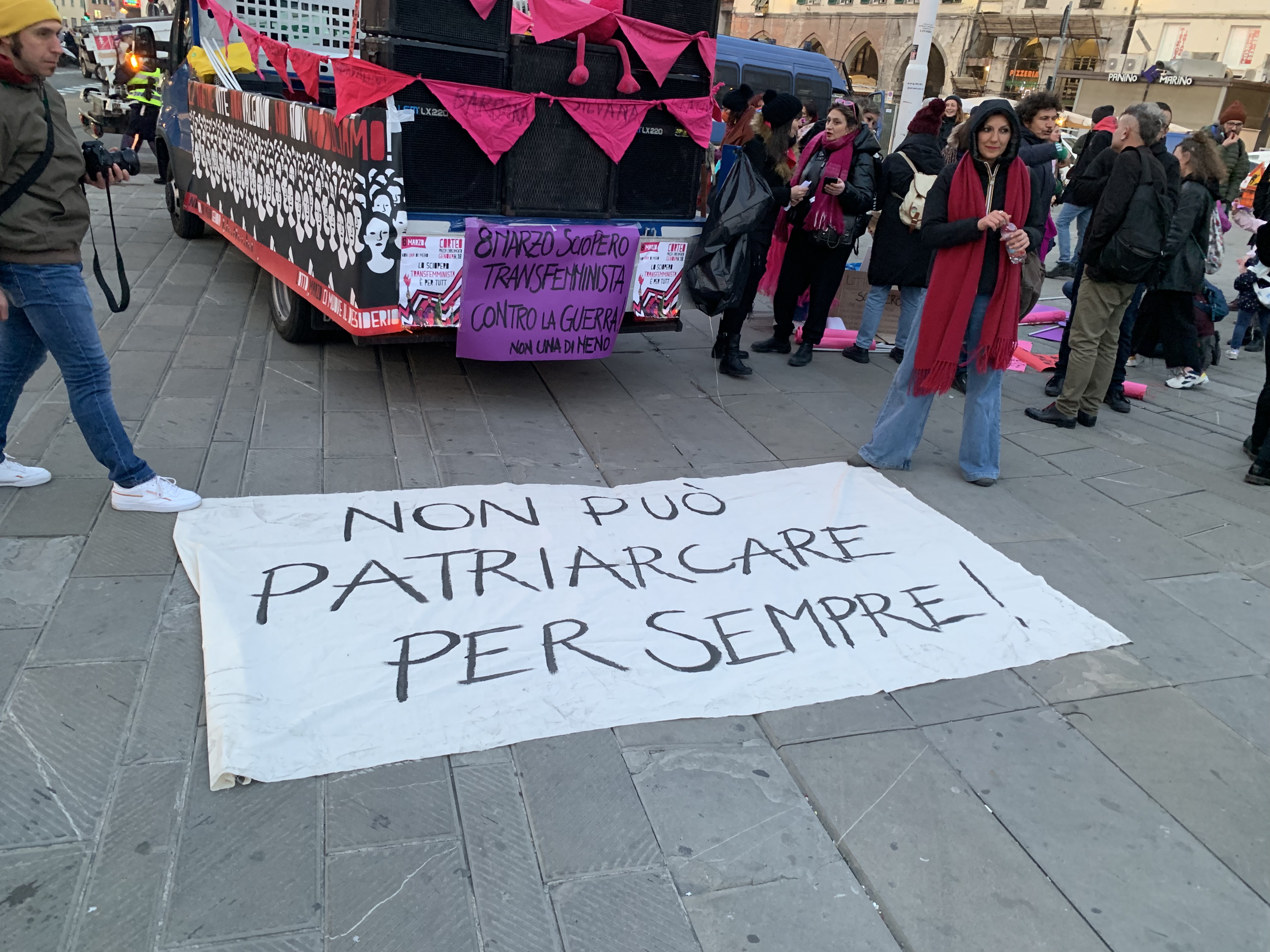 "Siamo l'opposizione alla guerra, al patriarcato, all’autoritarismo e al militarismo. Siamo il futuro che prevarrà" sono le parole, riprese dal manifesto delle femministe russe, con cui si apre il comunicato dello sciopero e con cui l'organizzazione scesa in piazza ha deciso di iniziare la protesta, tra musica raggaeton e cori. "Siamo donne, persone lgbt*qia+, lavoratrici, disoccupate, delegate sindacali, migranti, sex workers attive nel movimento transnazionale Non Una di Meno. Due anni di pandemia hanno colpito duramente le nostre condizioni di vita e di lavoro e sentiamo il bisogno di dire perché, anche se oggi è più difficile organizzarsi, crediamo che il nostro sciopero contro la violenza maschile sulle donne e la violenza di genere - che continua ad aumentare tutti i giorni - sia ancora più urgente. Troviamo insieme modi per farlo: lo sciopero femminista e transfemminista è per tutte e tuttə."