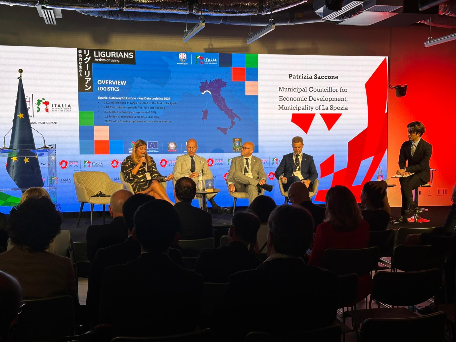 Il panel si è svolto all’interno del Padiglione Italia che ha riunito per la Regione Liguria, il Capo di Gabinetto del presidente della Regione Liguria, l'ammiraglio Massimiliano Nannini, il consigliere delegato allo Sviluppo Economico e ai Porti Alessio Piana, il Commissario Generale per l’Italia all’Expo Ambasciatore Mario Vattani, l’ambasciatore italiano a Tokyo Gianluigi Benedetti, oltre a imprese, rappresentanti del mondo accademico e visitatori internazionali confermando la vocazione marittima della regione come motore di sviluppo sostenibile e innovazione.