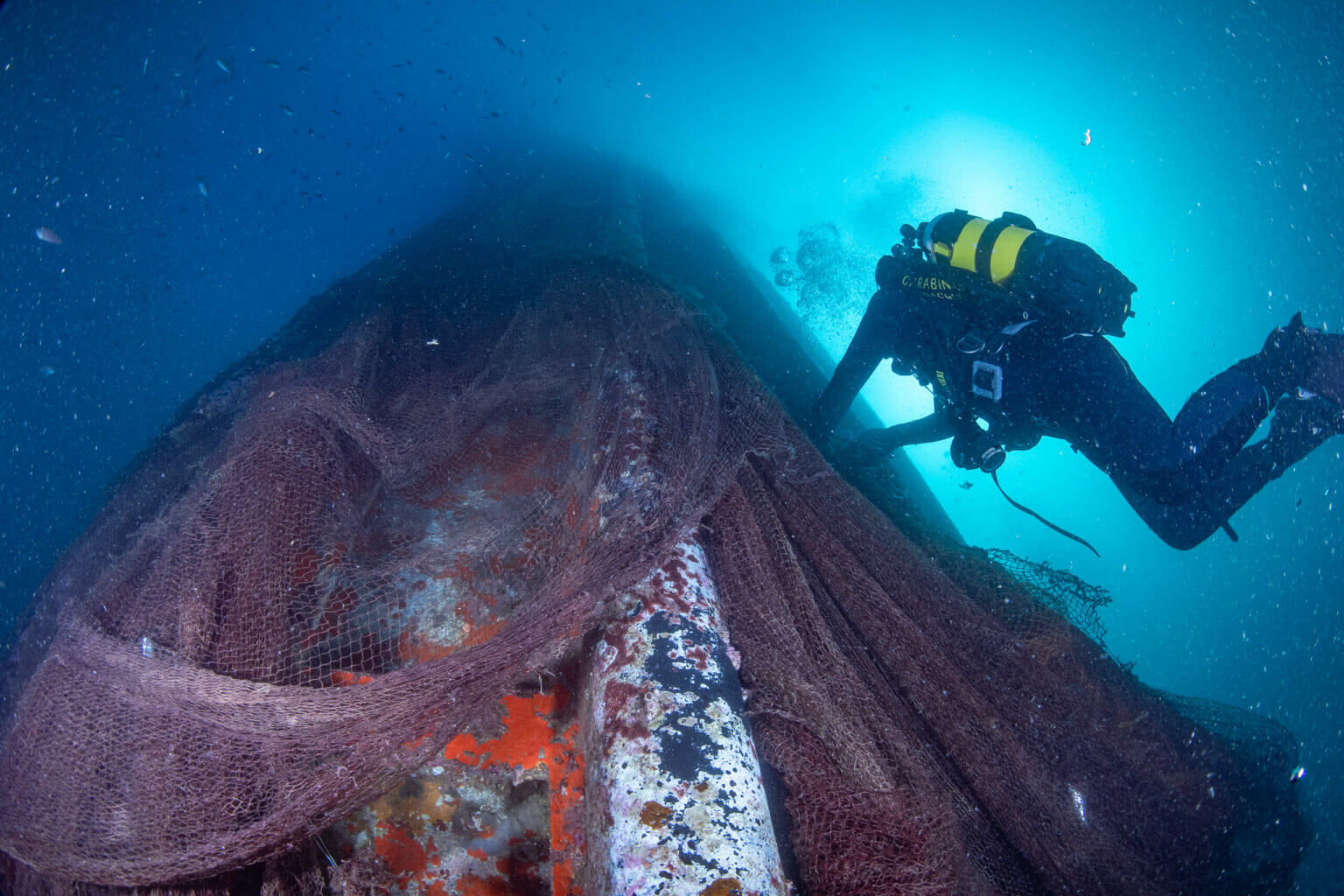 Si è conclusa oggi con successo a Genova una complessa operazione subacquea per rimuovere una maxi rete fantasma dai fondali poco fuori dal porto. La “ghost gear”, una rete di 1100 chili dispersa, era impigliata nei resti di una piattaforma petrolifera dismessa, tra i 4 e i 45 metri di profondità. All’interno della rete sono stati ritrovati resti di numerose specie ittiche (boga, castagnola rossa) e coralli. L’intervento, durato 10 giornate di lavoro, ha visto impegnati 17 subacquei del Centro Subacquei Carabinieri di Genova e del Nucleo Subacquei Carabinieri, con il supporto scientifico del WWF Italia e il supporto logistico di AMIU Genova per lo smaltimento del materiale recuperato.