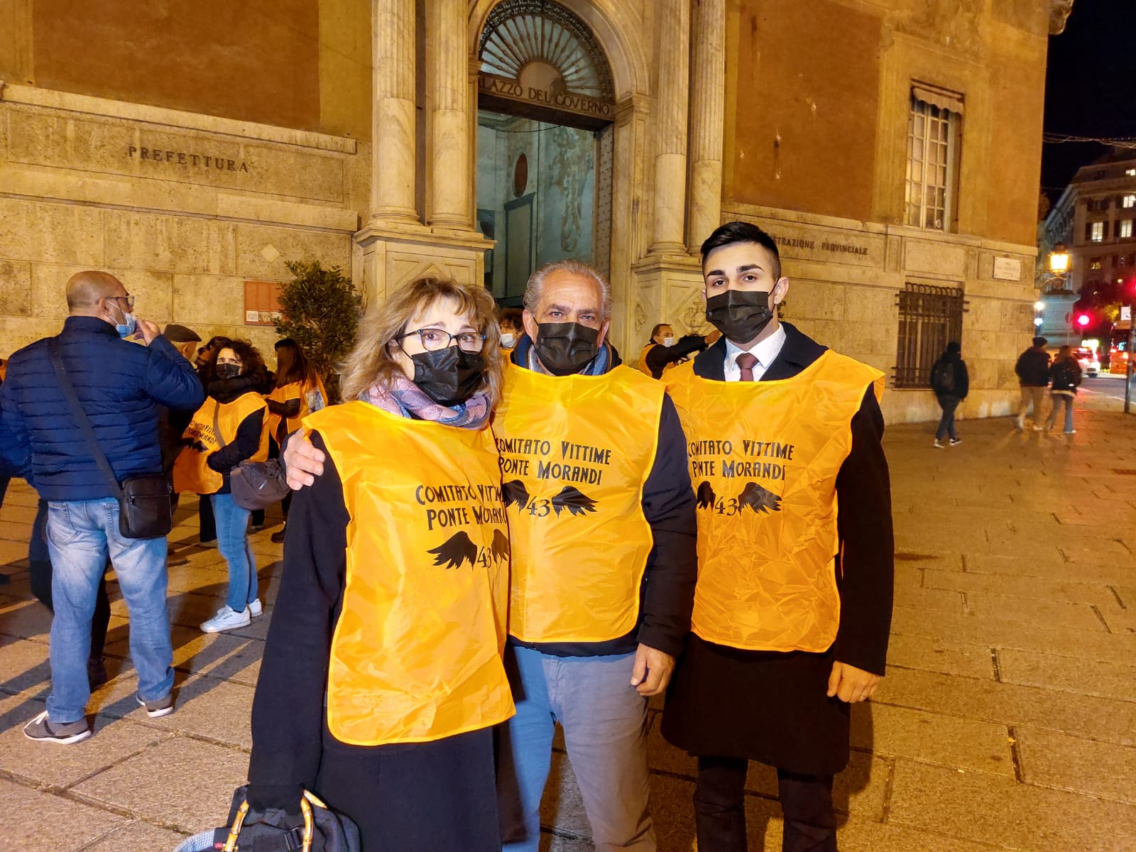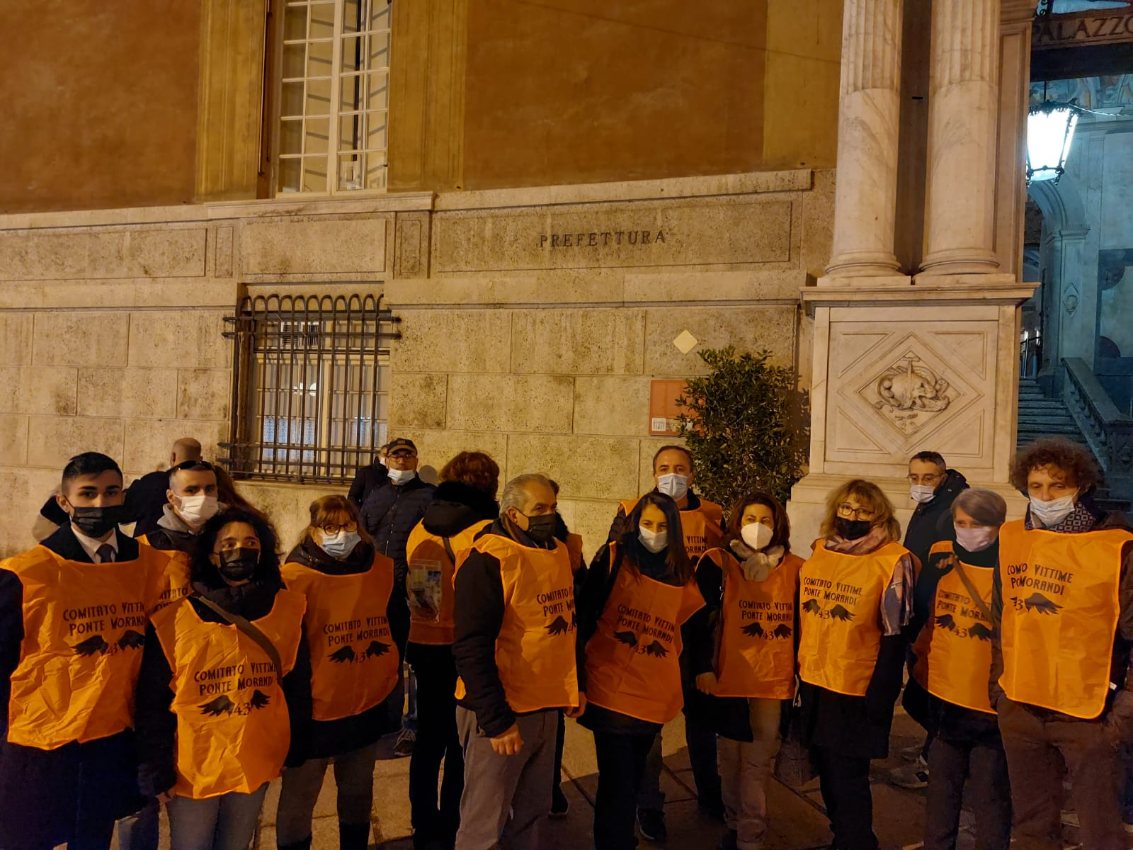 Un presidio silenzioso quello dei familiari delle 43 vittime di Ponte Morandi, che si sono dati appuntamento davanti alla Prefettura di Genova alle ore 17:30 prima di salire poi per un incontro con il prefetto di Genova Franceschelli. "Vittime dell’incuria", spesso sono stati definiti così dagli stessi parenti i 43 scomparsi il 14 agosto 2018, nel crollo del Morandi. Presenti diverse famiglie, da quelle genovesi a quelle che invece da fuori regione volevano comunque esserci per non spegnere il ricordo dei loro cari e per far sì che l'iter del disegno di legge da loro proposto possa proseguire verso l'approvazione. Primocanale ha seguito il momento in diretta sul canale 10 e in streaming. La proposta prevede che le vittime dell'incuria di beni pubblici vengano equiparate alle vittime del terrorismo e della criminalità organizzata. In questo modo ai familiari andrebbe maggiore sostegno da parte dello Stato e della società civile.