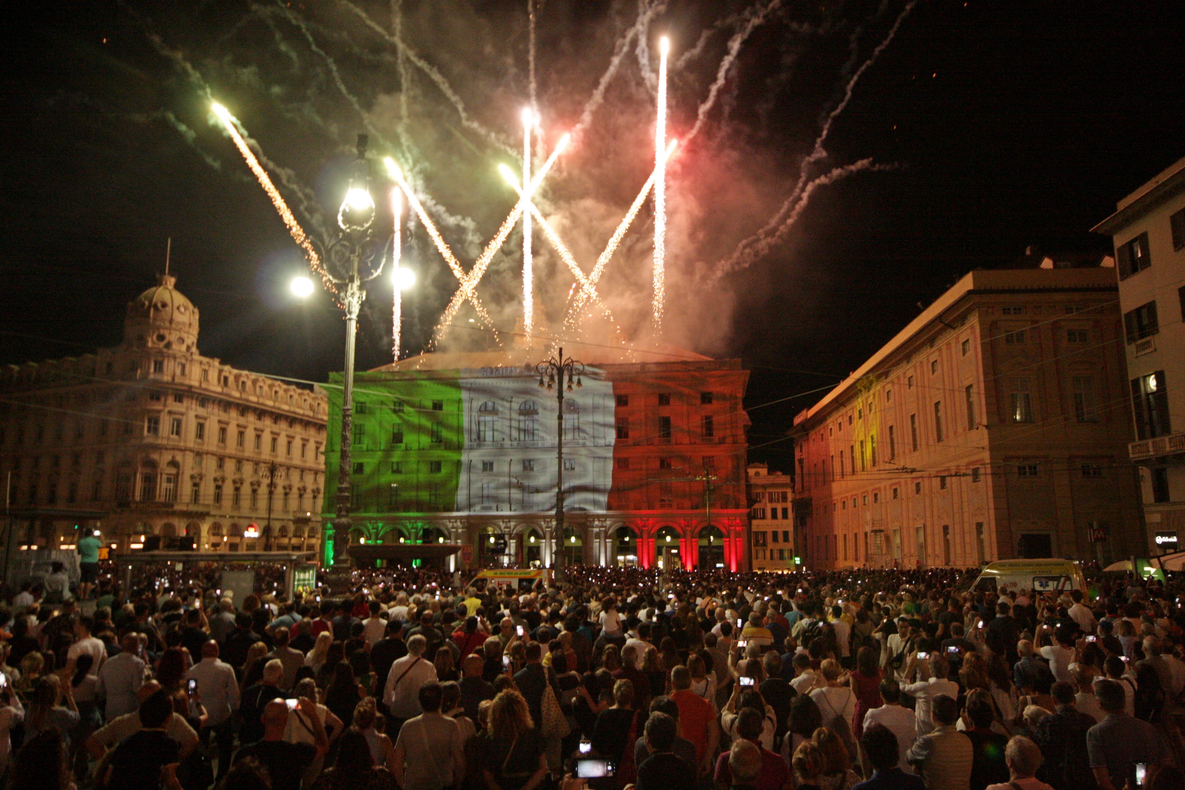 Le canzoni della nostra terra e del nostro tempo, il "secolo breve" che non vuole finire, hanno accompagnato la conclusione della festa del 2 giugno, con la diretta di Primocanale, in una piazza De Ferrari gremita di gente. Grande emozione per gli spettacolari fuochi d'artificio che hanno illuminato il cielo intrattenendo le migliaia di persone accorse in piazza.
