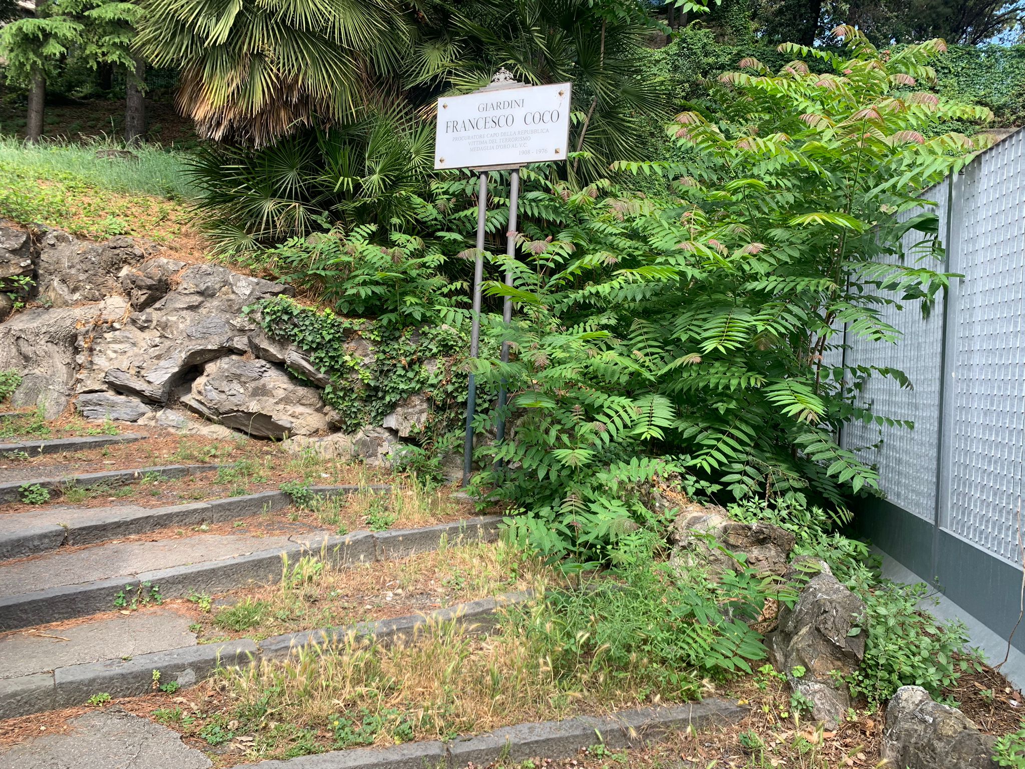 GENOVA - Bottiglie, cartacce e bicchieri abbandonati, verde incolto, scalinate ricoperte da foglie secche, topi che saltano da un punto all'altro e ancora: staccionate buttate a caso e un monumento lasciato allo scorrere del tempo. Nel cuore di Genova, a due passi dalla Questura, dalla scalinata delle Caravelle e a lato di corso Aurelio Saffi ci sono i giardini Coco intitolati alla memoria del procuratore capo Francesco Coco assassinato dalle Brigate Rosse 47 anni fa, l'8 giugno 1976 in Salita Santa Brigida a Genova. Fu il primo omicidio commesso dalle Br.