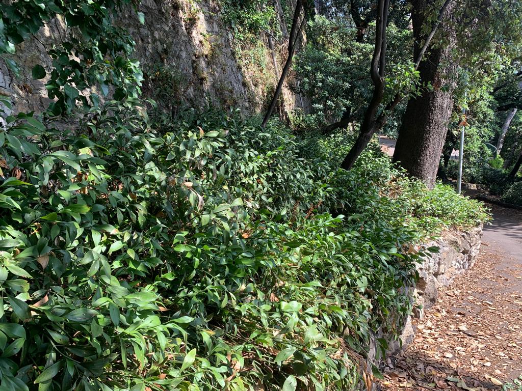 Un polmone verde a due passi dal centro che però si trova in stato di semi abbandono tra erbacce che crescono ovunque, aiuole apparentemente poco curate e un verde incolto. In mezzo oleandri, palme nane, pini e anche una Tetrapanax, arbusto semi-sempreverde originario dell'Asia orientale che chissà come è arrivata. L'ombra a ricoprire un po' tutto il giardino. All'interno in un giovedì mattina poche persone: un giocoliere che si allena, alcuni sbandati e qualche anziano che si riposa al fresco delle piante.