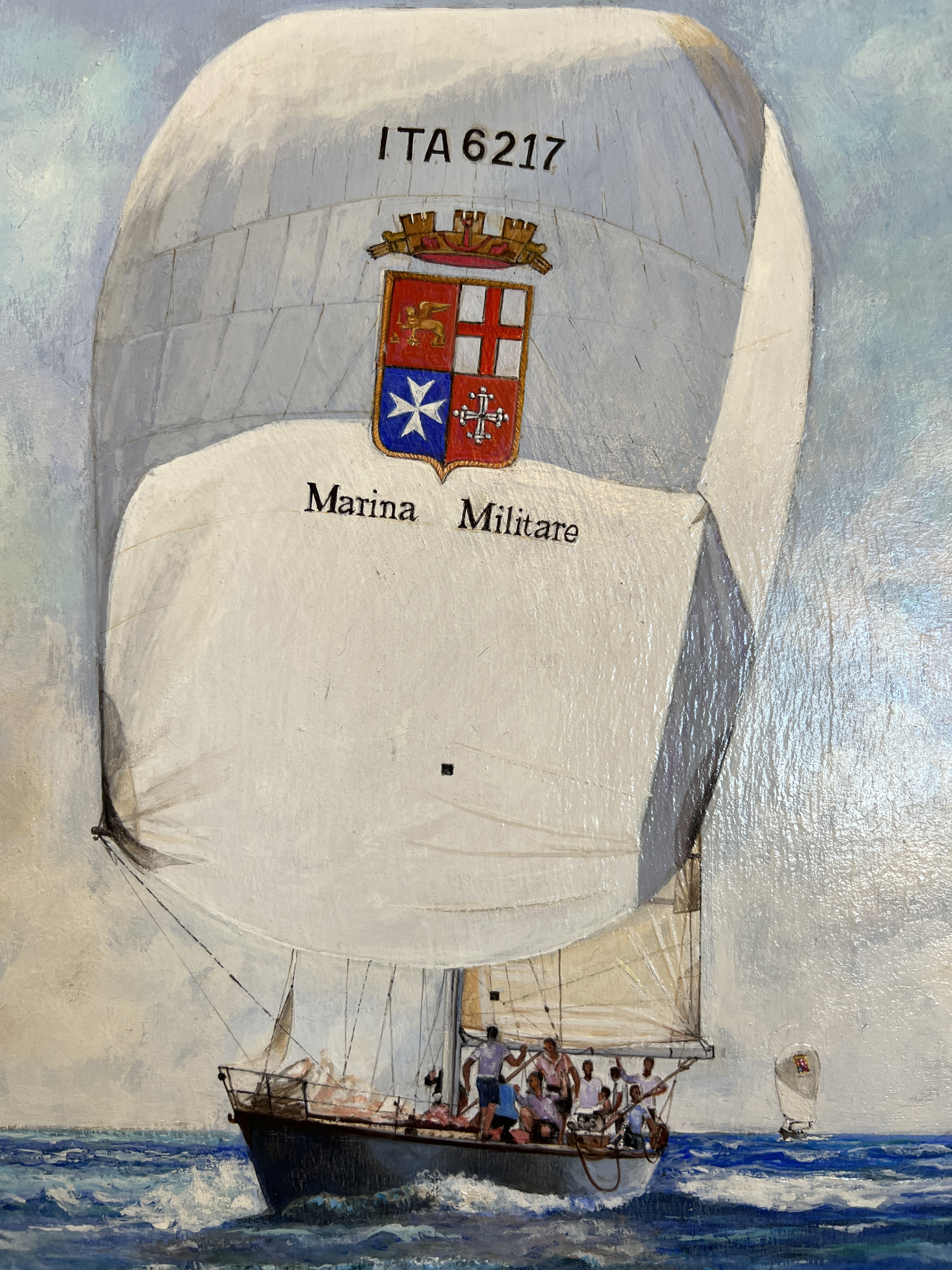 L'ispirazione per questo cutter, una barca a vela per chi non conoscesse questo mondo dotata di una randa e almeno due fiocchi e tradizionalmente usata in passato per facilitare la comunicazione tra le navi maggiori delle flotte militari, arriva proprio da un'altra imbarcazione della Marina Militare, Sagittario. Lo stesso progettista, Carlo Sciarelli, fu contattato per realizzare il Chaplin che rappresenta l'eccellenza del made in Italy, anzi del made in Liguria: i suoi disegni che presero forma nel Cantiere Sangermani di Lavagna due anni più tardi.