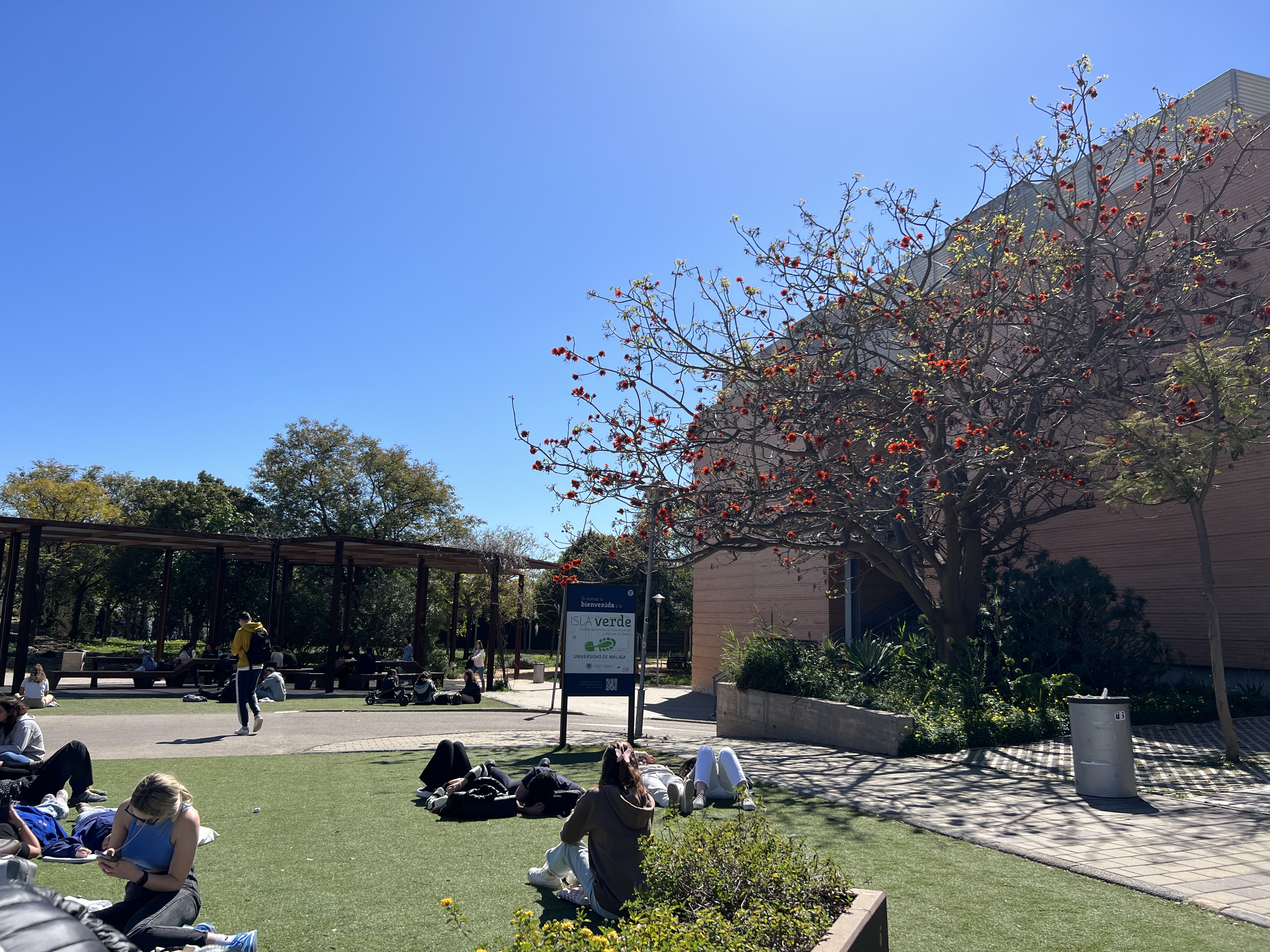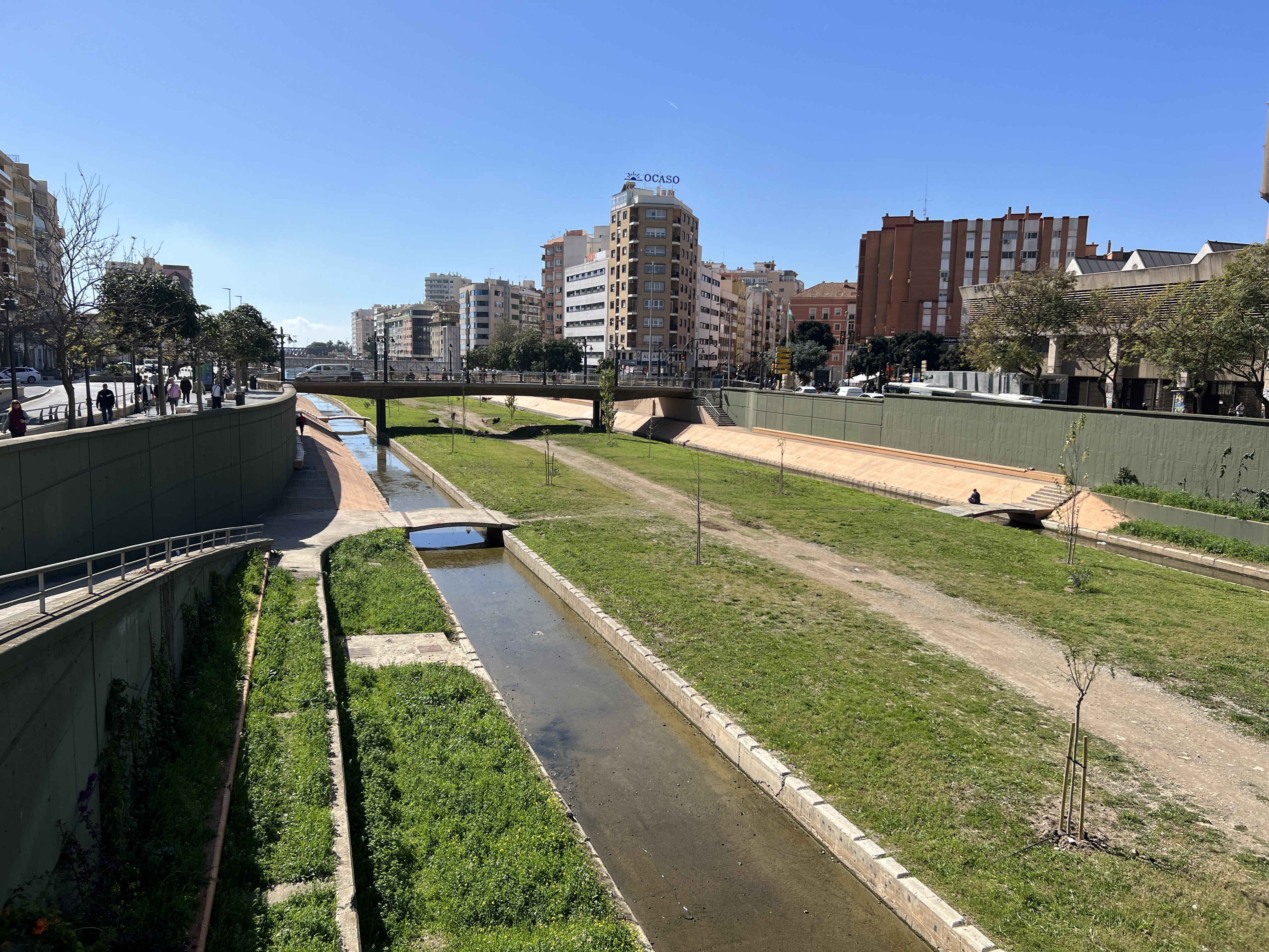 Un verde curato a partire proprio dal fiume Guadalmedina, brillante e ben tenuto. Il letto del rio, infatti, ha visto negli anni il rinforzamento degli argini e l'ha trasformato in un prato che nei periodi di secca potrebbe essere quasi percorribile a piedi. Un bel biglietto da visita per chi arriva dalla stazione di Malaga Central - diciamolo, la "Brignole" di Malaga - e che trova subito un panorama gradevole che prosegue nell'Alameda Principal, una sorta di Viale Brigate Partigiane alberata, ricca di chioschi di fiori e... panchine!