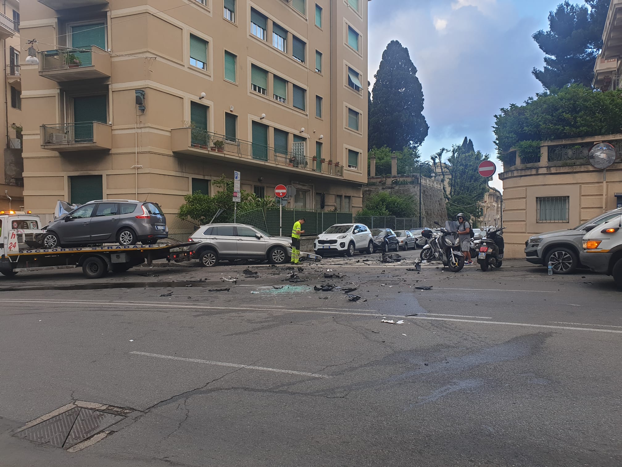 Genova: perde il controllo dell'auto, colpisce veicoli parcheggiati e si ribalta
