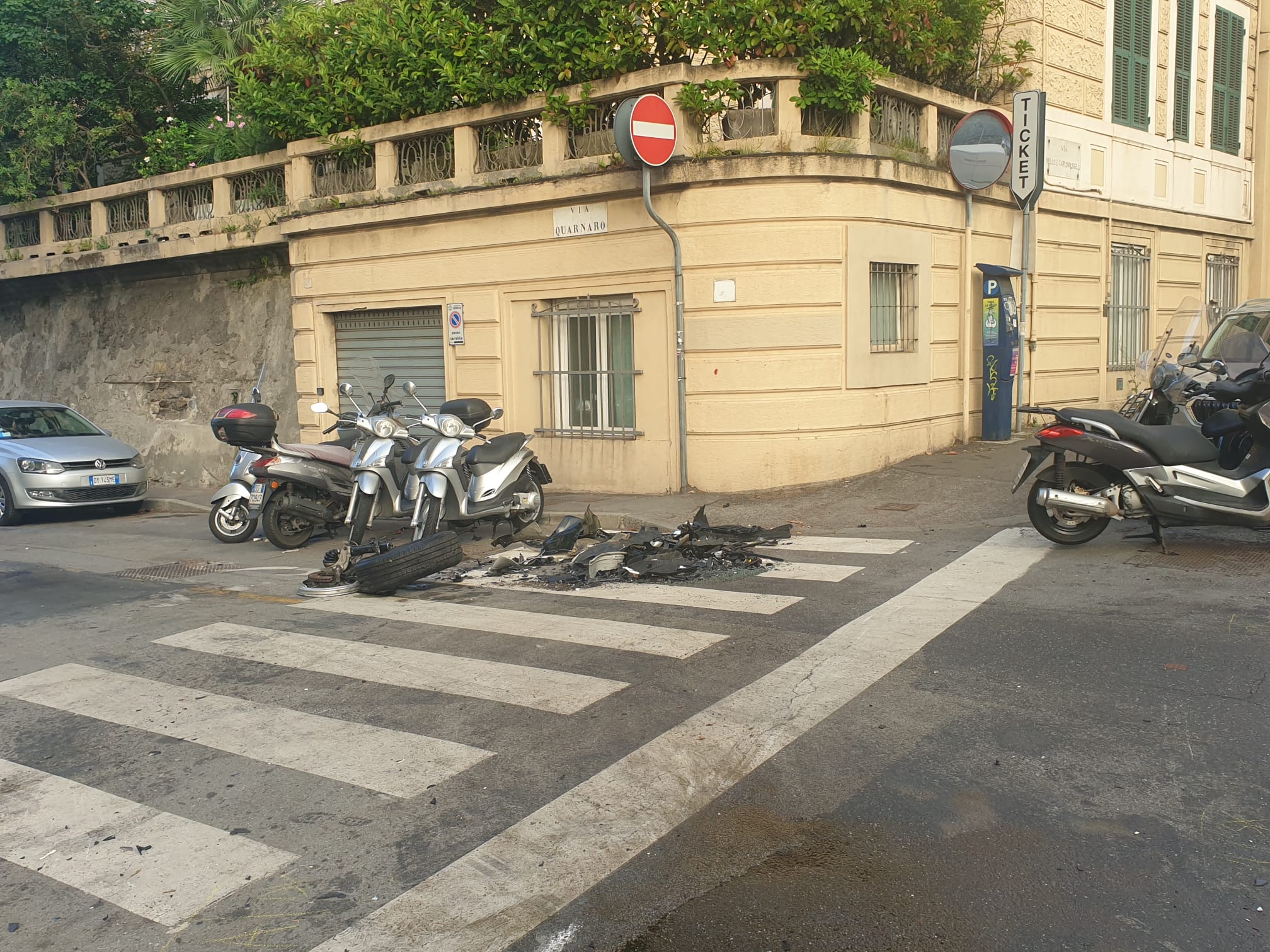 GENOVA-Paura nella notte nel quartiere genovese di Albaro dove per motivi ancora da chiarire un'auto con a bordo due persone si è ribaltata dopo aver colpito diversi veicoli parcheggiati.