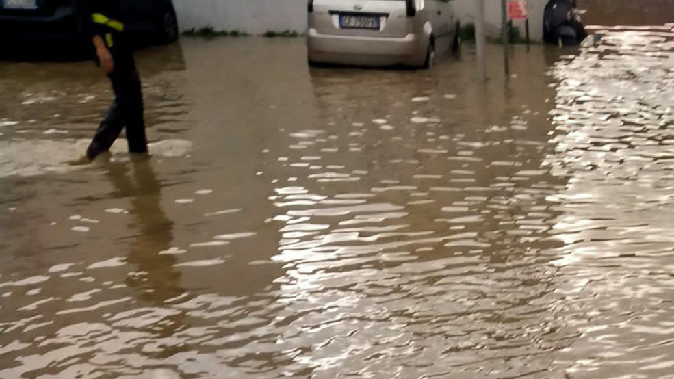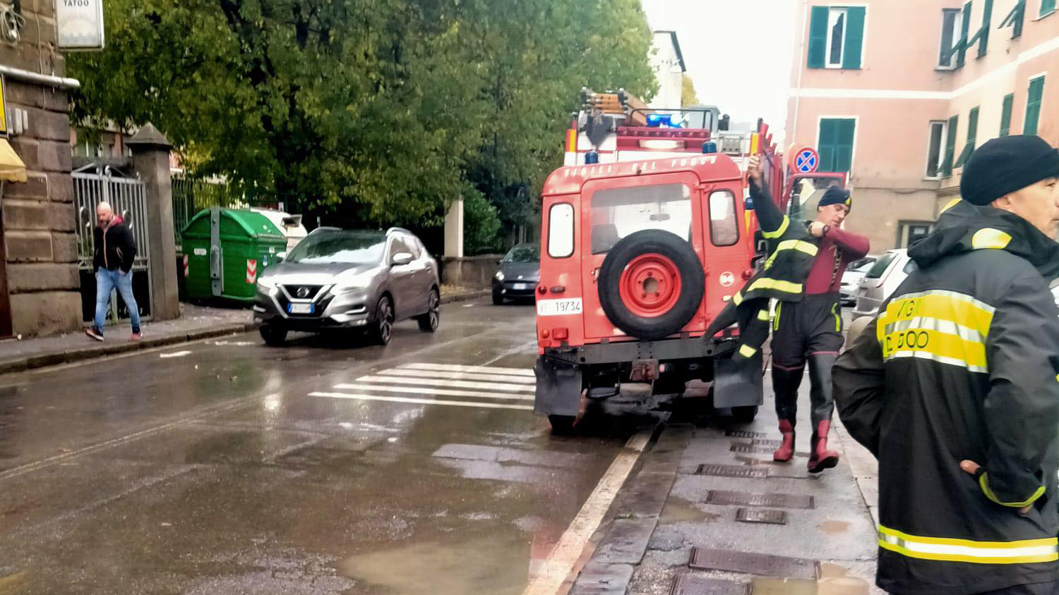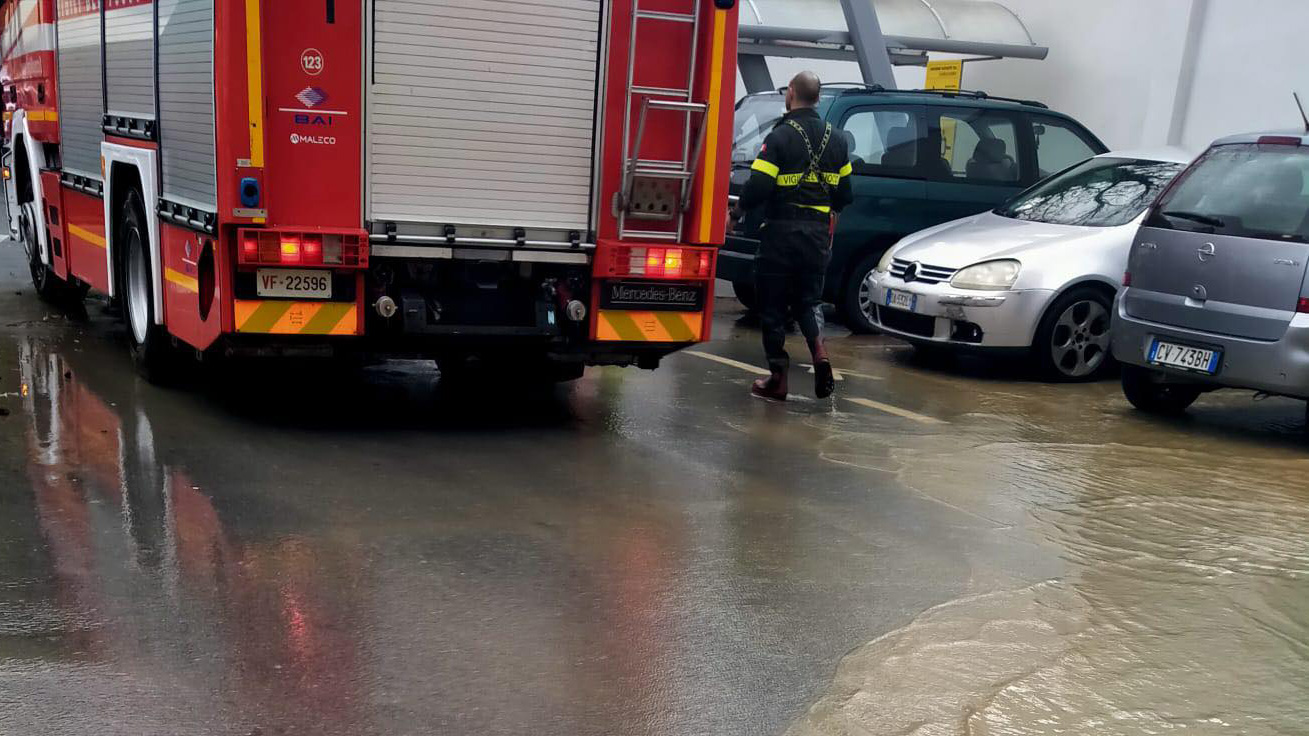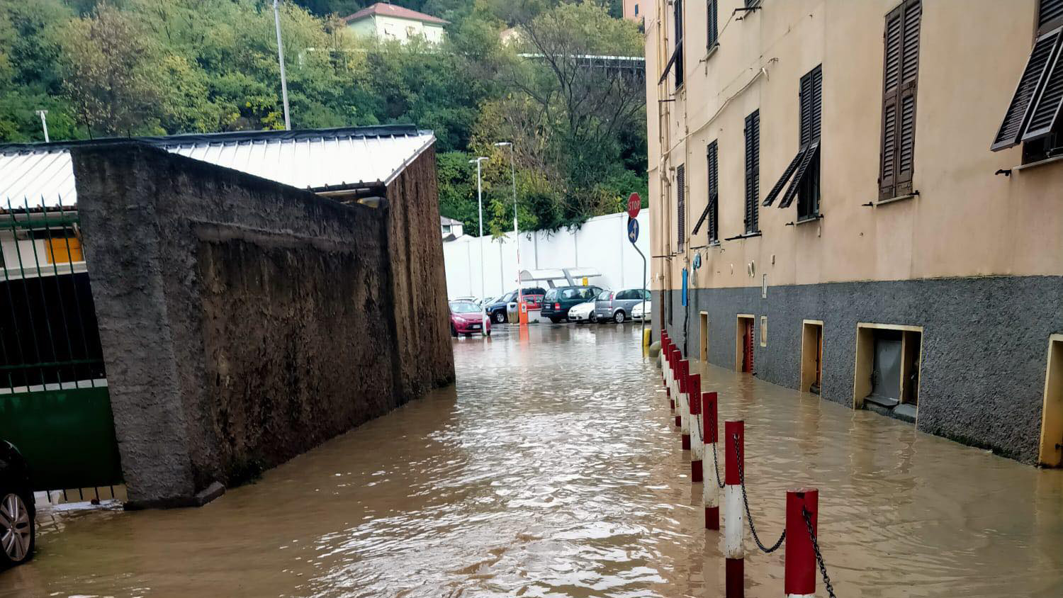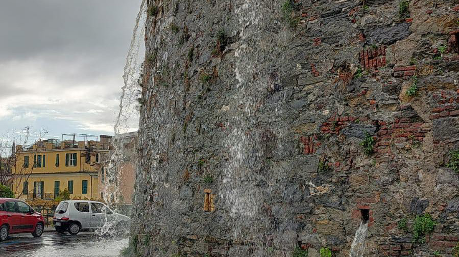 Via Teglia è diventata un torrente marrone, per effetto dell'afflusso di acqua piovana dalle vie laterali in discesa. Vetture private e autobus sono state costrette a procedere con particolare cautela.