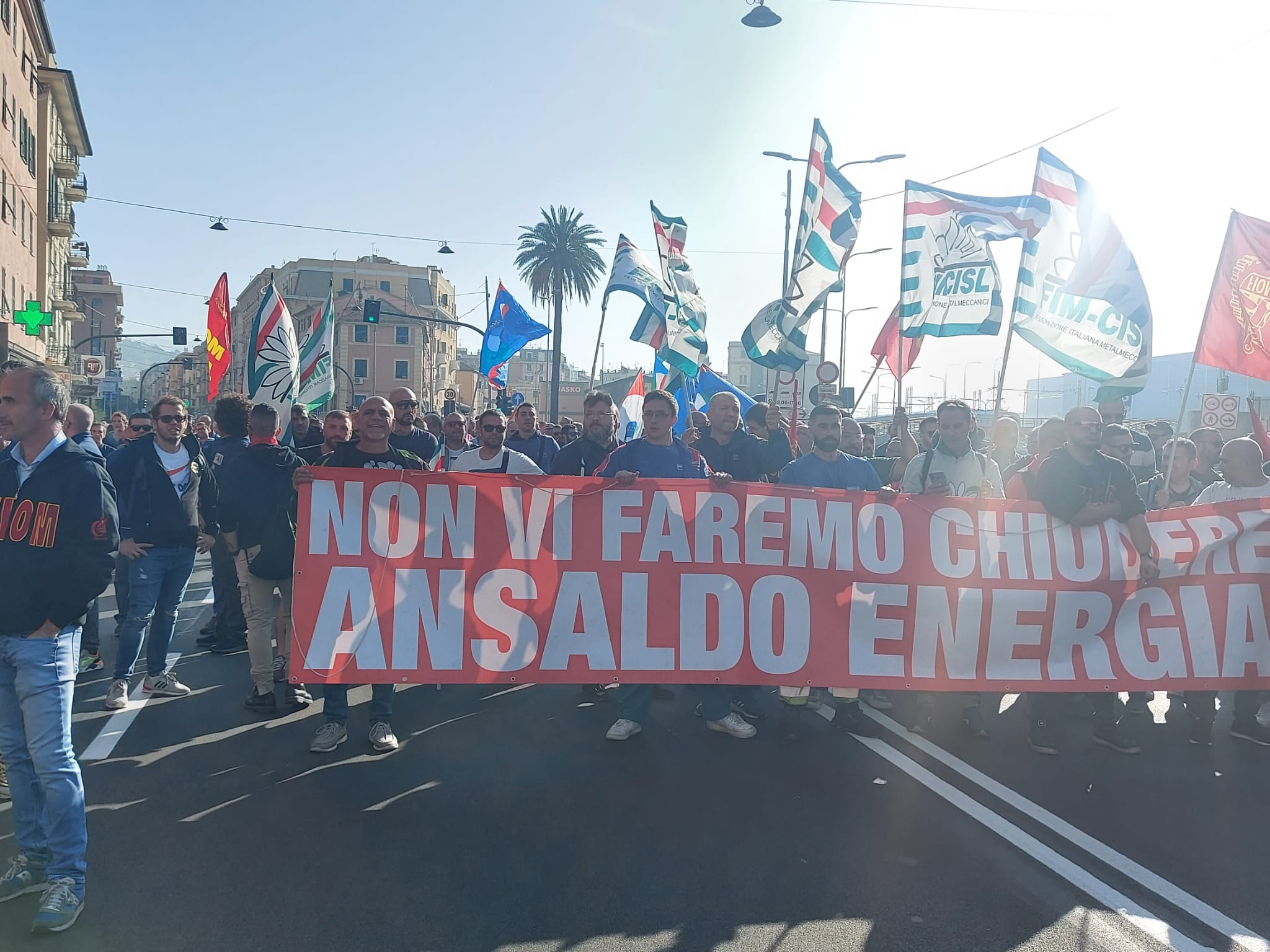 È l'epilogo di una mattinata che vede protagonisti i lavoratori di Ansaldo Energia iniziata con un picchetto e presidio a partire dalle 5,30 davanti alla sede genovese dell'azienda, in via Lorenzi a Campi e poi la partenza del corteo, poco dopo le 9, proprio lo stesso orario in cui è iniziato in Regione l'incontro tra il governatore Giovanni Toti e le rappresentanze sindacali dell'azienda. È iniziata così la seconda giornata di sciopero dei lavoratori di Ansaldo Energia ancora in attesa di buone nuove sulla ricapitalizzazione aziendale.