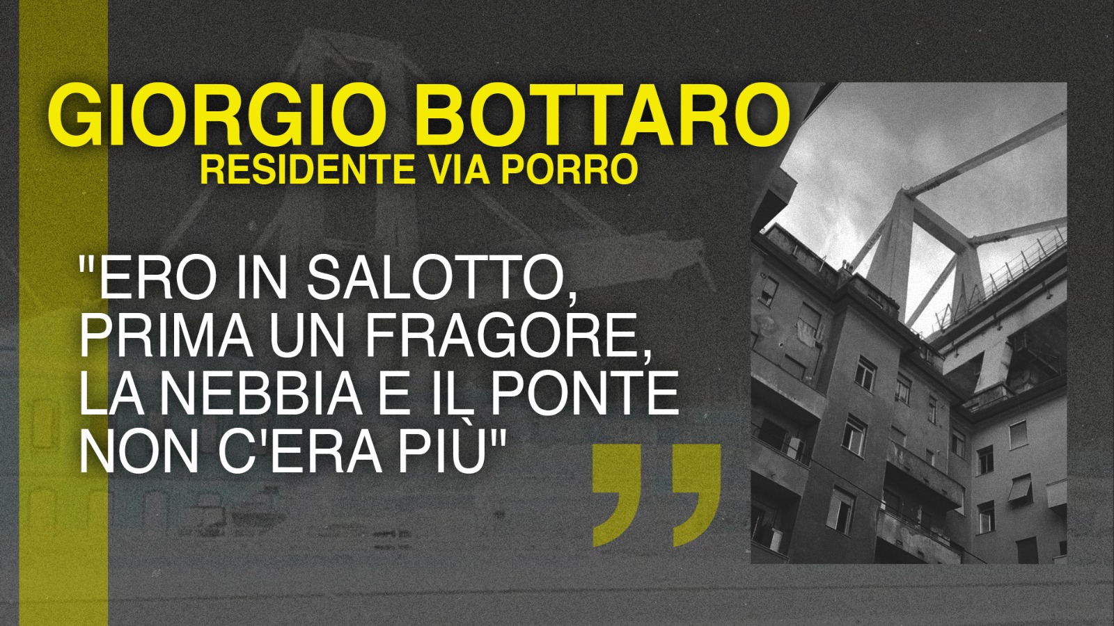 Poi è la volta di Giorgio Bottaro residente di via Porro: "Mi trovavo in casa a centro metri dal pilone, ho sentito un fragore. Prima c'è stata una 'nebbia', poi dopo un minuto non c'era più il ponte ma solo un moncone, una situazione surreale. Per otto mesi (ho avuto) attacchi d'ansia e di insonnia, anche sul lavoro, poi i disagi per le chiusure e il cantiere per due o tre anni (Leggi qui).