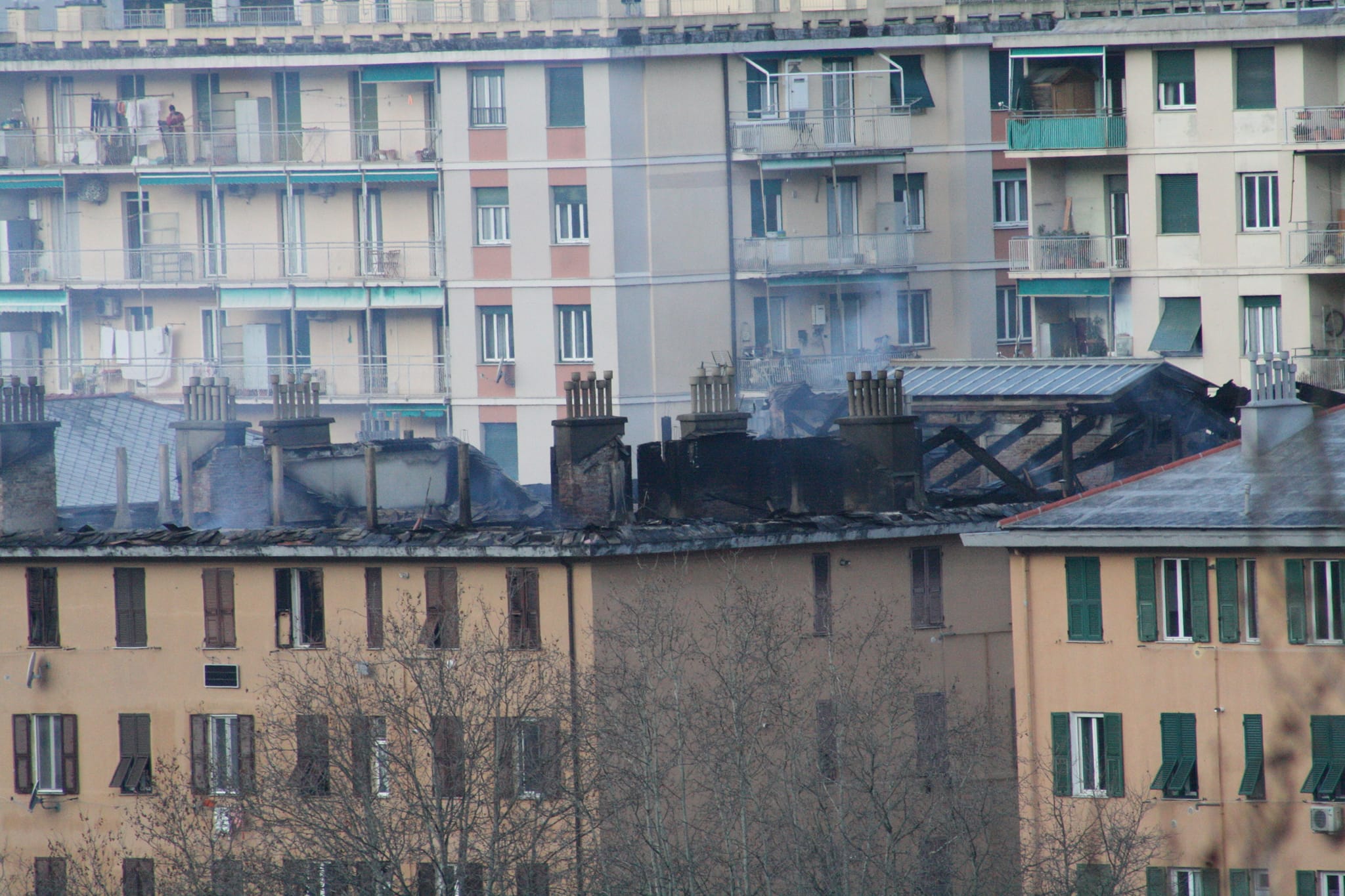 L'intera Valbisagno e anche in buona parte della città sono state invase da una grande nuvola di fumo, che a momenti è sembrata come una nebbia. Nell'aria l'odore acre dell'incendio. Poi il rogo è stato spento. "Forse un corto circuito - racconta a La Presse Vincenzo Omodio, 55 anni, che vive dal 1999 con la moglie e il figlio all'ultimo piano del palazzo divorato dal rogo - abbiamo perso tutto. C'erano dei lavori sul tetto, non sappiamo cosa possa essere successo, solo che ad un certo punto casa e scale erano invase dal fumo, abbiamo chiamato i vigili del fuoco, il tetto è crollato. È già tanto essere usciti vivi dal palazzo".