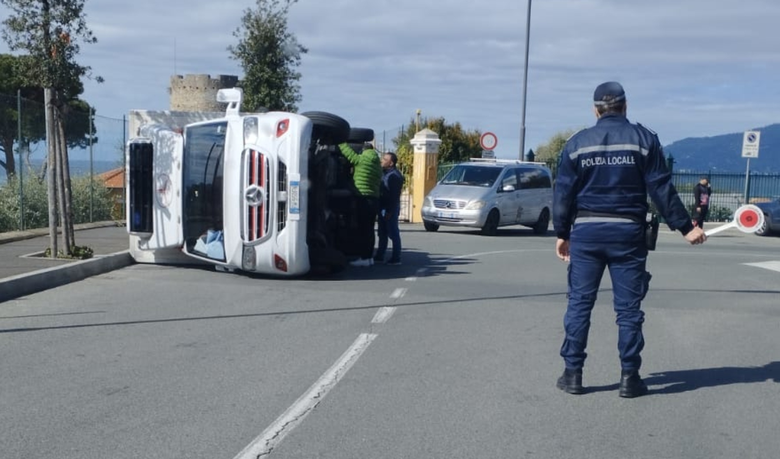Sul luogo dell'incidente è giunta la polizia locale per dirigere il traffico e i vigili del fuoco e un carroattrezzi per rimettere il mezzo in posizione e portarlo via.