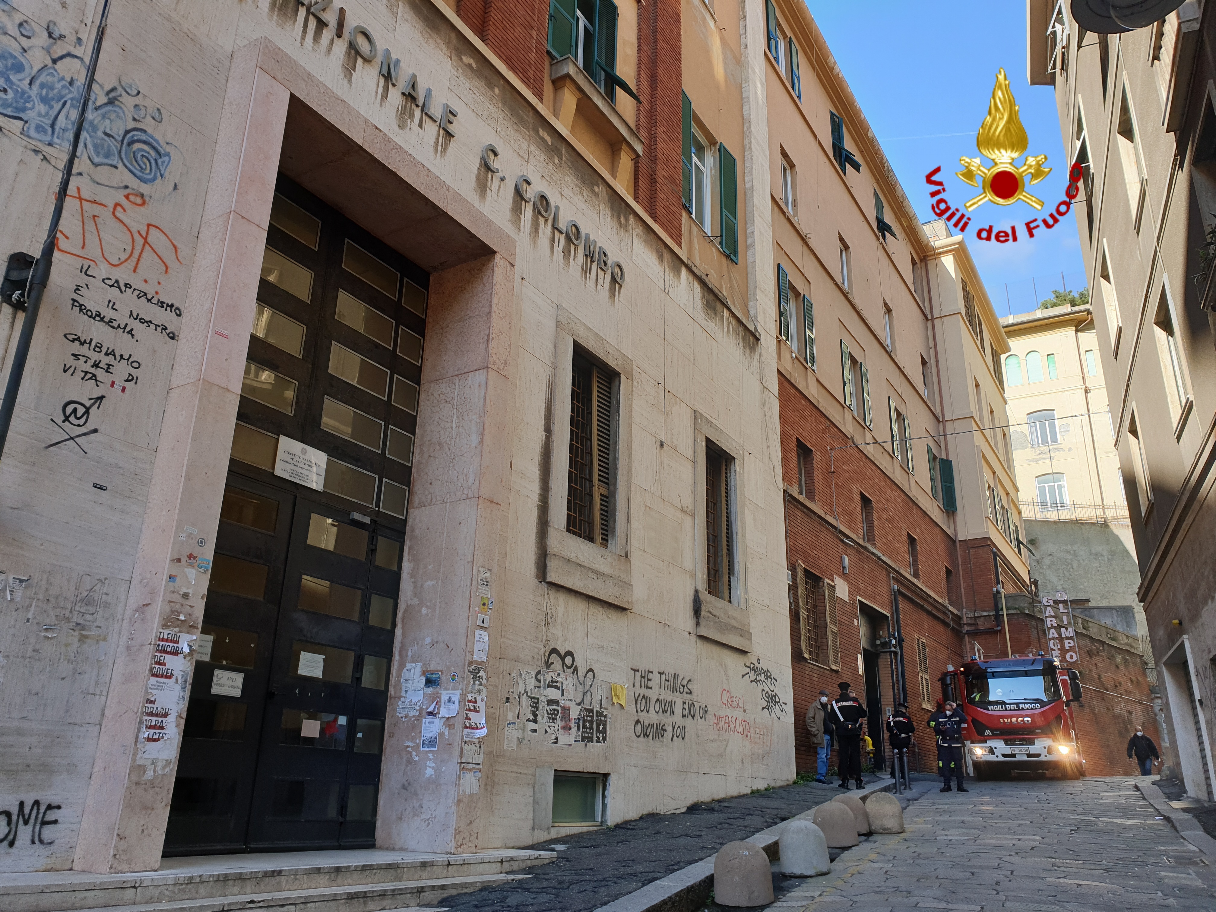 GENOVA - Paura questa mattina al liceo Cristoforo Colombo, nei pressi di piazza della Nunziata, nel centro del capoluogo ligure. In un magazzino sotto il campetto della scuola è infatti scoppiato un incendio, per cause ancora ignote. Gli studenti sono stati evacuati dalla scuola in attesa dell'intervento dei vigili del fuoco.