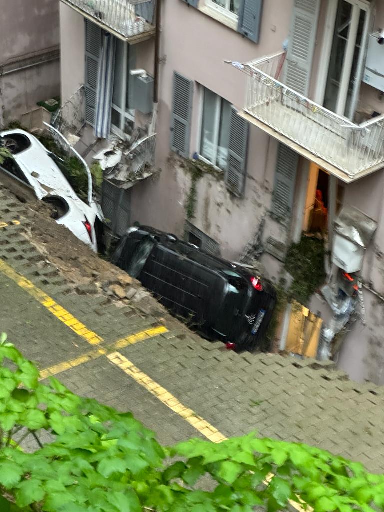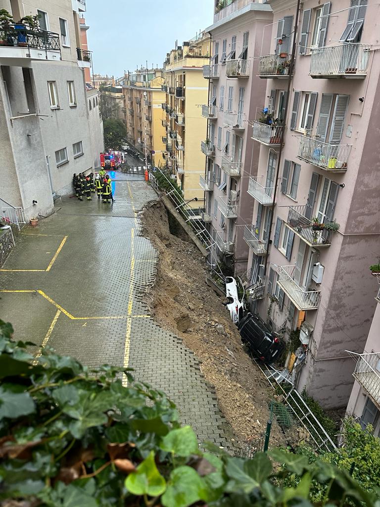 A crollare è stato il parcheggio privato di un palazzo di via Cabrini, che ha trascinato via anche due auto e una moto posteggiate, facendole precipitare tra la strada e il palazzo. La frana ha invaso sei giardini. Sul posto i vigili del fuoco di Genova, carabinieri e la polizia locale che in un primo momento ha chiuso la strada, poi riaperta attorno alle 19,20.
