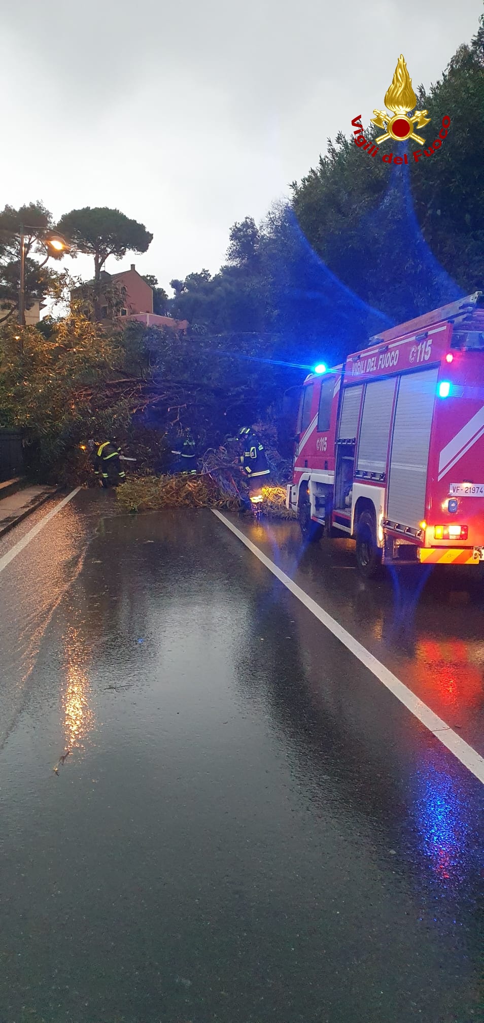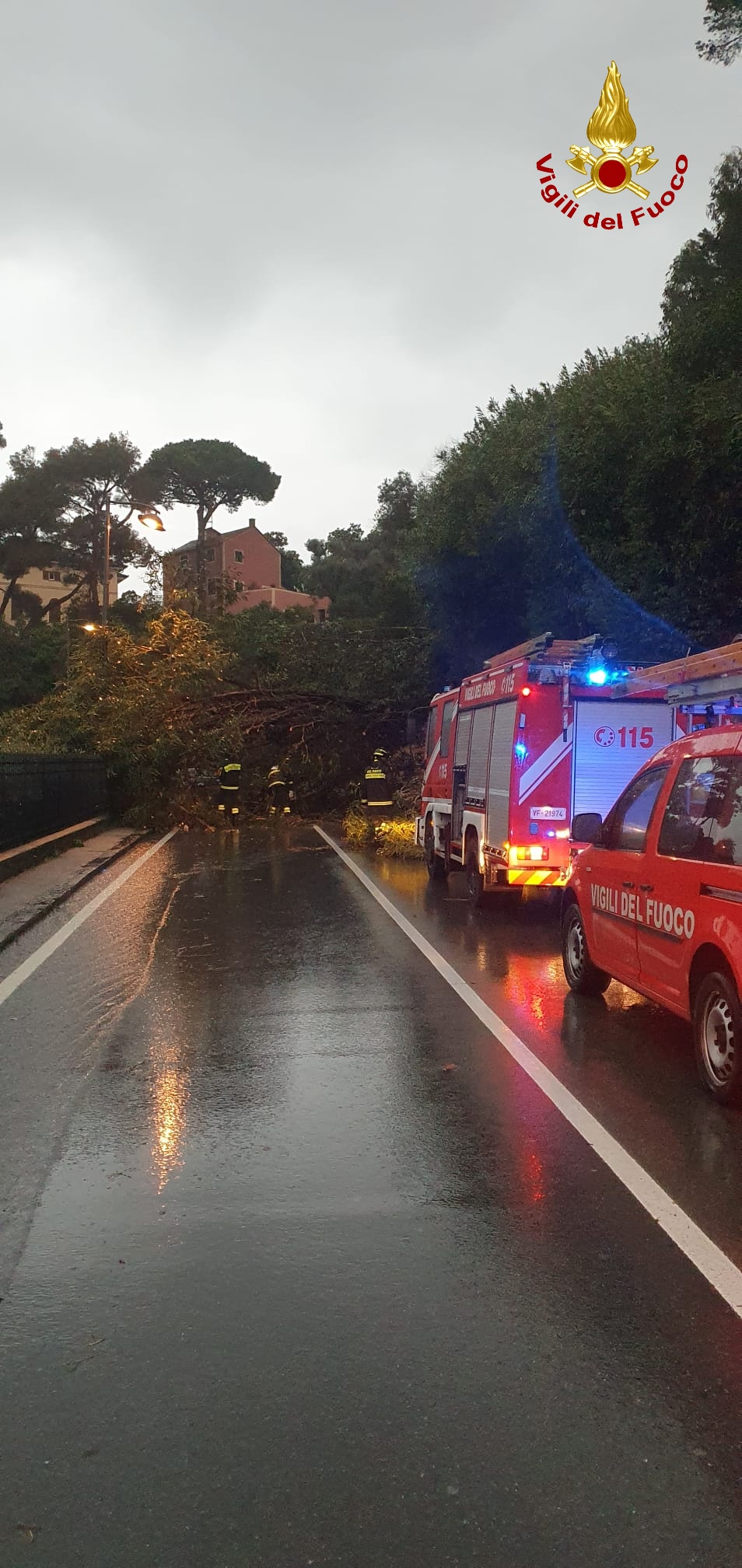 LIGURIA - Notte di lavoro per i vigili del fuoco della Liguria. Pioggia e vento nella notte hanno fatto registrare decine di alberi caduti e diversi smottamenti che ora stanno creando grossi problemi alla viabilità.