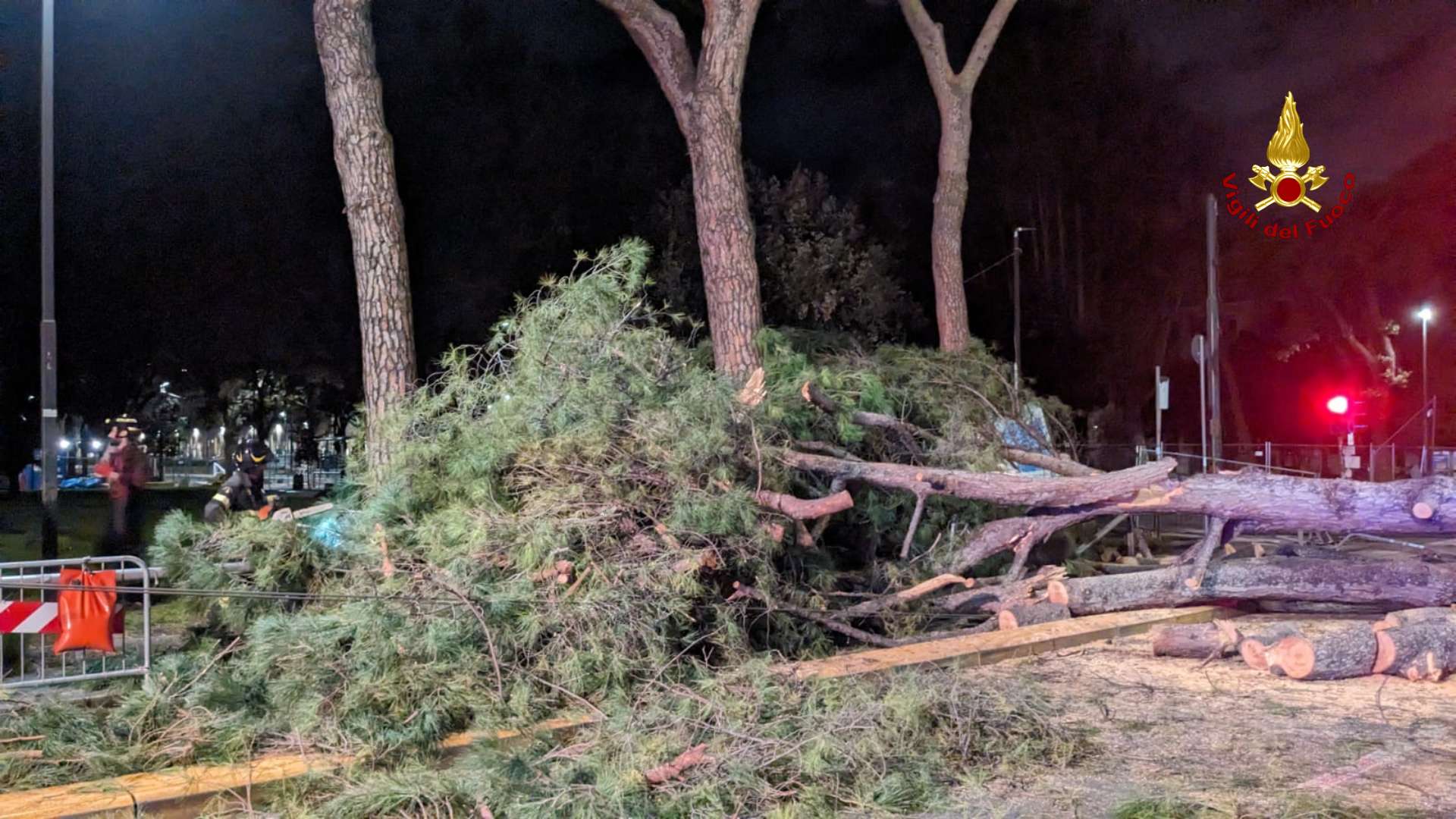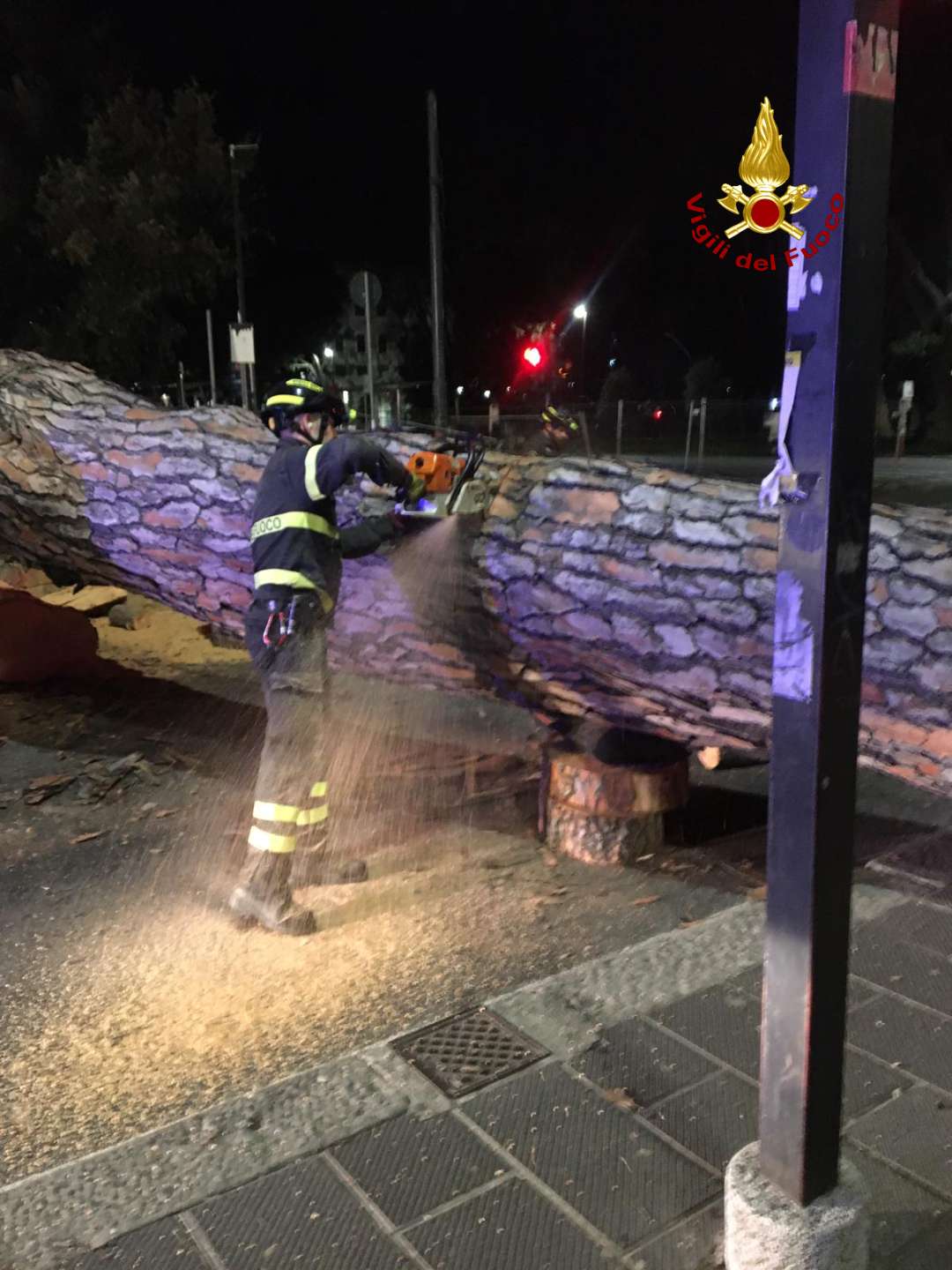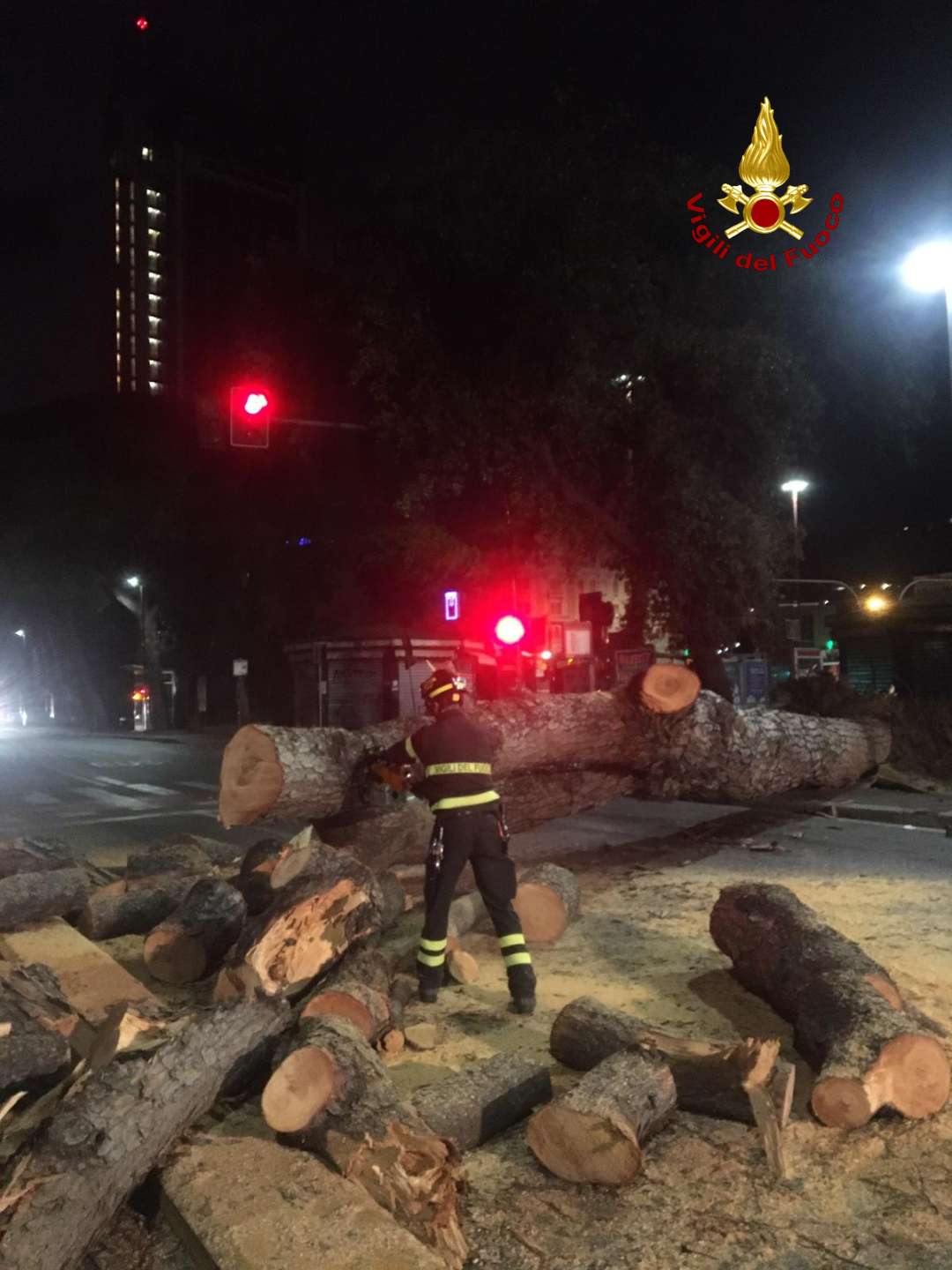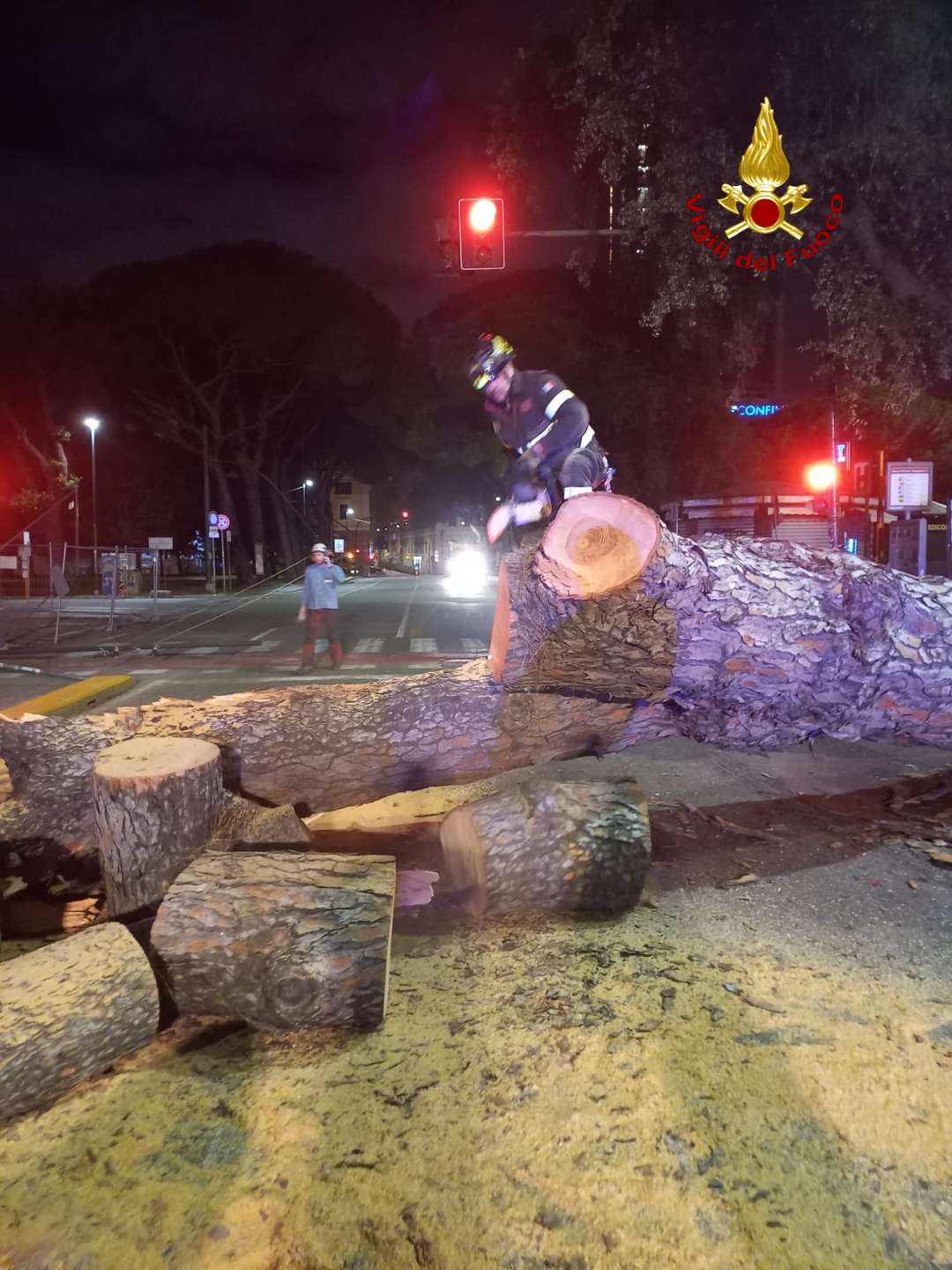 Per tutta la mattina sono andati avanti i lavori di rimozione dell'albero e di tutte le sue parti.