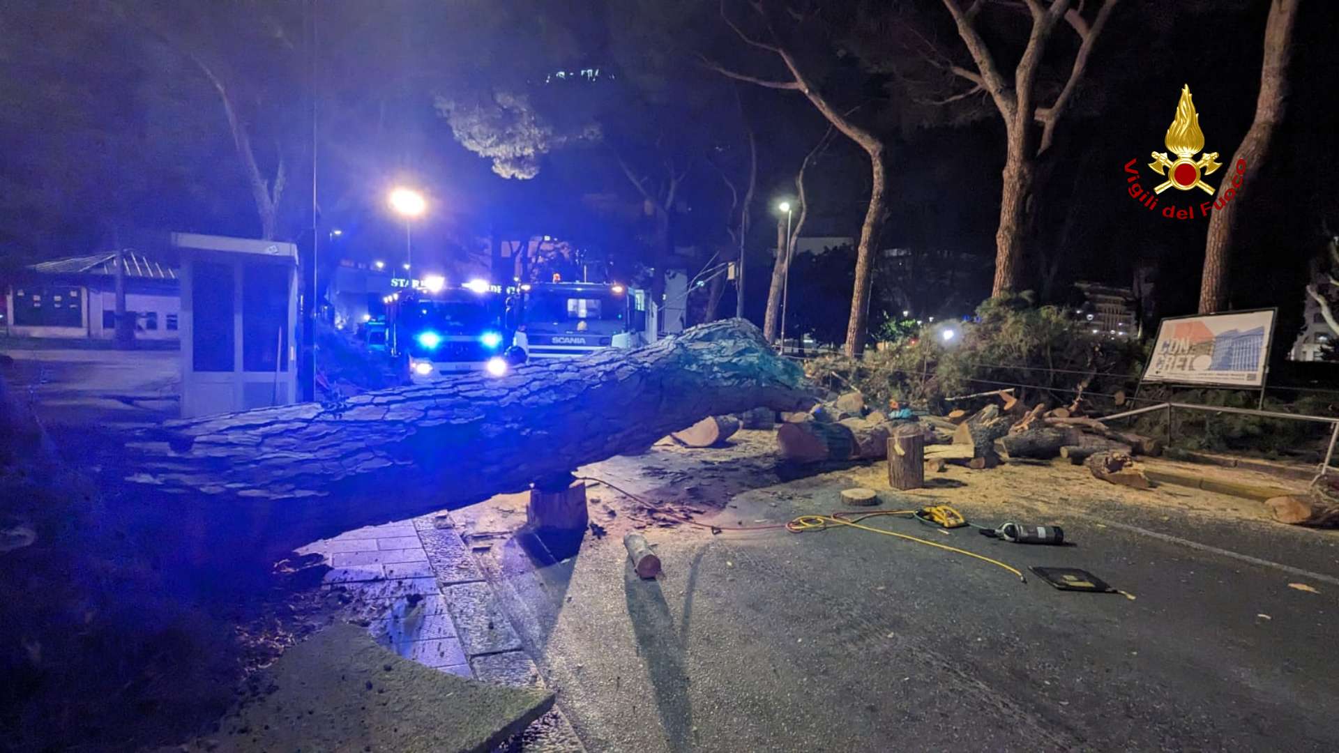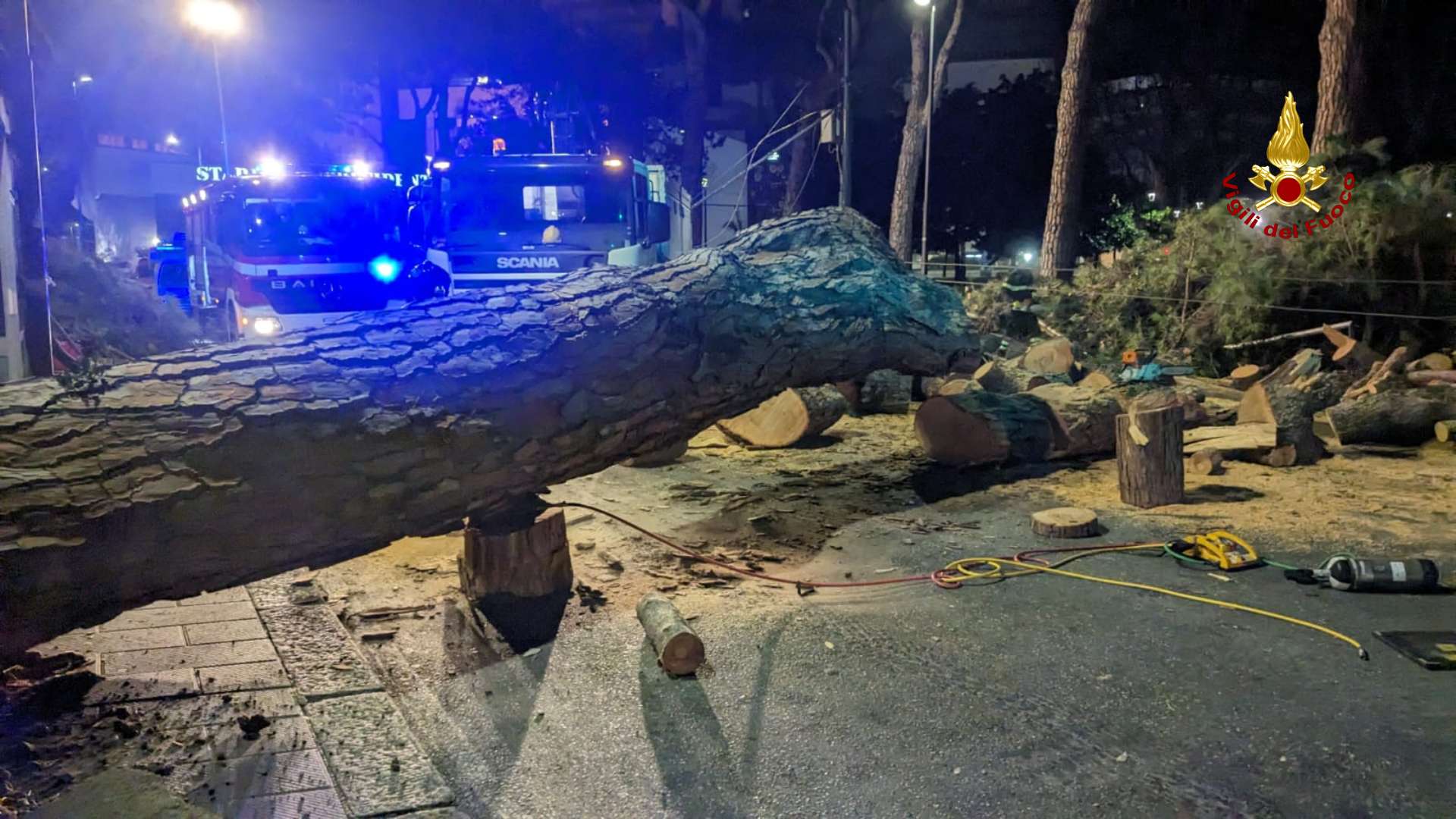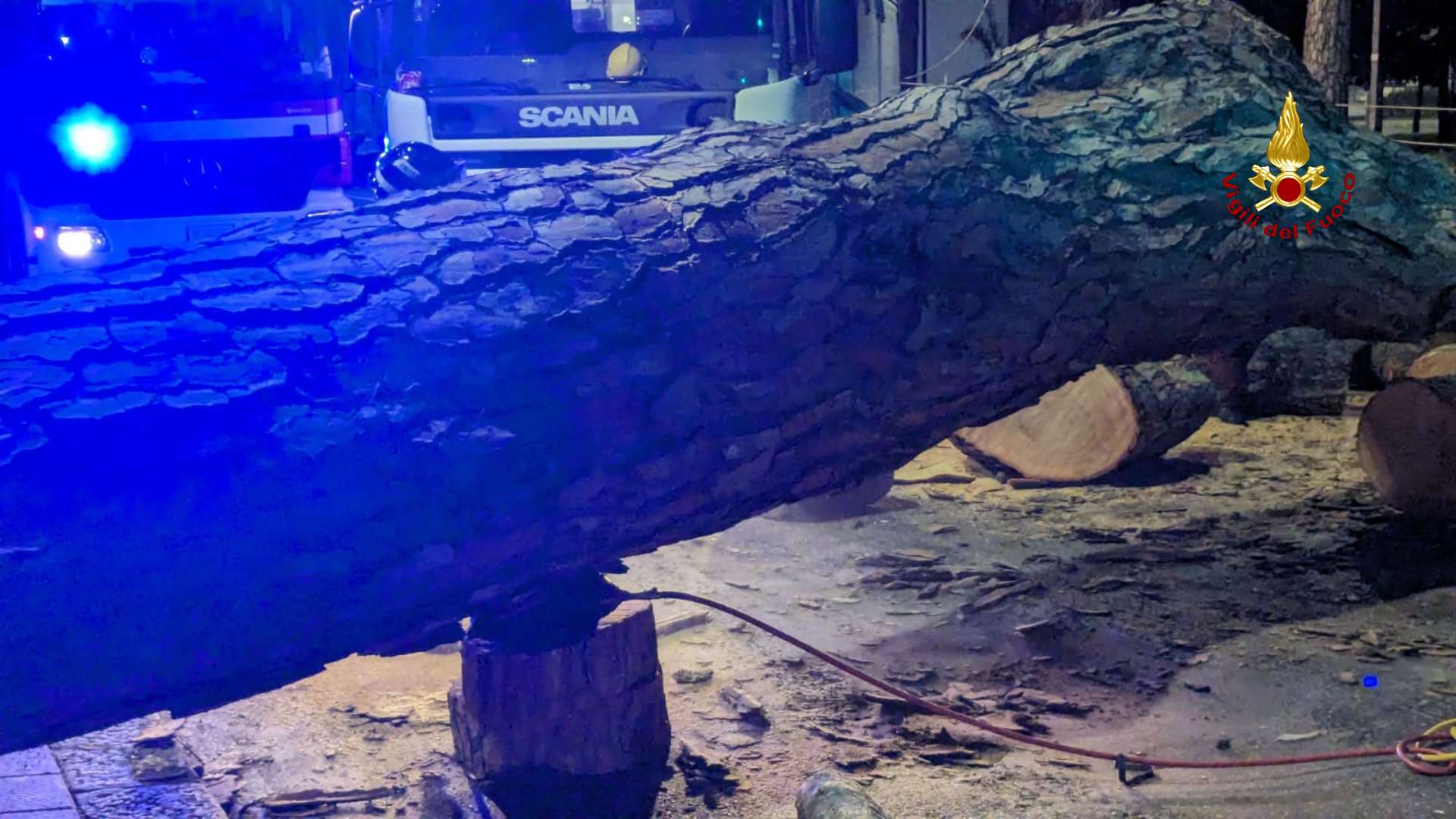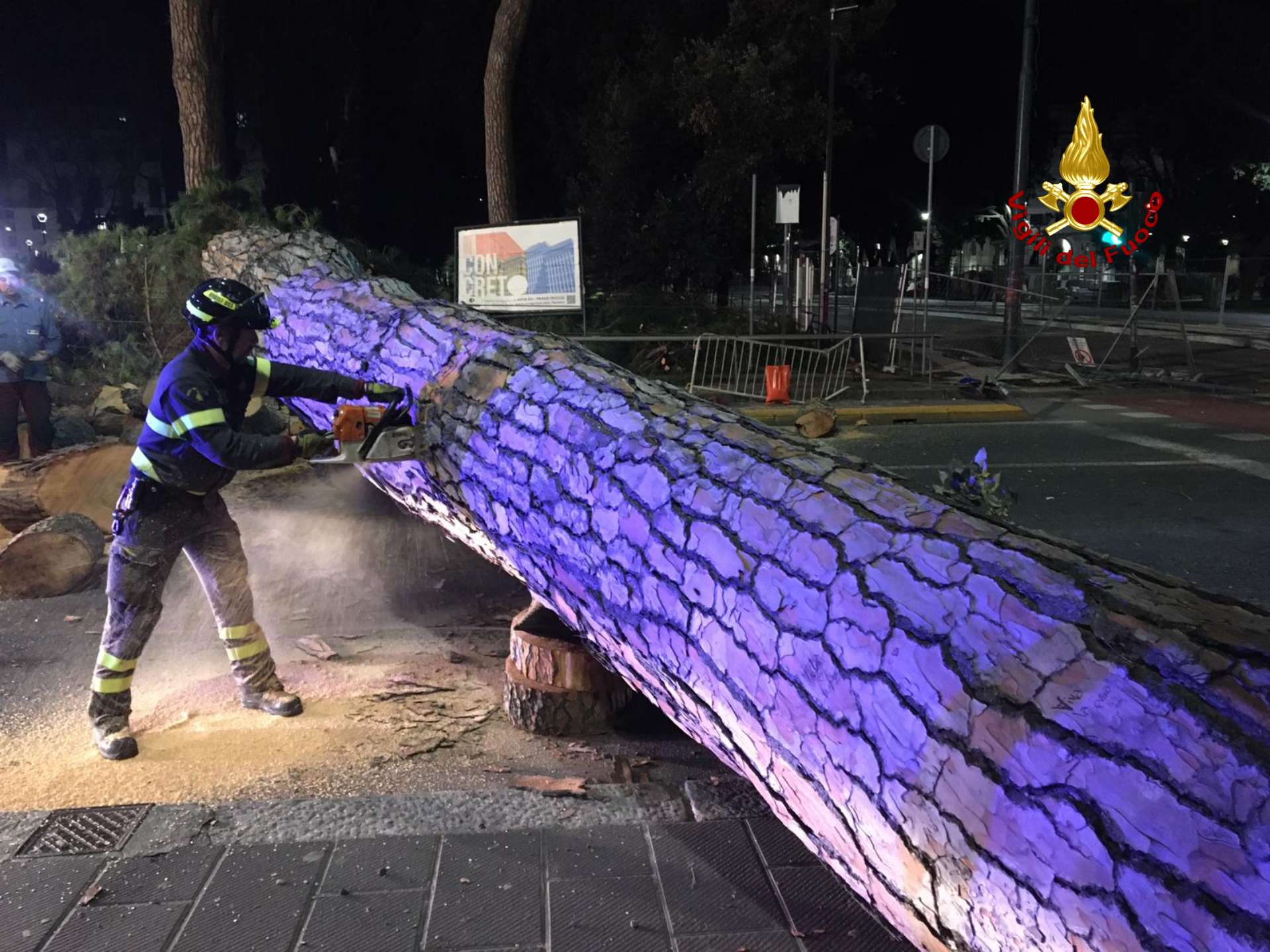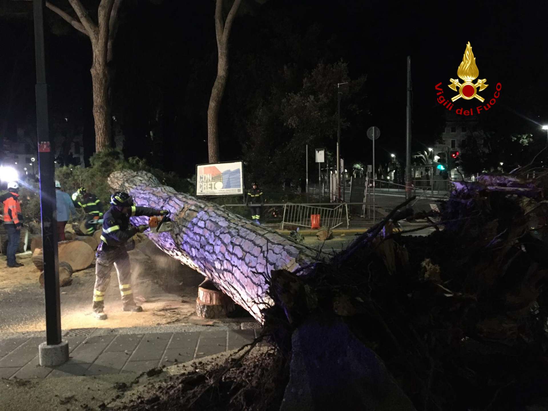 Per tutta la mattina sono andati avanti i lavori di rimozione dell'albero e di tutte le sue parti.