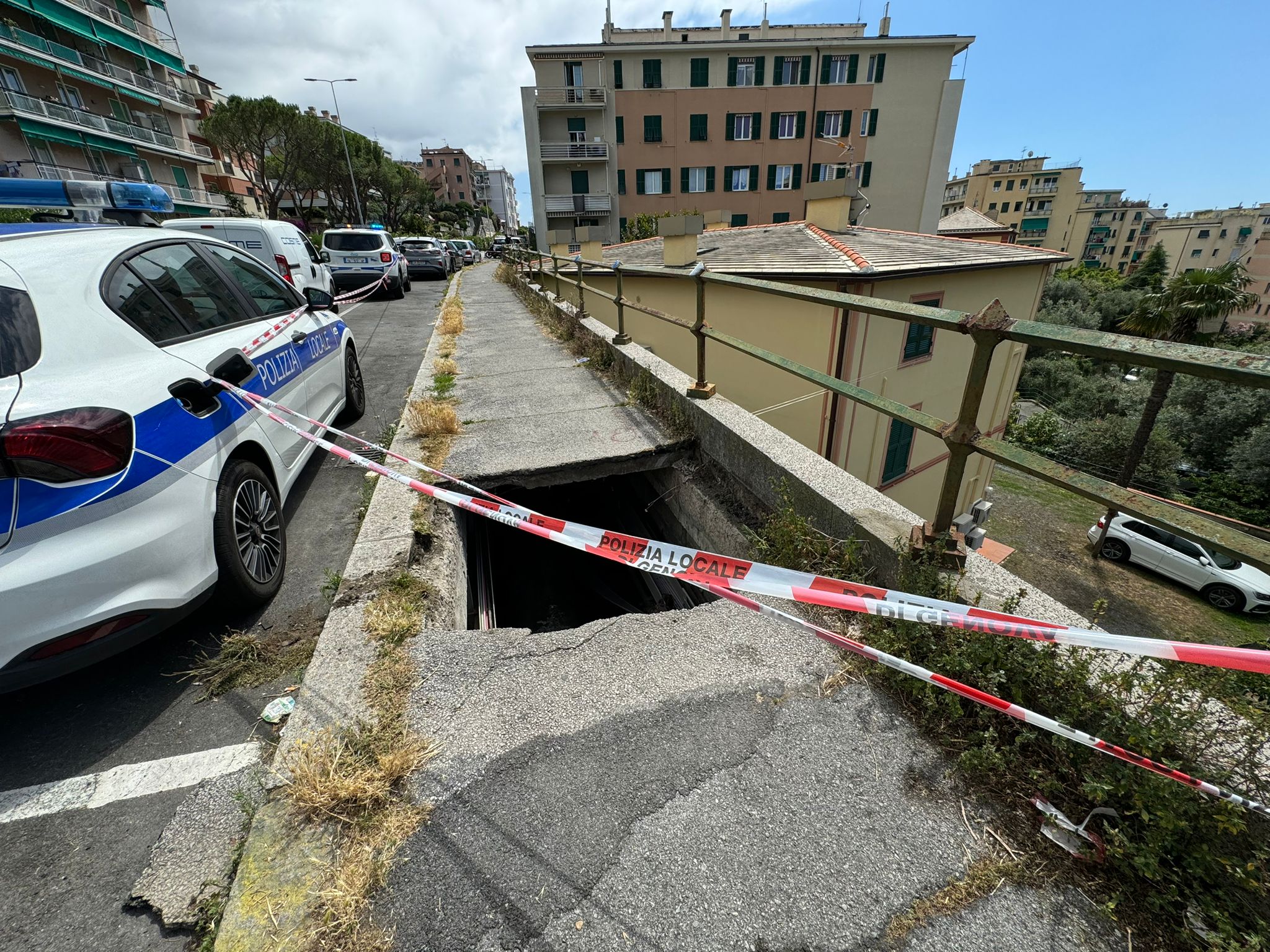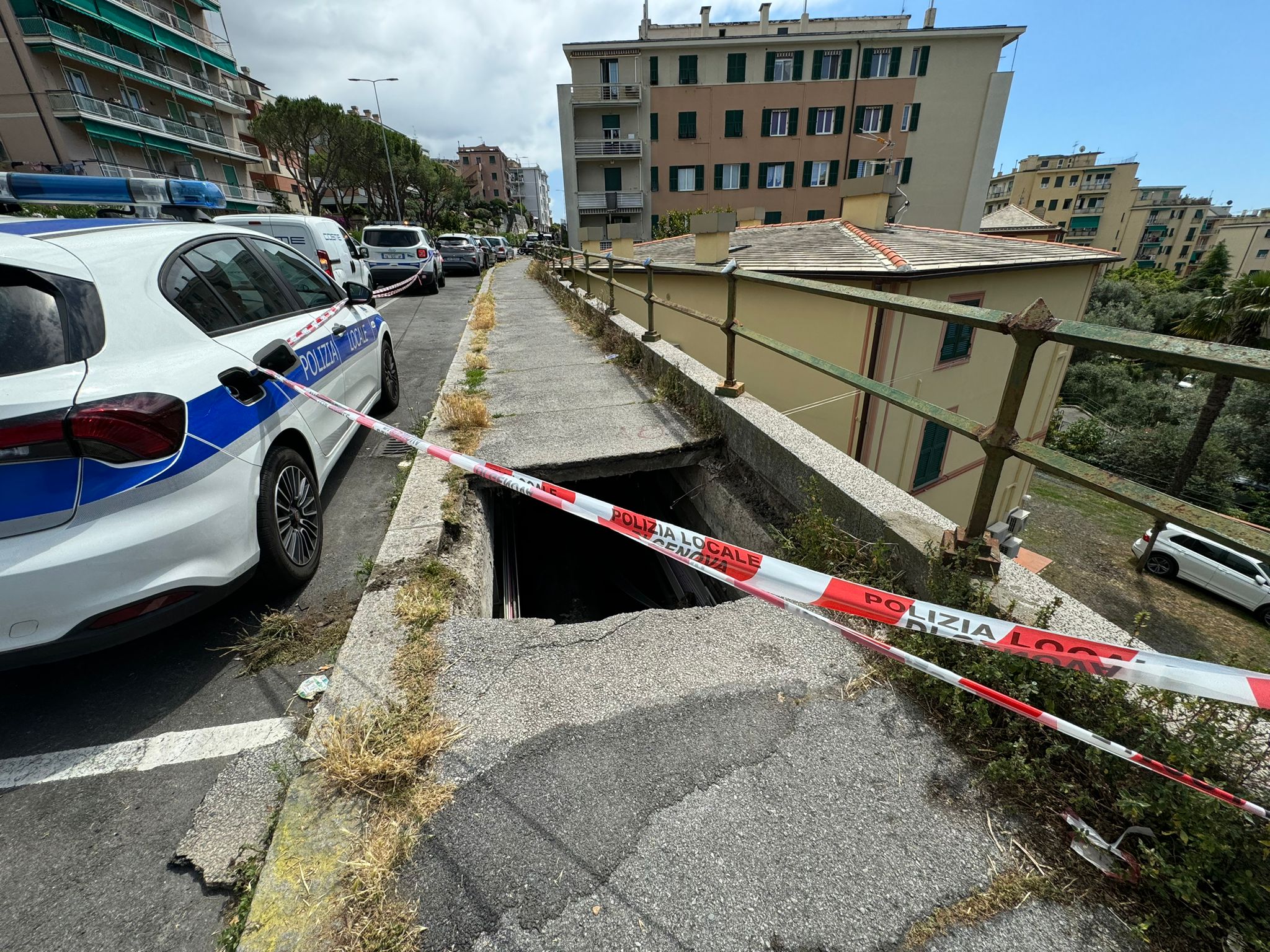 Il comune di Genova ha informato che dopo le prime operazioni a cura del personale di pronto intervento di Aster insieme alla Polizia Locale, si è provveduto al transennamento del marciapiedi per una lunghezza lineare di 50 metri, nel tratto compreso tra l'intersezione di corso Europa con via Monte Moro di Quinto fino allo spigolo di ponente del civico 3 di via Lorenzo Ghiglini. Si legge nella nota, che riportiamo di seguito.