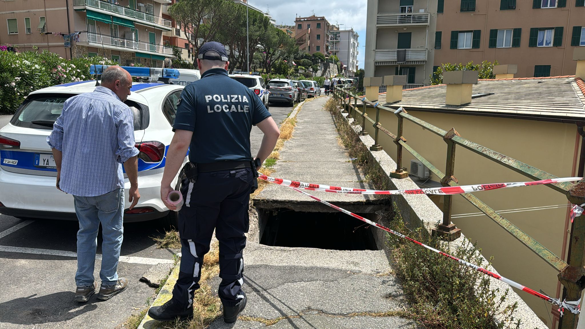 Non si sono registrati danni alle tubazioni dell'acqua e alla fibra ottica, nonostante la caduta interna dell'asfalto. Alcuni passanti hanno lamentato una situazione, alla vista, pericolosa, con un avvallamento vistoso del pezzo di marciapiede ceduto. "La situazione non è ottimale, abbiamo percorso un certo tratto sotto il marciapiede, sia a ponente che a levante ed è necessario interdire la zona di circa 50 metri - spiega a Primocanale Luca Filograna, responsabile Settore Strade e Segnaletica Aster -, per la fase a tutela del pubblico transito si dovrà interdire. Per quanto riguarda le utenze non ci sono danni da segnalare e per quanto riguarda la tempistica di ripristino sarà il prima possibile".