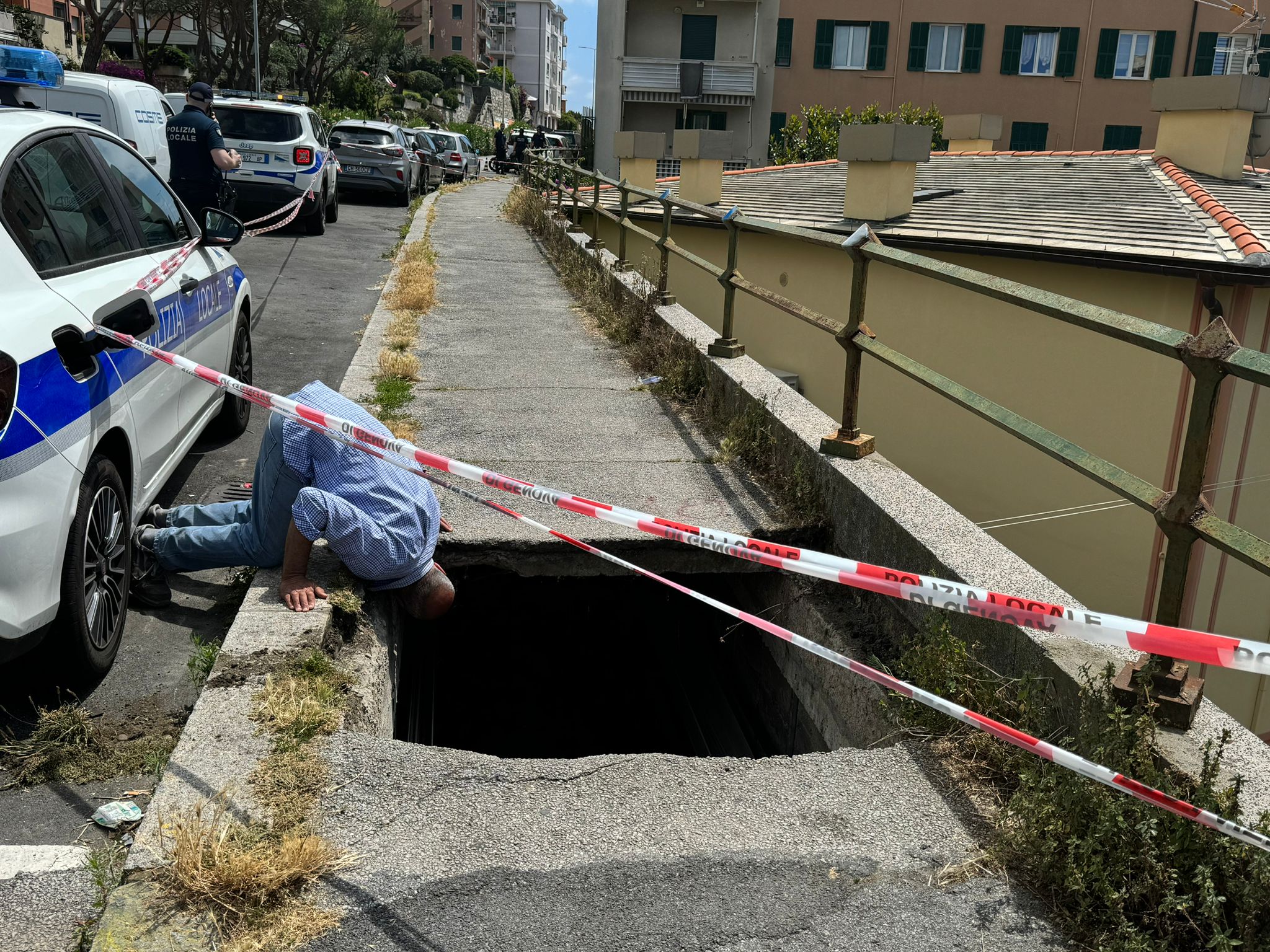 "Come prima cosa, ci dispiace che il crollo improvviso del marciapiedi abbia coinvolto delle persone e, in particolare, una nonna con la nipotina, a cui siamo vicini e che abbiamo sentito telefonicamente per sincerarci delle loro condizioni di salute – dichiara l'assessore comunale alle Manutenzioni Mauro Avvenente –. L'incidente è da addebitare alla vetustà dei manufatti sottostanti alla strada di corso Europa, risalenti anch'essi a circa 60 anni fa. Le ispezioni in corso in queste ore saranno seguite da nuovi approfondimenti che consentiranno di valutare l'entità dei danni e di progettare un importante intervento di ripristino, attraverso il meccanismo dei lavori in somma urgenza, per cui ringrazio il vicesindaco e assessore Pietro Piciocchi. L'amministrazione è concentrata al massimo su questa problematica, che intendiamo risolvere al più presto non solo nell'area impattata direttamente dal crollo, ma su tutto il cunicolo che corre da corso Europa fino a Nervi".