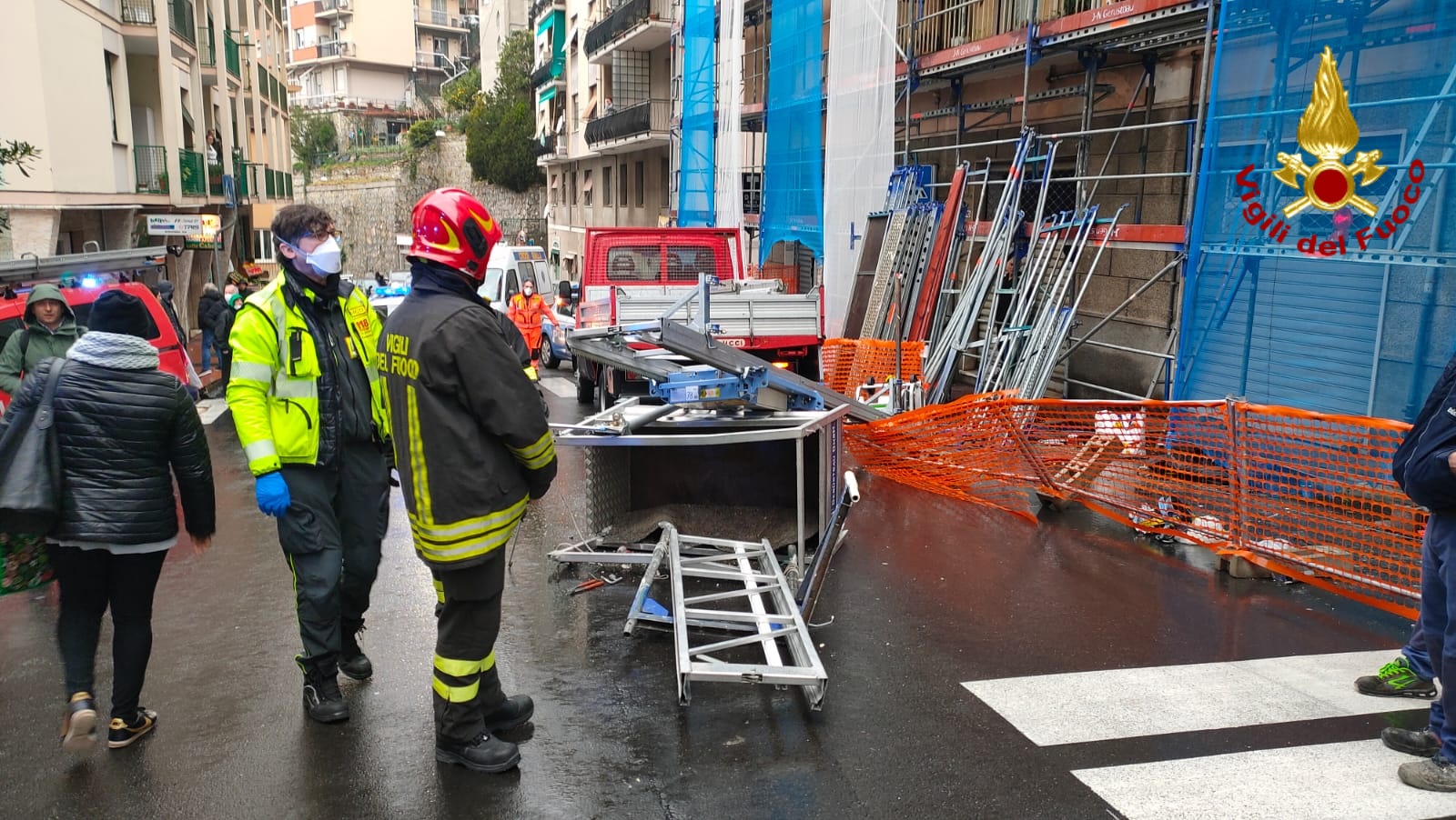 Sul posto immediato l'intervento del personale sanitario, dei vigili del fuoco e della polizia. La strada è stata chiusa al traffico il tempo necessario per accertare le condizioni delle persone coinvolte. Disagi al traffico con la zona delimitata. Poi una volta messa in sicurezza l'area e rimosse le parti finite lungo la carreggiata la strada è stata riaperta al traffico. Alla fine l'operario, un giovane macedone, non vuole parlare. Dice solo, a telecamere abbassate, che sta bene e non si è fatto nulla. E' andata bene. Poi è richiamato dagli agenti per rilasciare i dati e la testimonianza di quanto accaduto.
