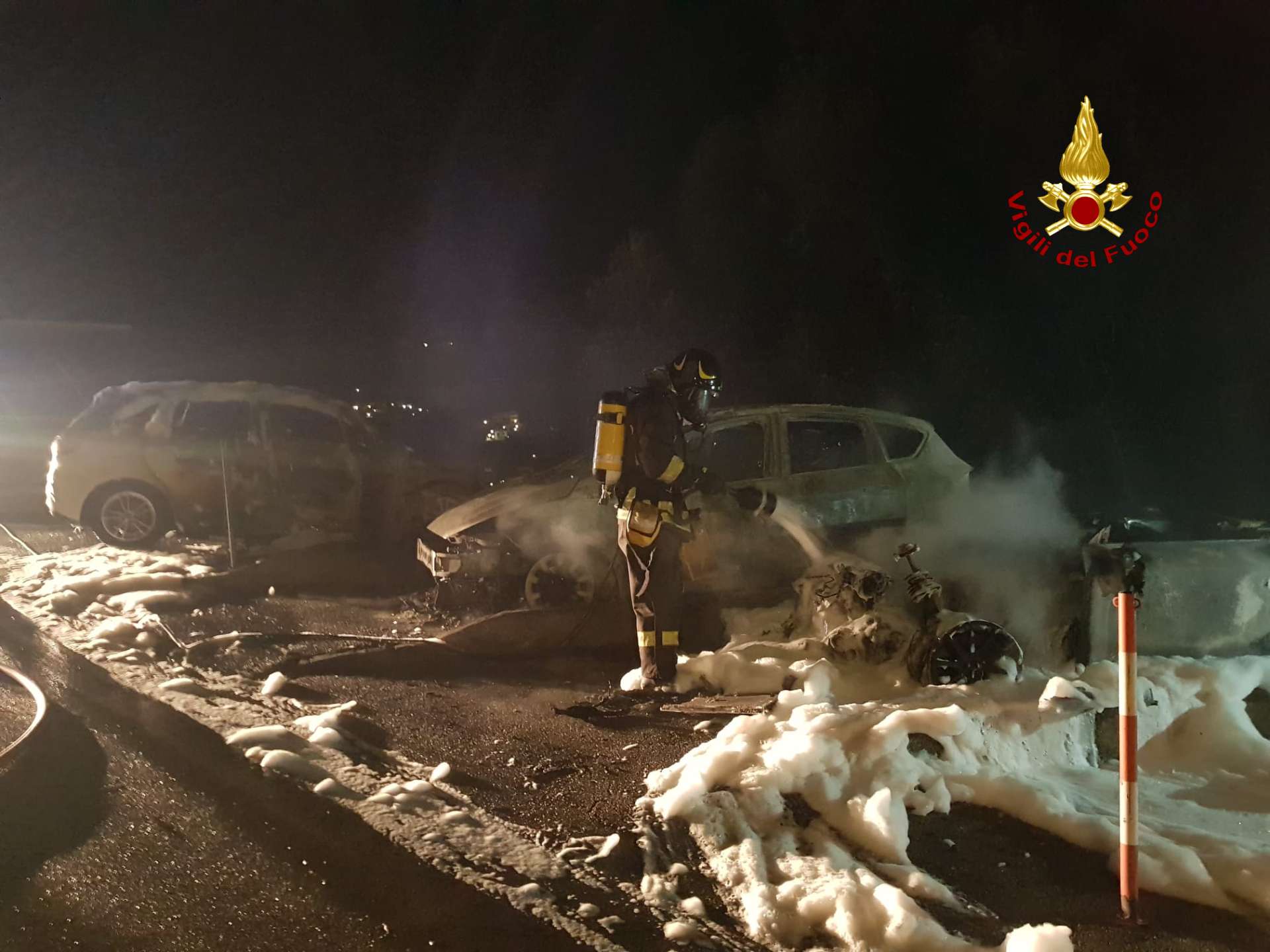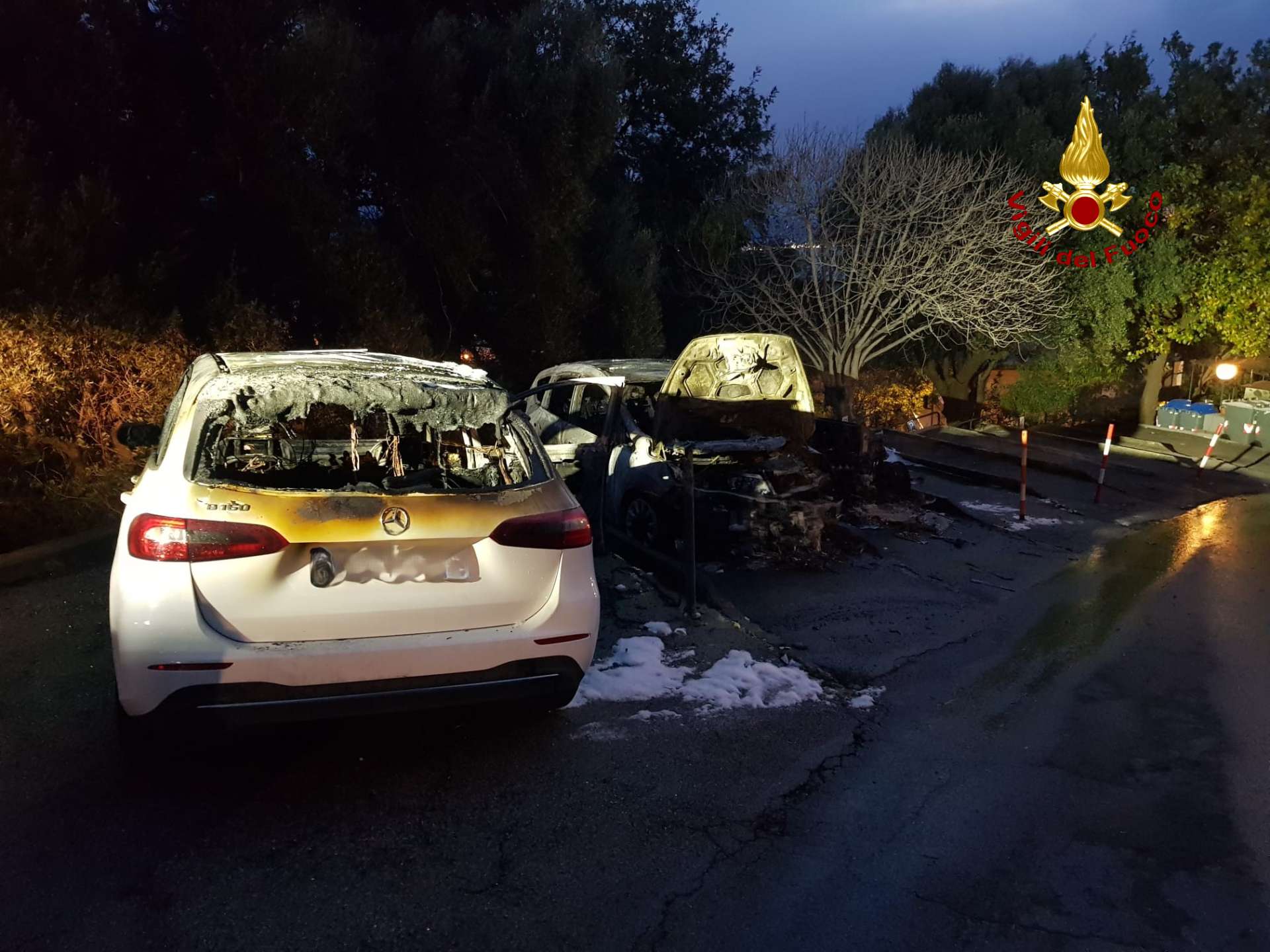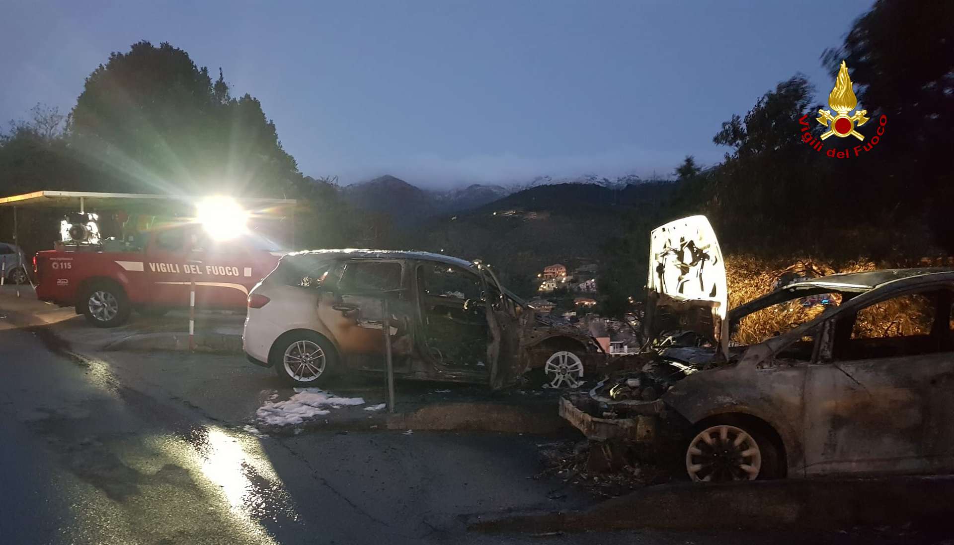 Tre auto e un motorino incendiati nella pineta di Arenzano: ipotesi dolosa