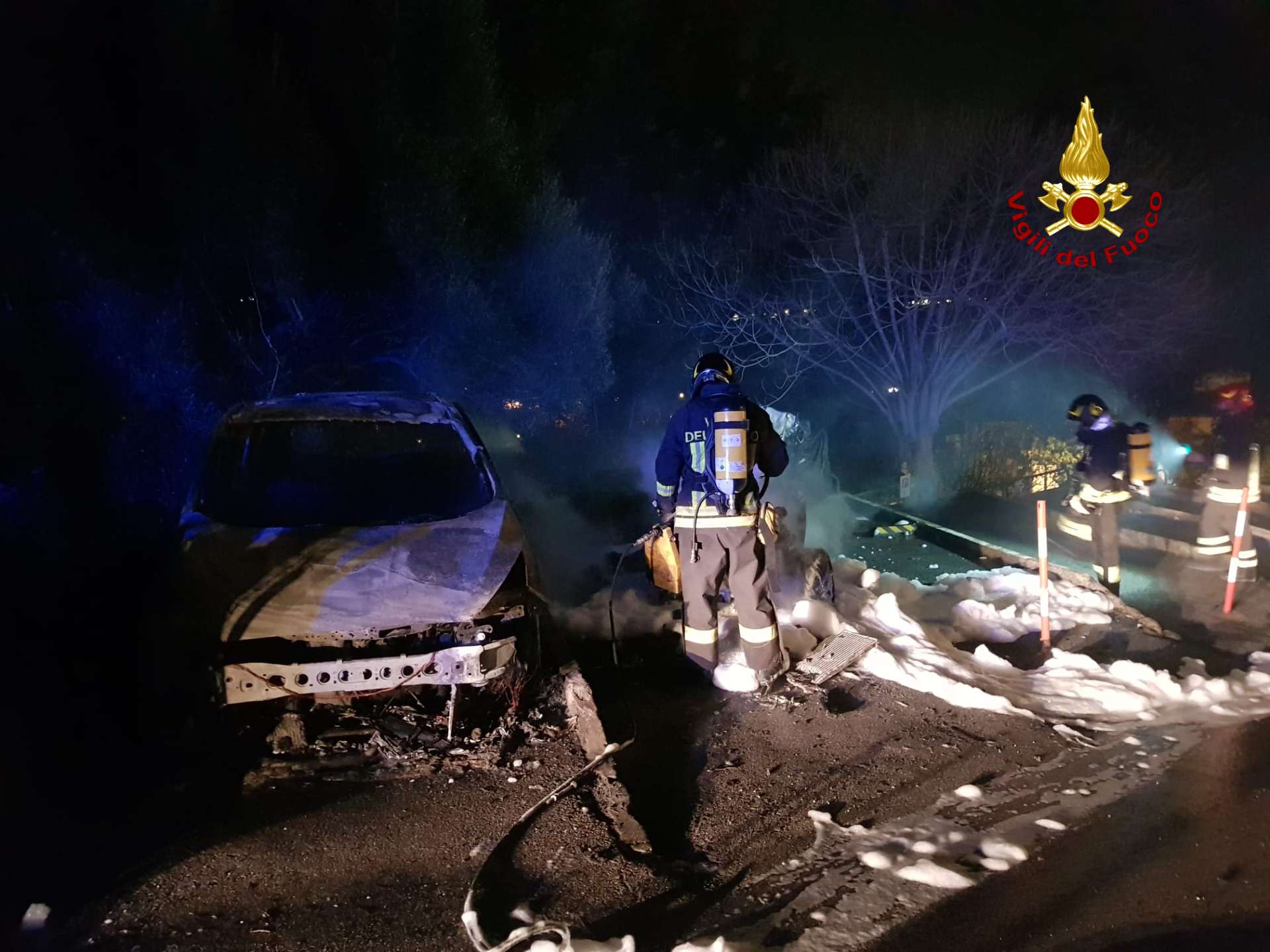 Vigili del fuoco di Genova al lavoro per spegnere incendio auto ad Arenzano