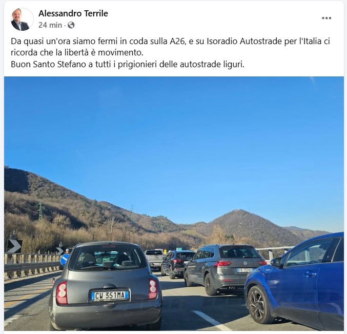 Almeno sei auto sono rimaste coinvolte in un incidente stradale avvenuto in A26 nel giorno di Santo Stefano. Il maxi tamponamento si è verificato tra Masone e Ovada, all'altezza del km 22, in direzione Gravellona Toce e ha causato lunghe code proprio all'ora di pranzo quando gli automobilisti stavano raggiungendo i propri cari per i festeggiamenti del 26 dicembre.