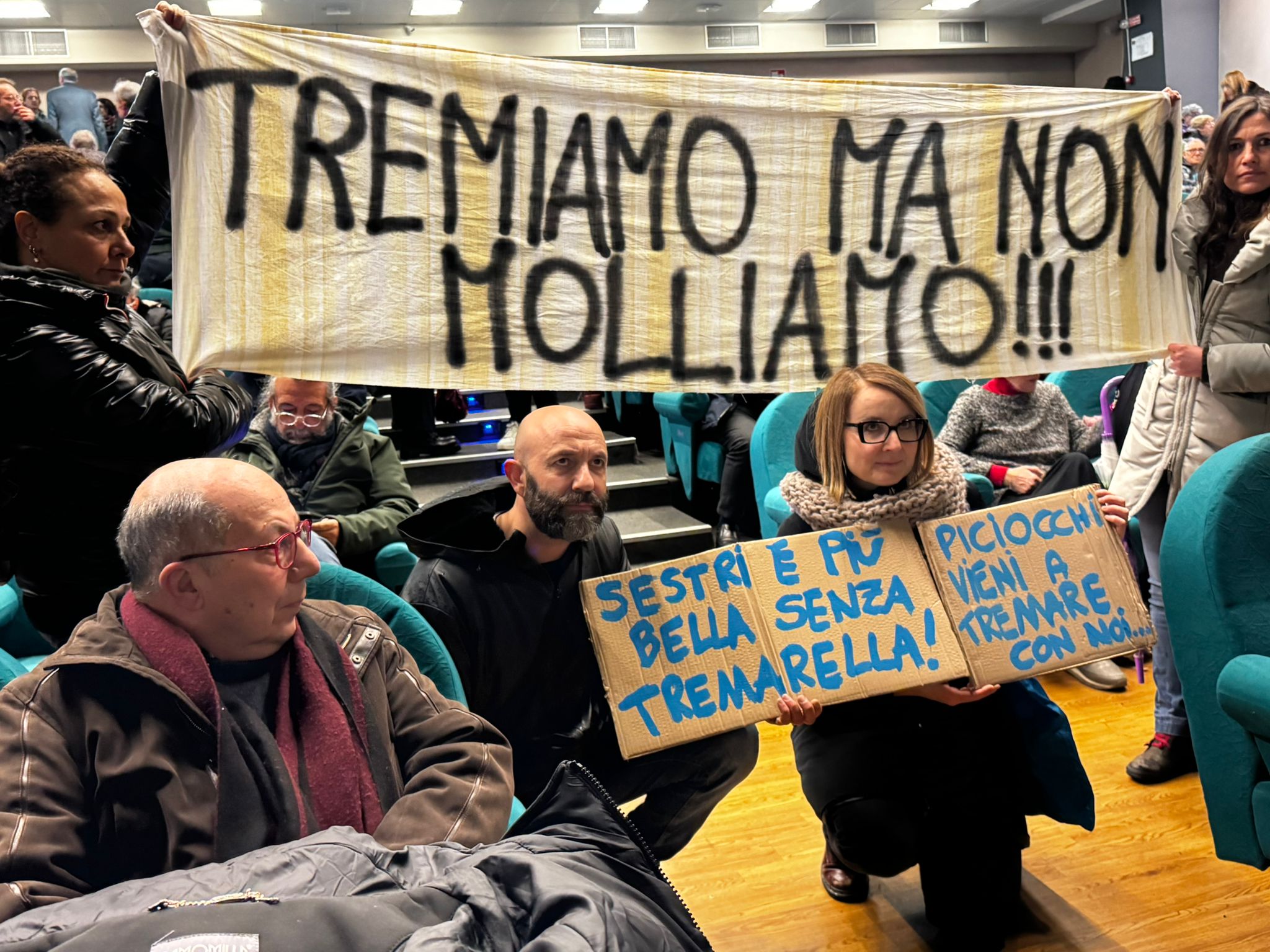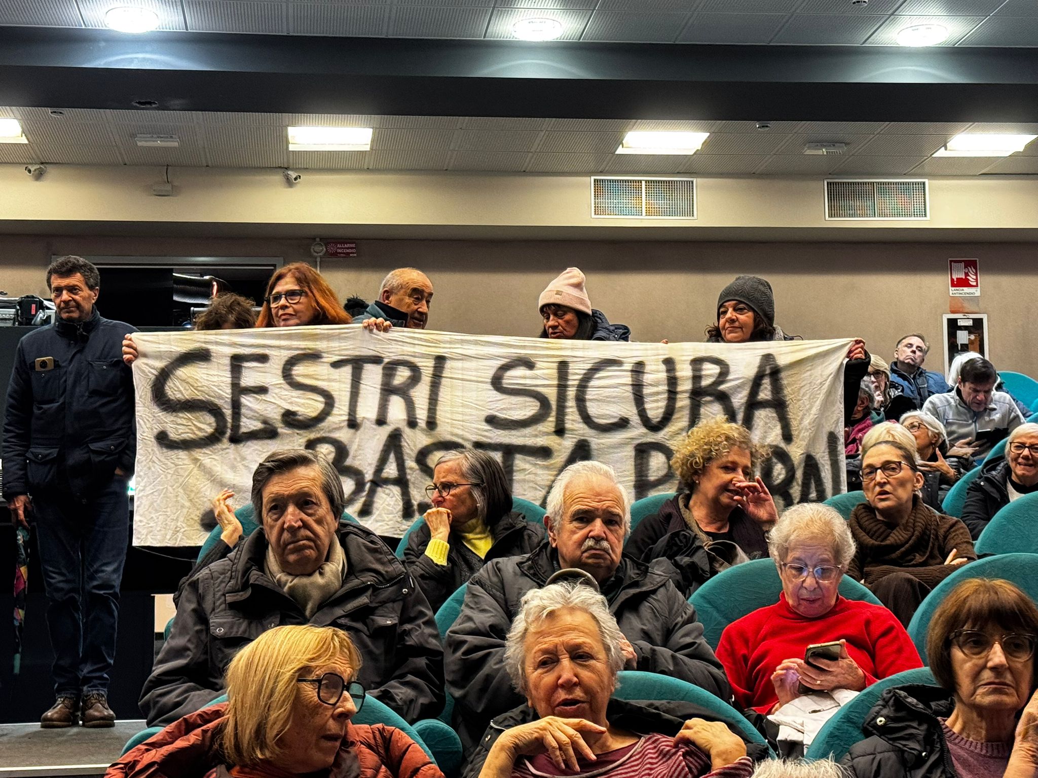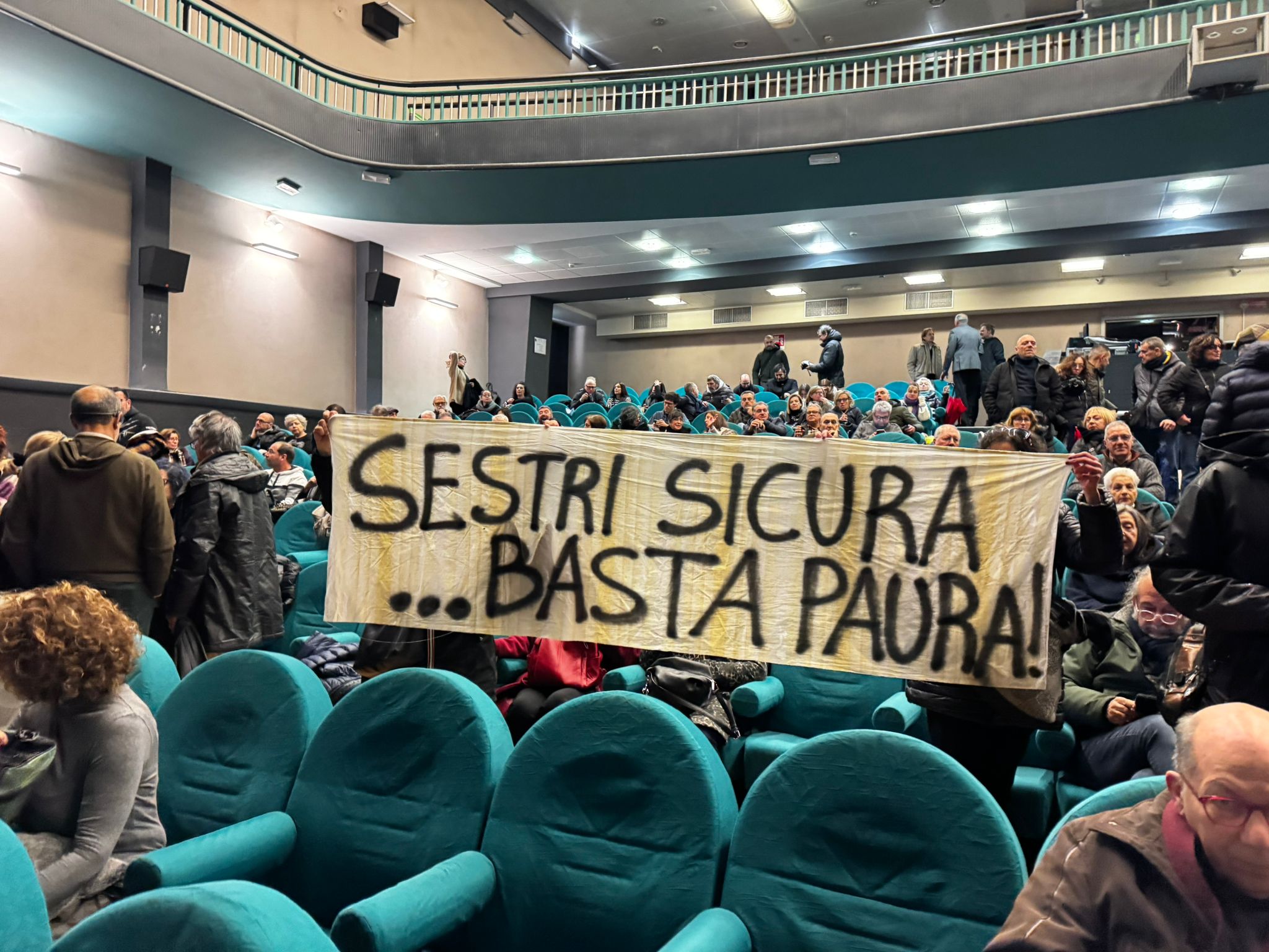 La protesta a Sestri PonenteÈ iniziata con urla e fischi l’assemblea pubblica al teatro Verdi di Sestri Ponente dove i cittadini si sono confrontati per la seconda volta con Autorità Portuale, il committente dei lavori del Ribaltamento a mare di Fincantieri, causa delle vibrazioni che da mesi rendono la vita impossibile ai cittadini sestresi.
