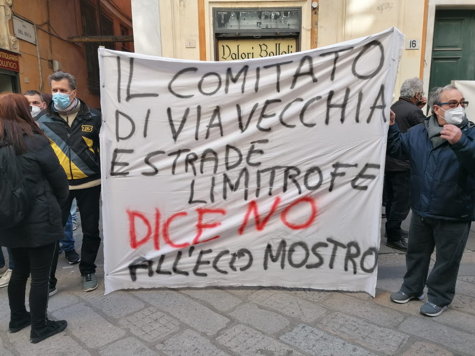 GENOVA - Dai miasmi delle Volpara alle limitazioni per la peste suina, dal caso degli abitanti di via Vecchia al progetto Skytram o del nuovo forno crematorio, i comitati della Val Bisagno, con l'adesione di diversi partiti dell'opposizione, si sono dati appuntamento davanti al Comune di Genova, in via Garibaldi prima dell’avvio del consiglio comunale, in segno di protesta contro le decisioni dell’attuale sindaco Marco Bucci.