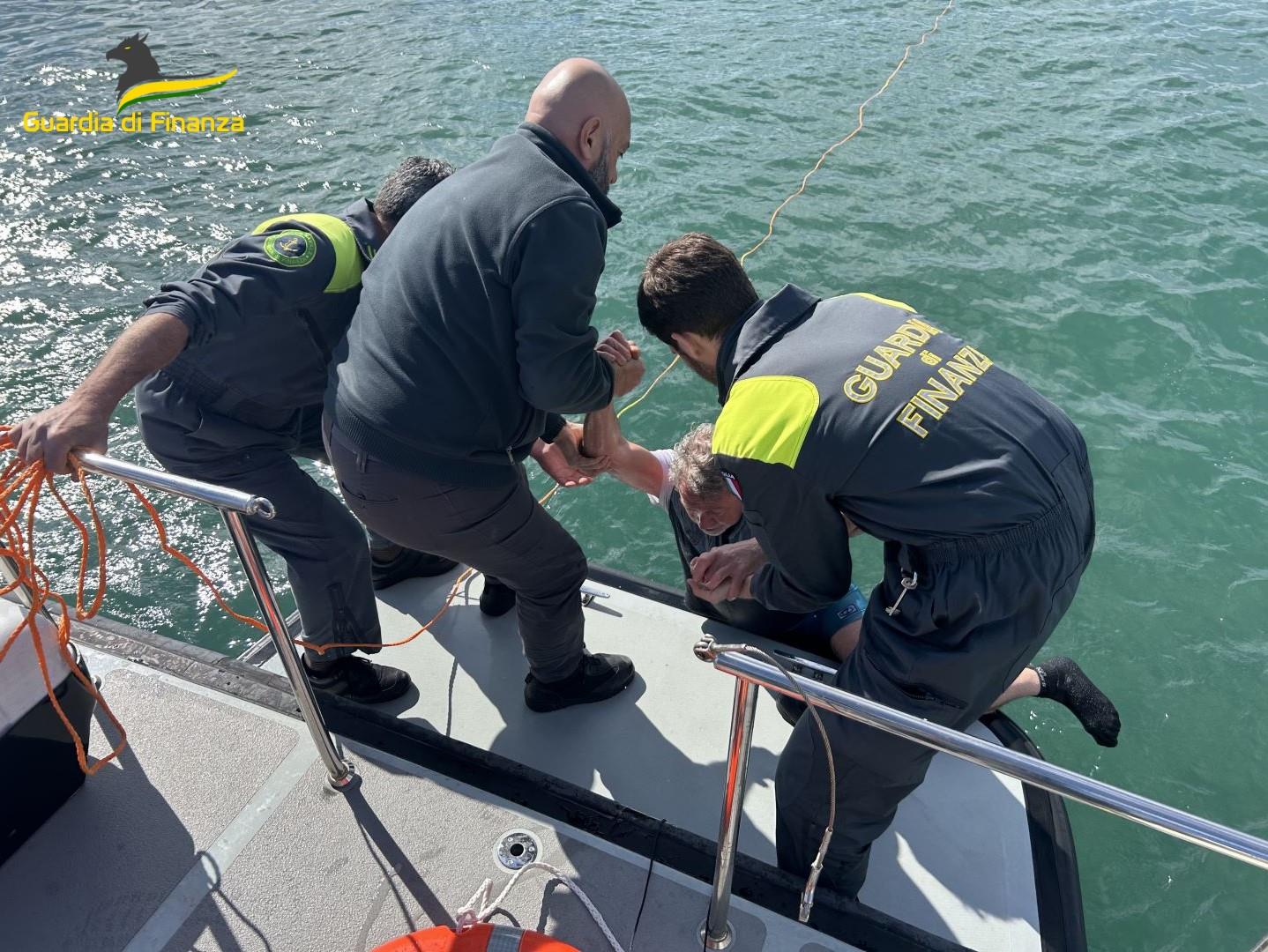 Il primo a essere tratto in salvo è stato un uomo di 67 anni finito in acqua dopo essersi ribaltato nella canoa monoposto che stava usando. L'uomo è finito alla deriva e per lui è stato impossibile risalire a bordo visto che la canoa era ormai parzialmente affondata. Il 67enne si trovava in stato di shock e aveva già un principio di ipotermia causata dalla lunga permanenza in acqua. La temperatura dell'acqua era infatti di circa 12 gradi. Operazioni rese difficoltose anche dal mare agitato.